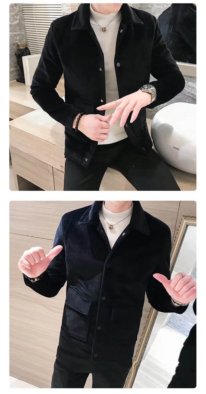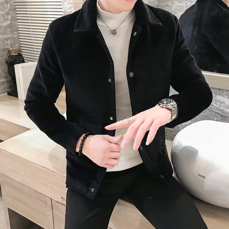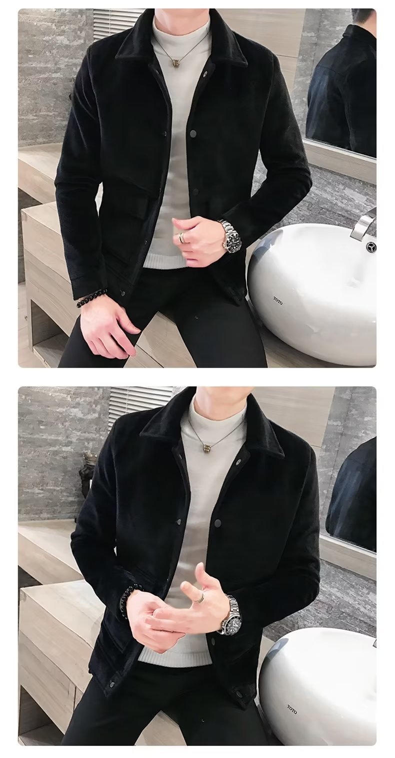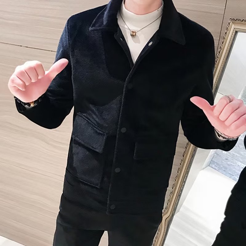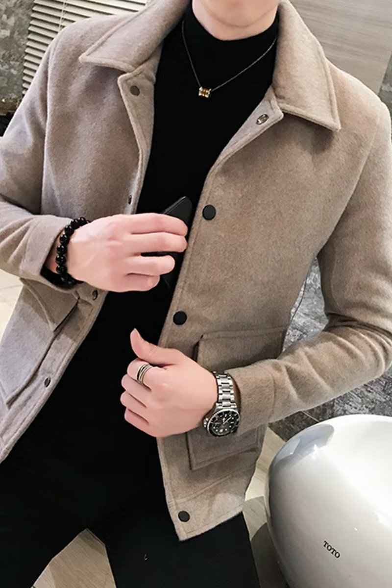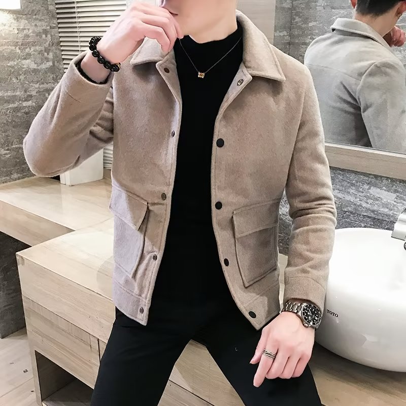 모직 재킷 남성 가을과 겨울 영국식 두꺼운 옷깃 유행 모든 경기 한국식 모직 재킷 짧은 정신