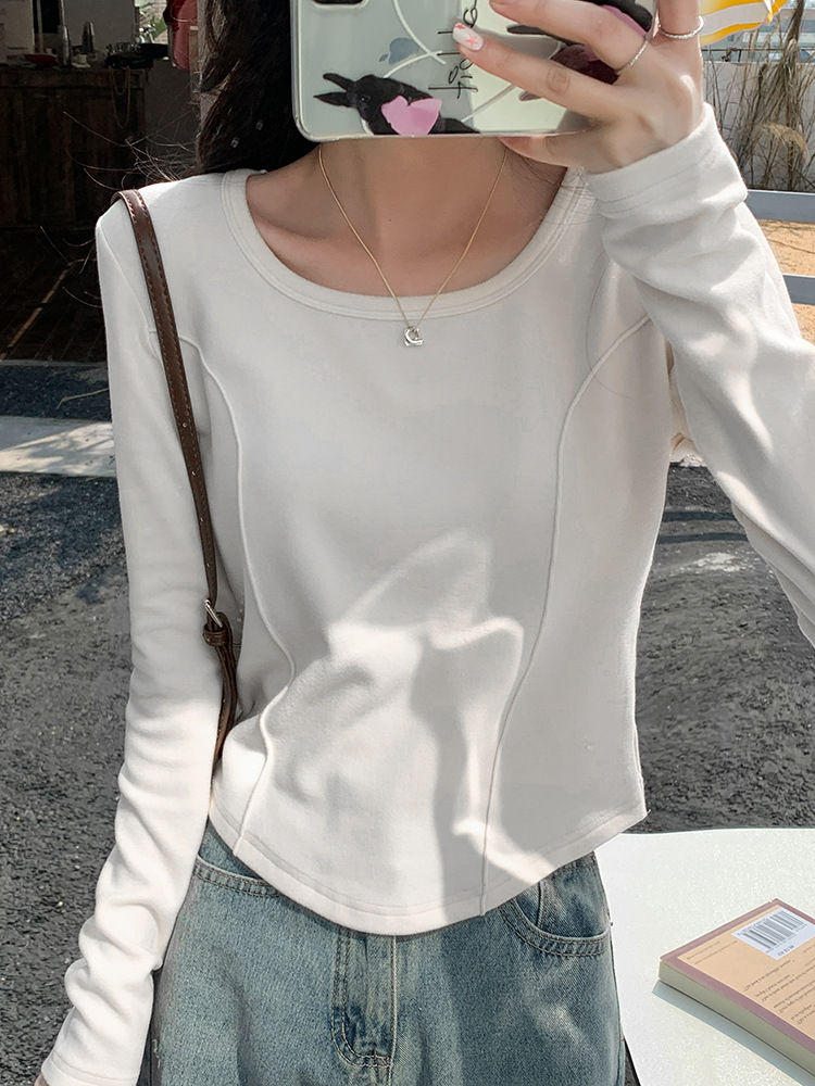 2024년 가을 겨울 여성을 위한 DeRong 베이스 레이어 셔츠 새로운 핫걸 긴팔 티셔츠 스퀘어 넥 오른쪽 어깨 타이트 피시본 탑스토어 가기