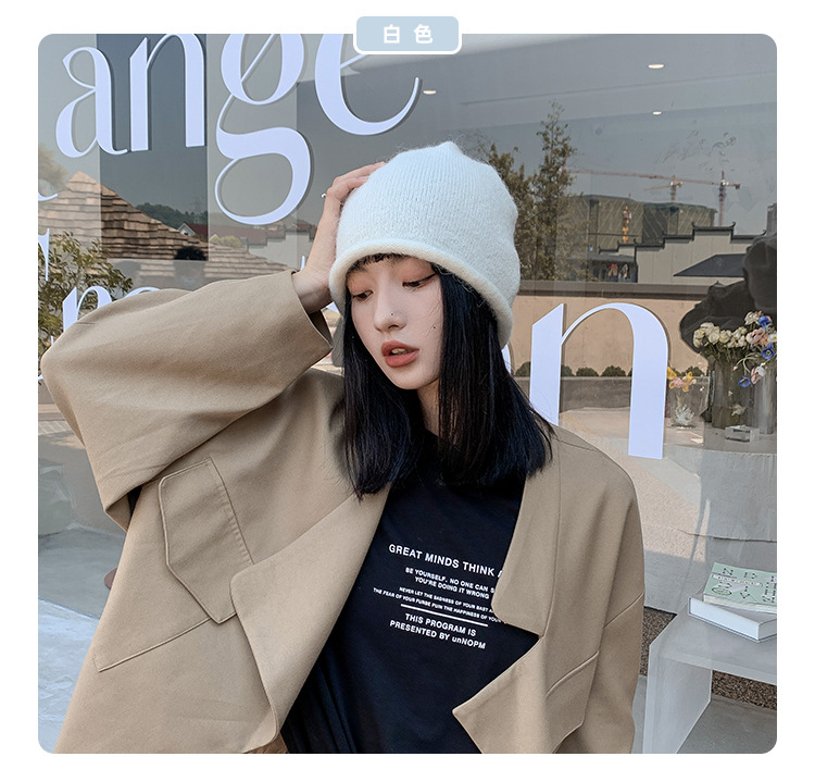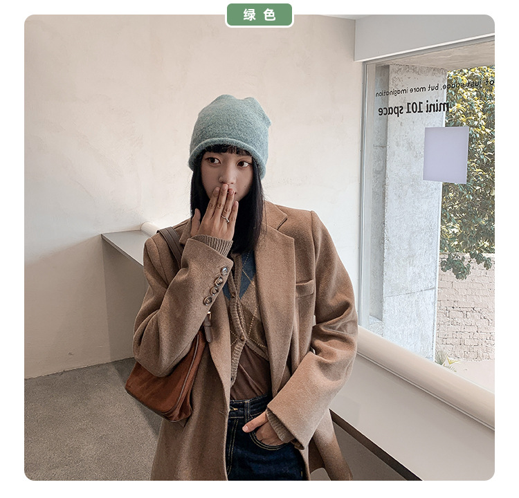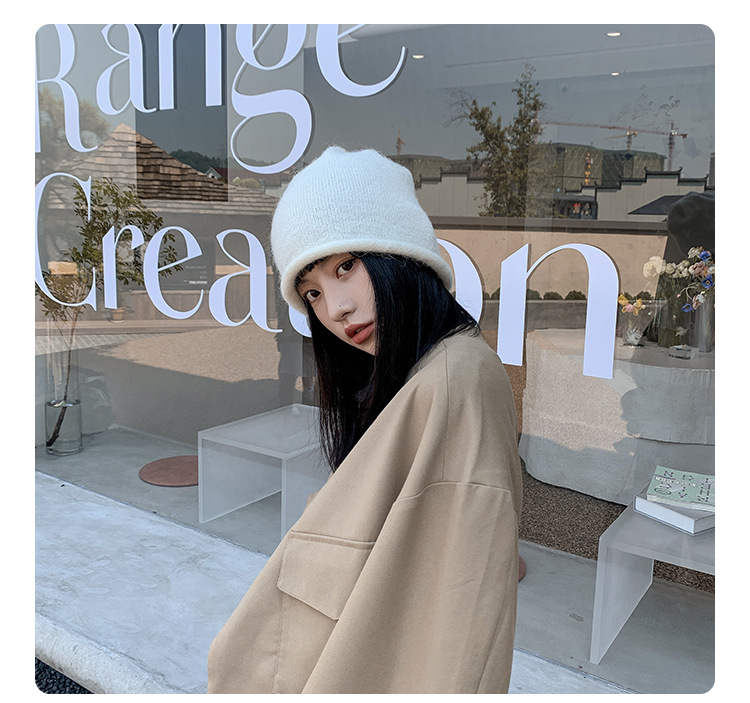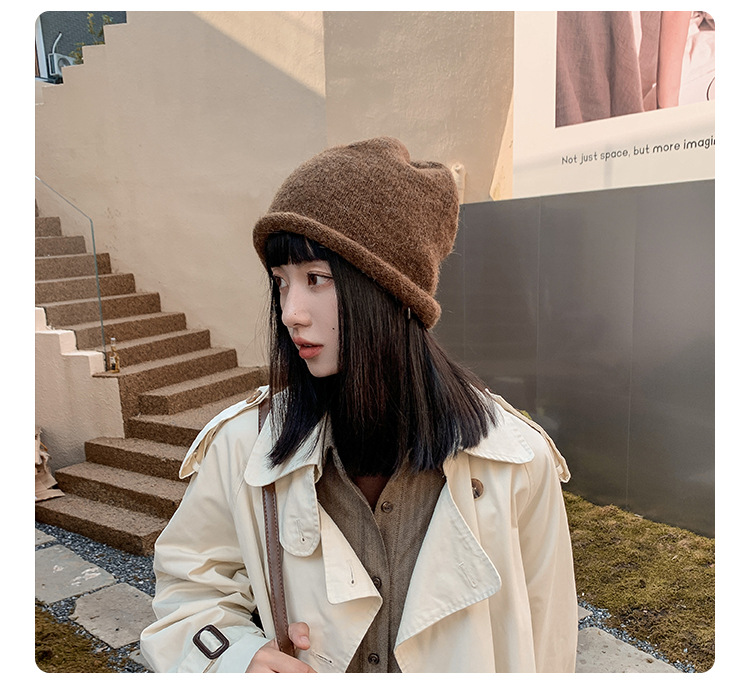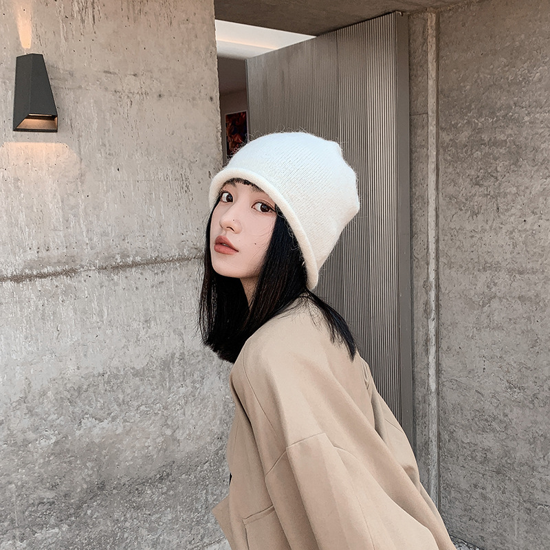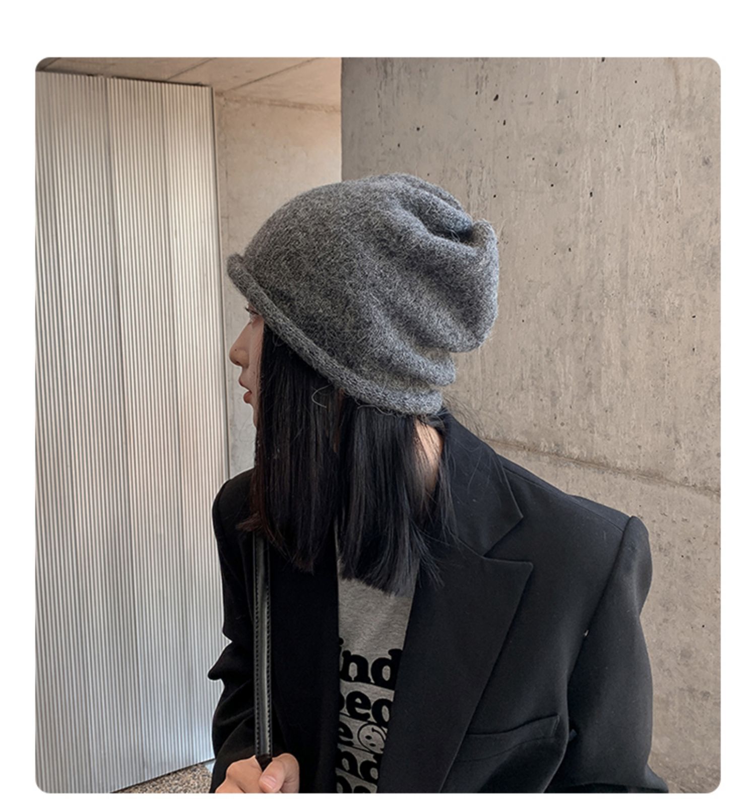 알파카 울 그레이 울 모자 여성 가을과 겨울 올매치 블랙 니트 모자 in 조수 더미 모자 큰 머리 둘레 차가운 모자스토어 가기