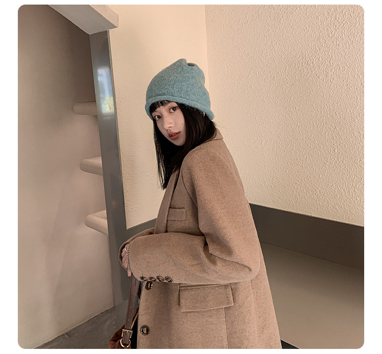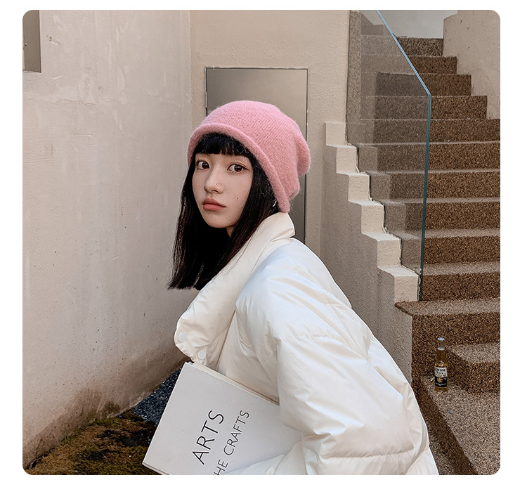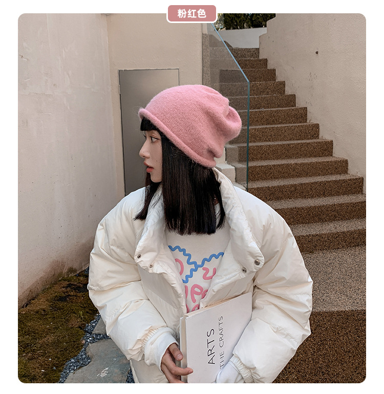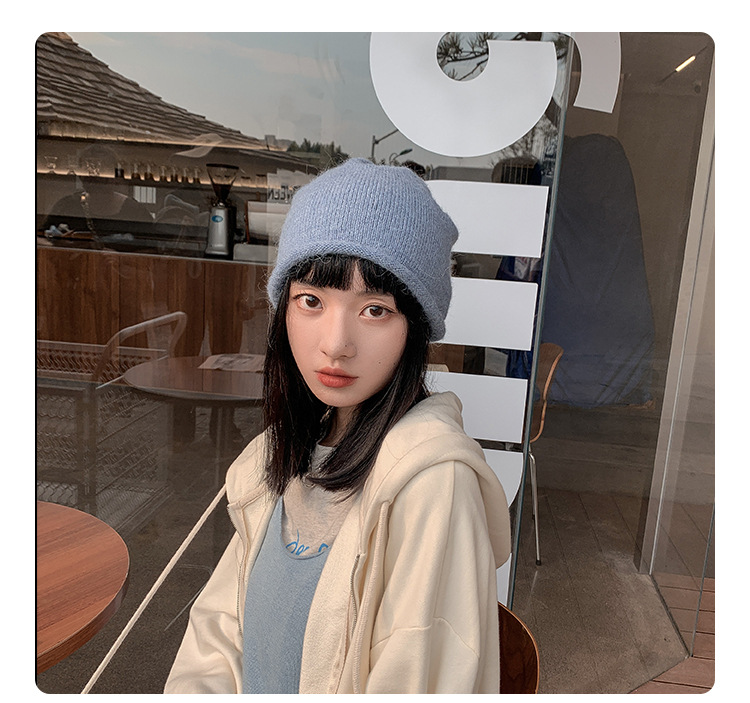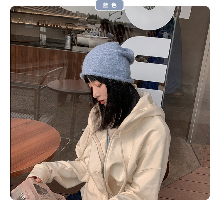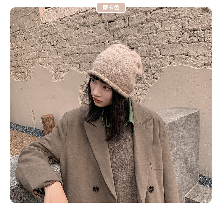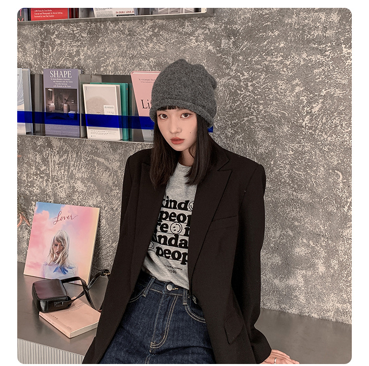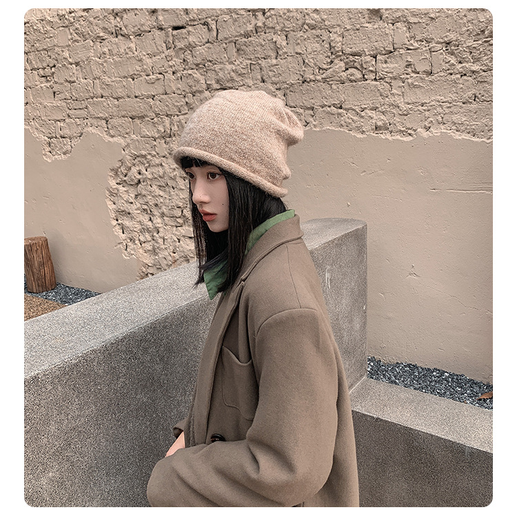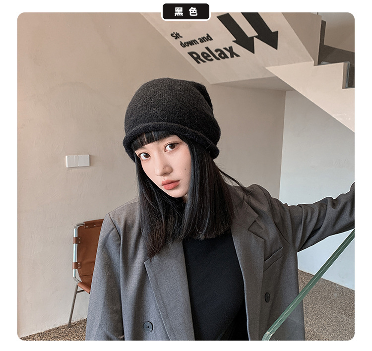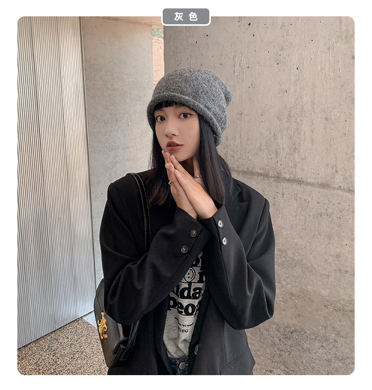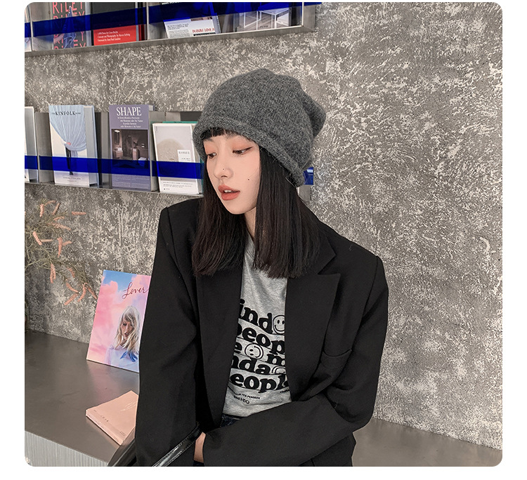 알파카 울 그레이 울 모자 여성 가을과 겨울 올매치 블랙 니트 모자 in 조수 더미 모자 큰 머리 둘레 차가운 모자