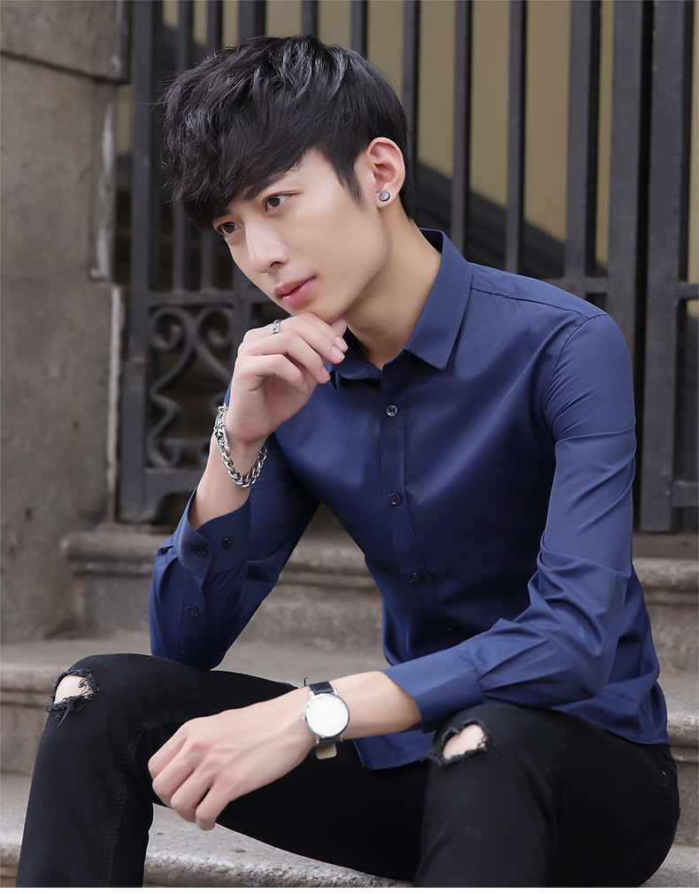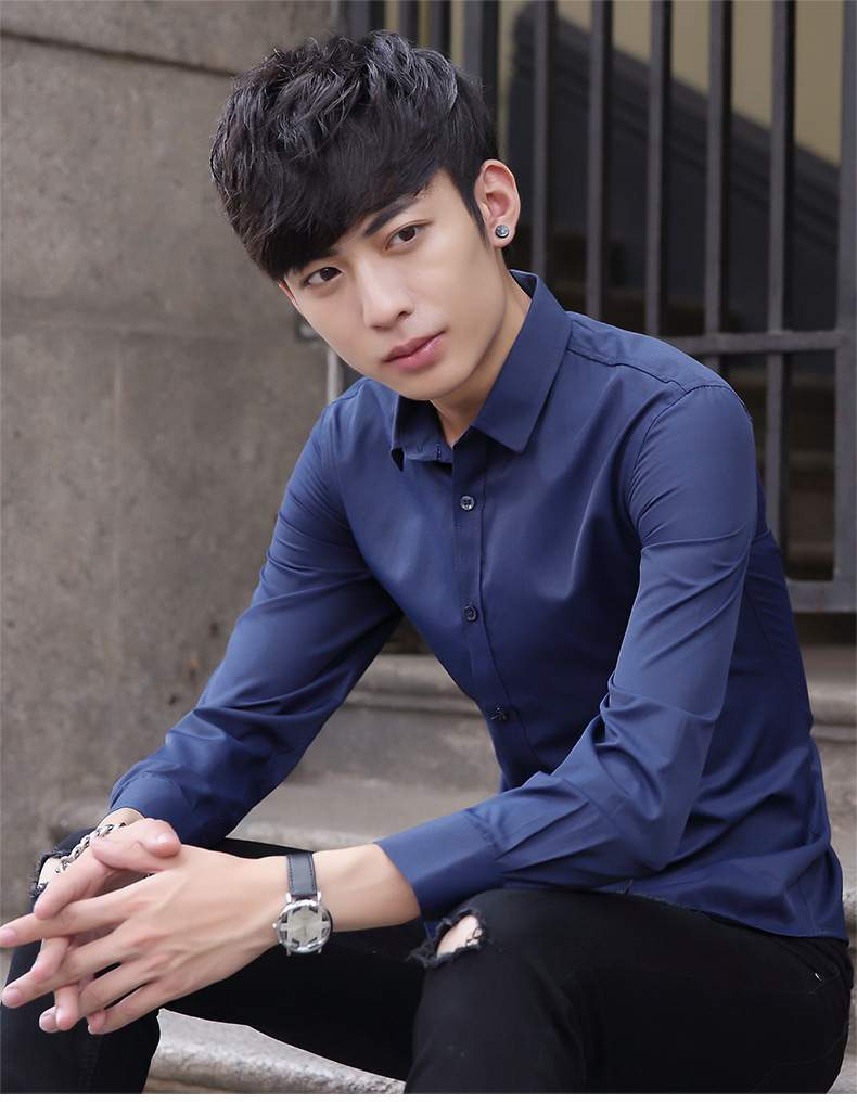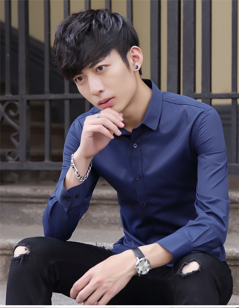 2023 홍콩 스타일 셔츠 남성용 긴팔 슬림핏 비 다림질 비즈니스 패션 브랜드 청소년 패션 전문 작업 탑 셔츠스토어 가기