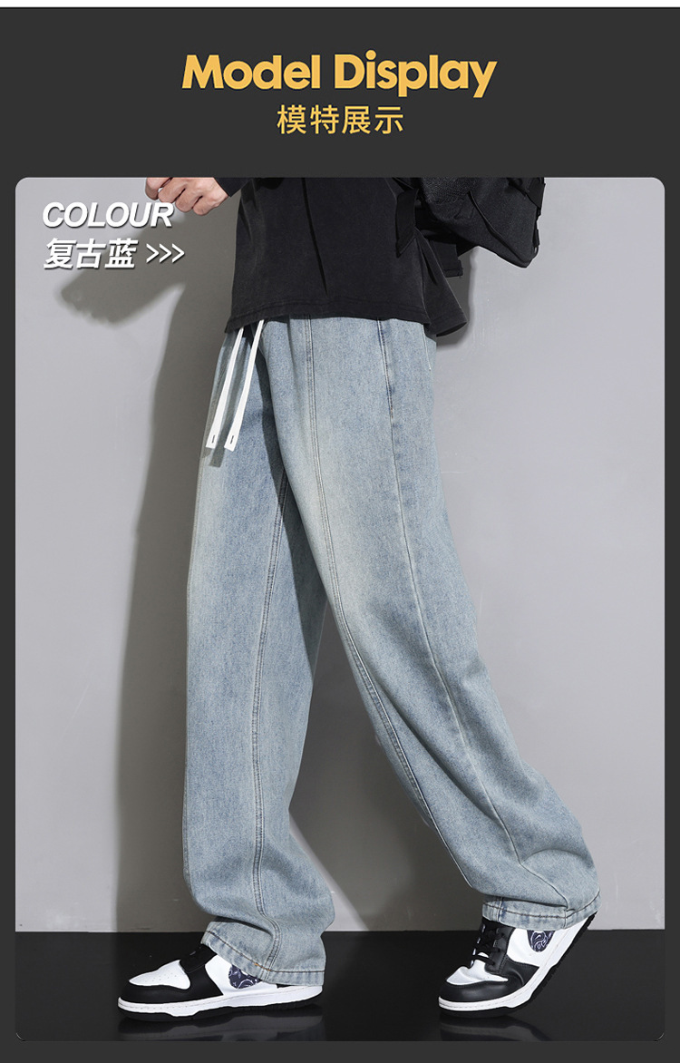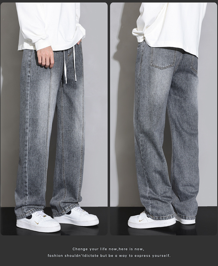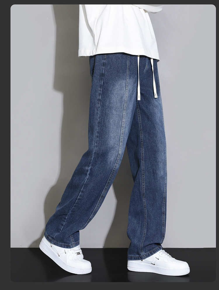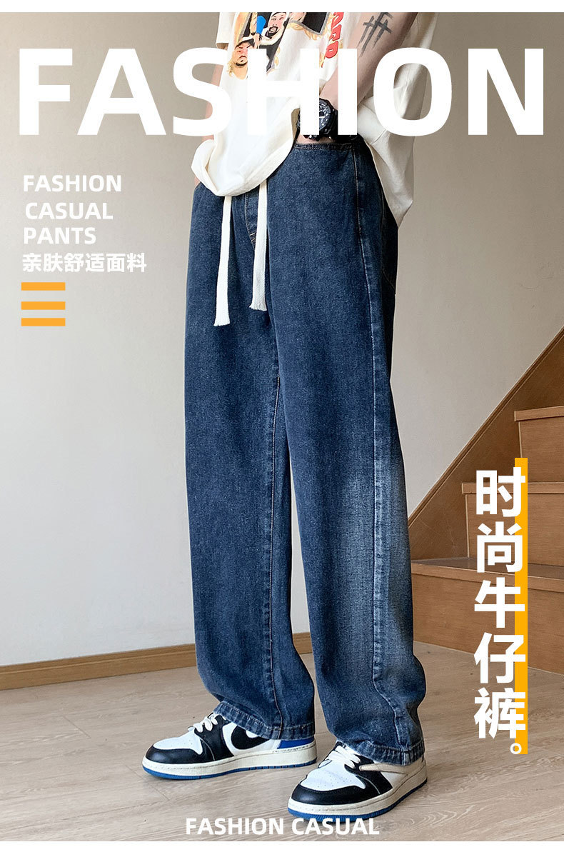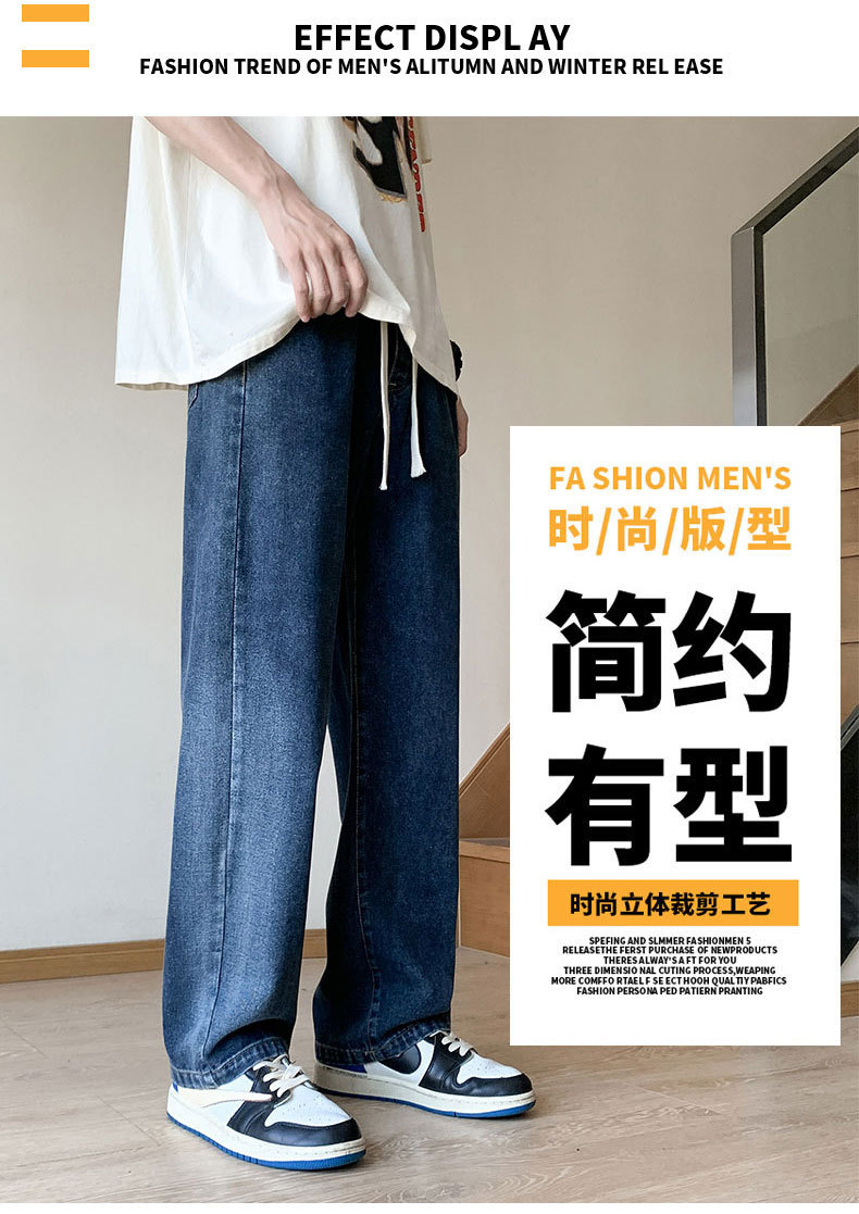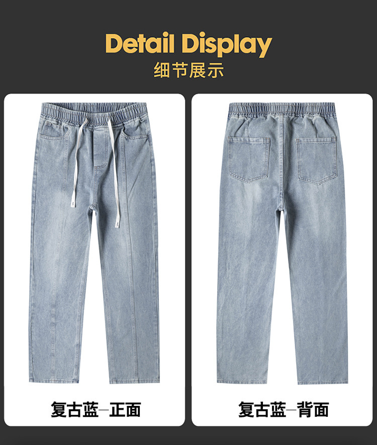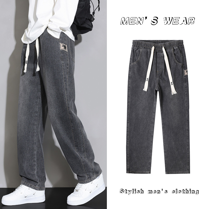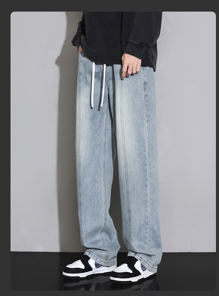 워싱 데님 팬츠 남성용 2025 봄 가을 루즈핏 탄력 허리밴드 아메리칸 하이스트리트 스트레이트 와이드 팬츠 캐주얼 롱 팬츠스토어 가기