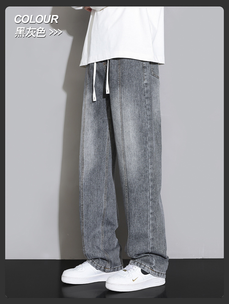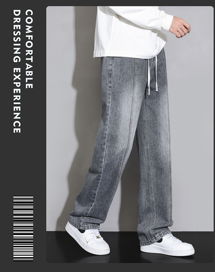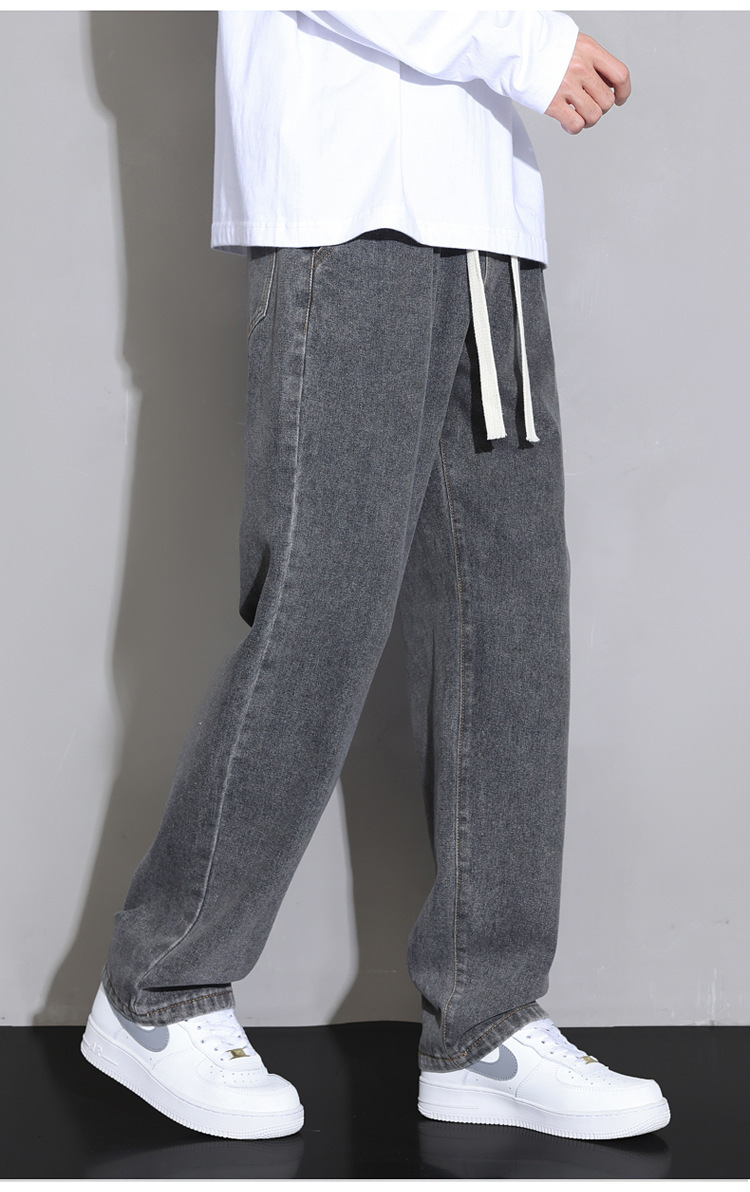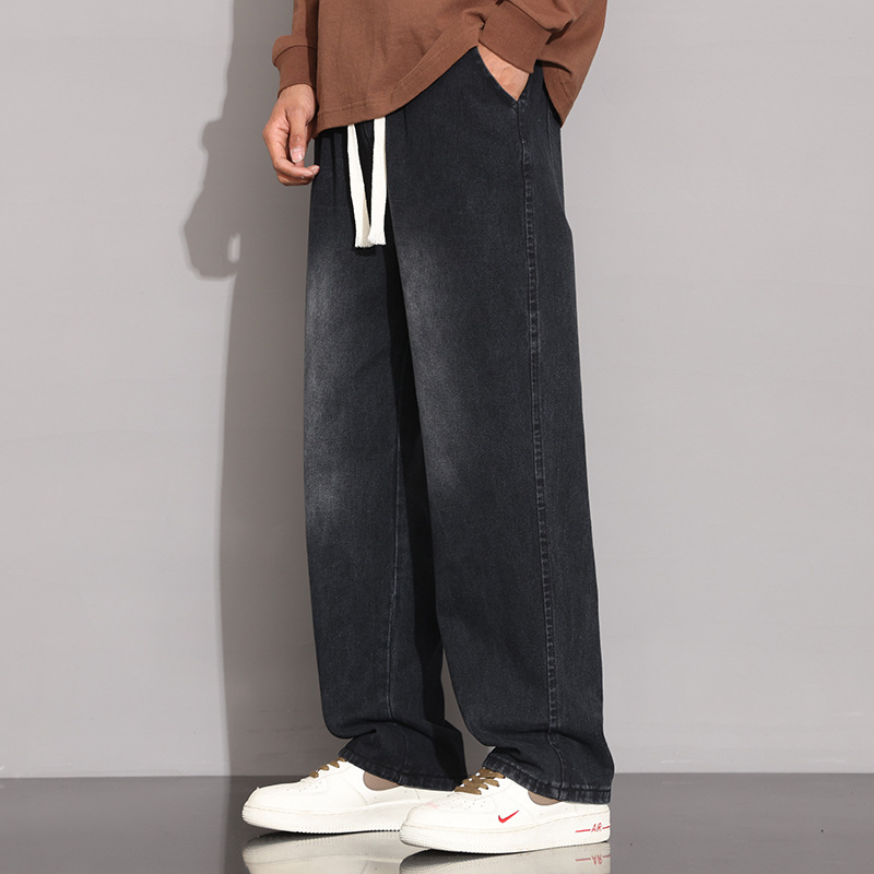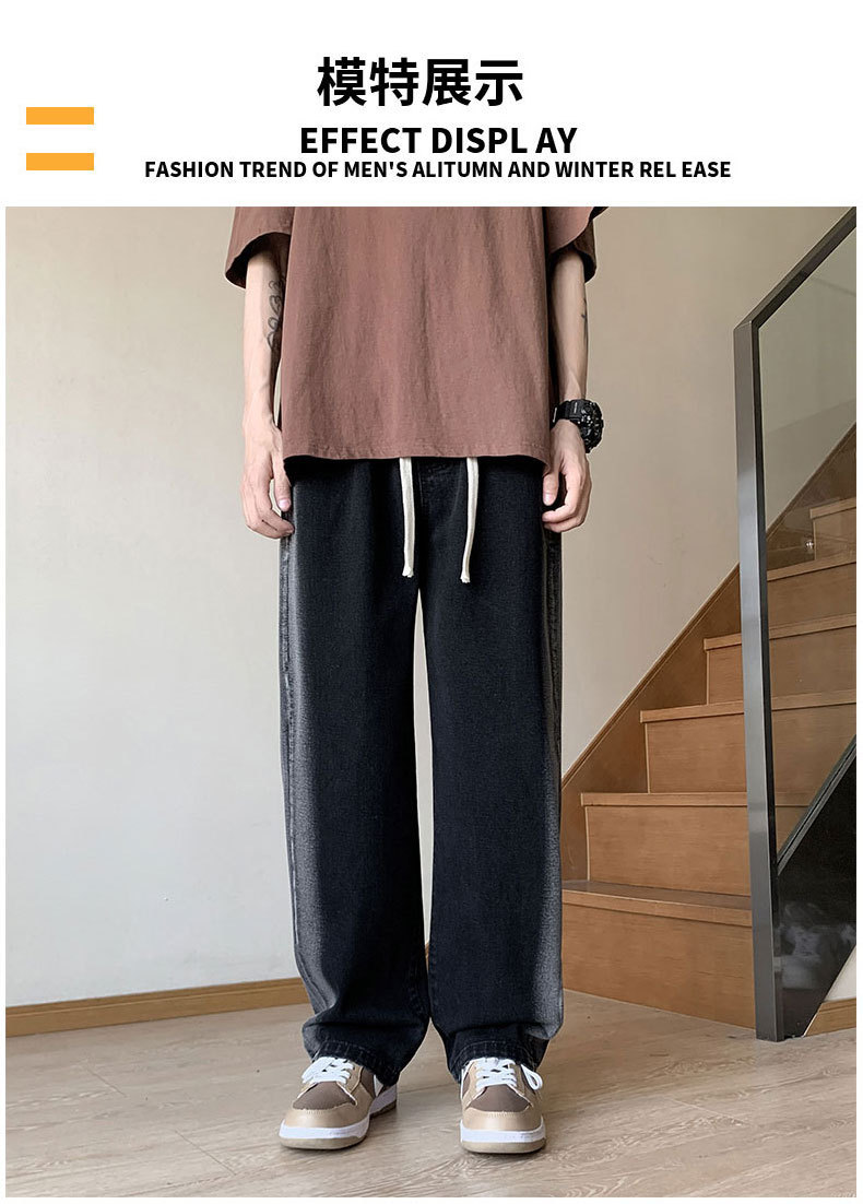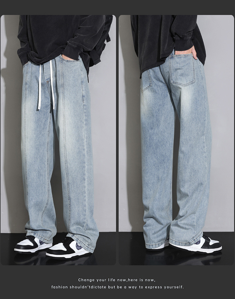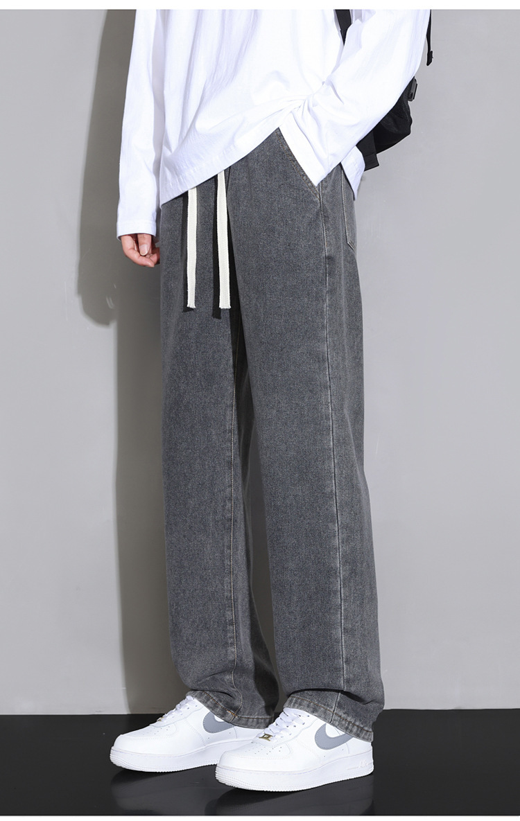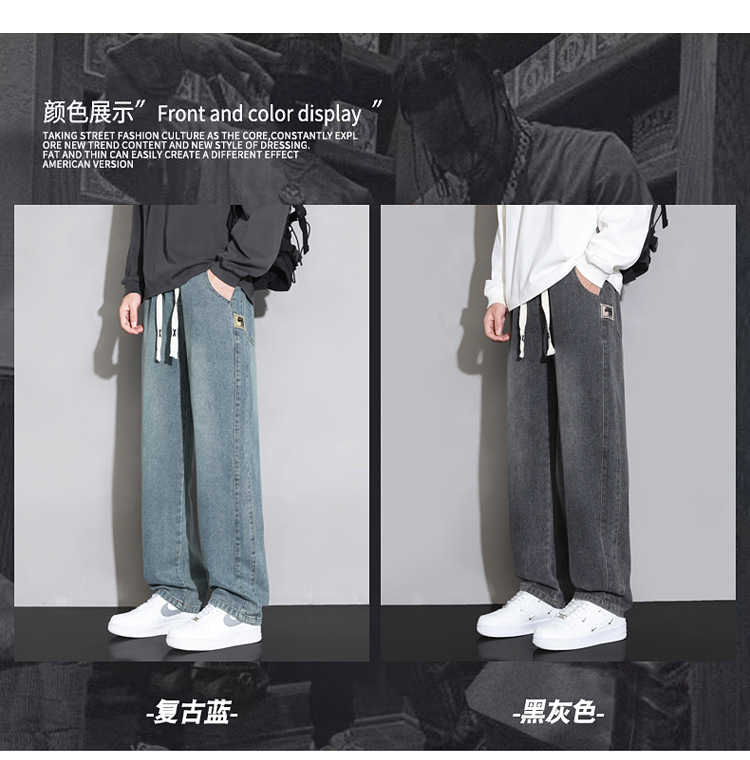 워싱 데님 팬츠 남성용 2025 봄 가을 루즈핏 탄력 허리밴드 아메리칸 하이스트리트 스트레이트 와이드 팬츠 캐주얼 롱 팬츠스토어 가기