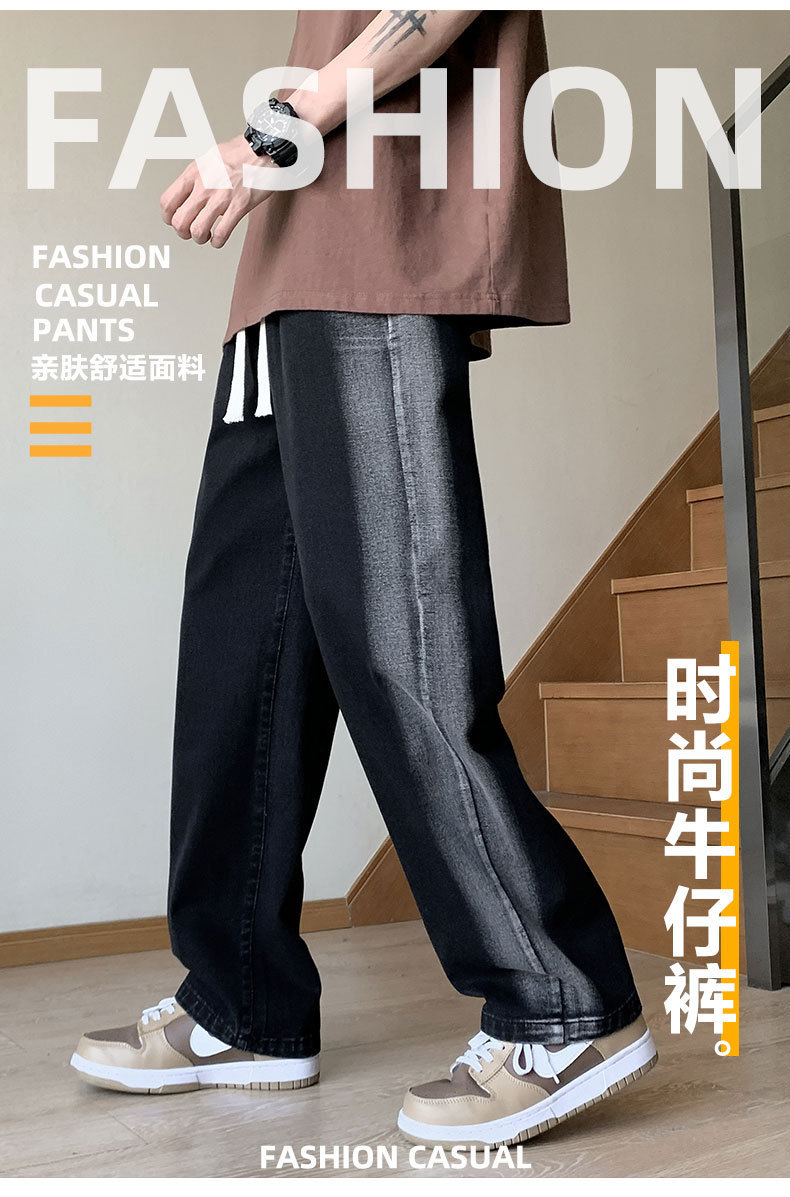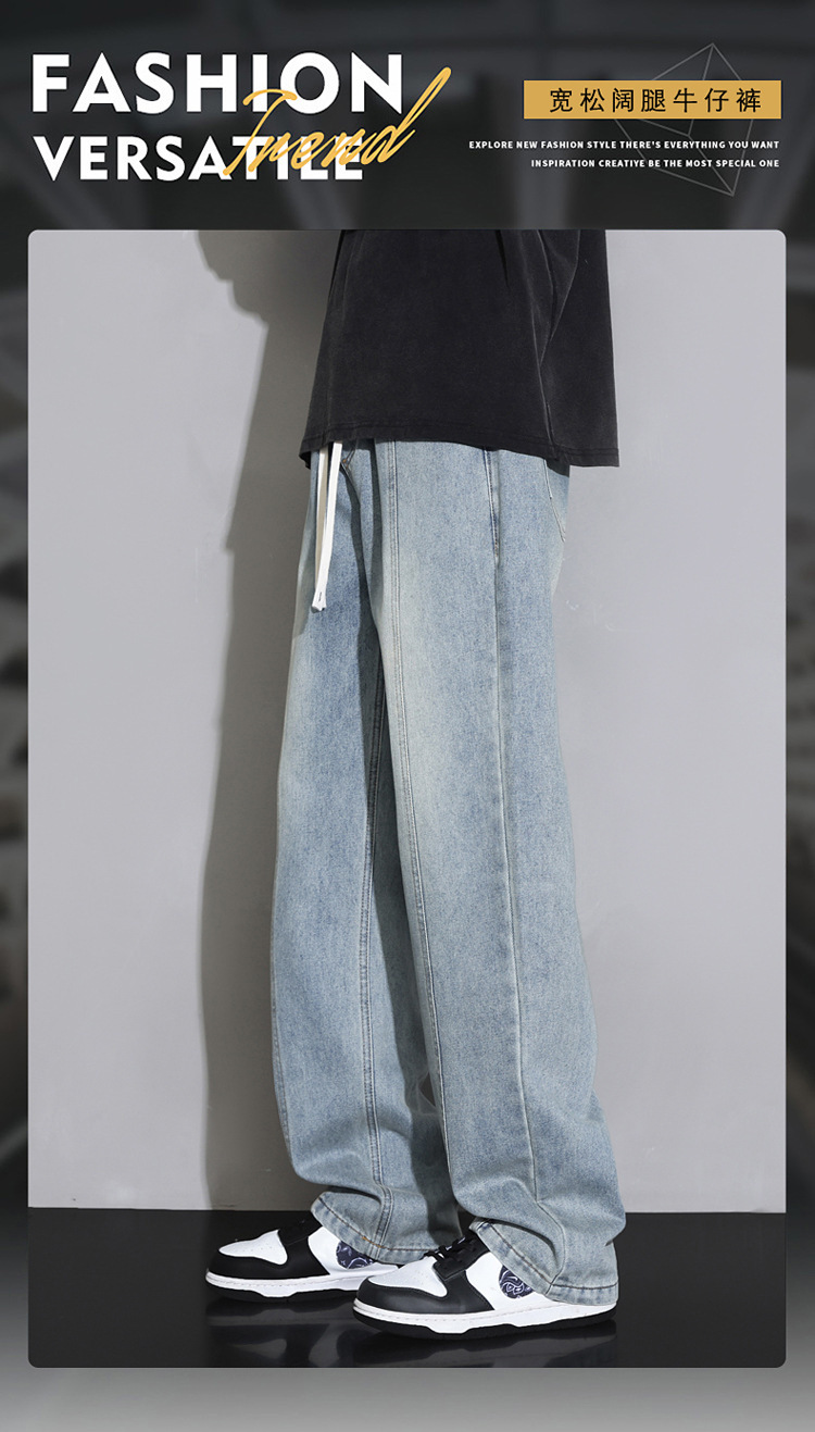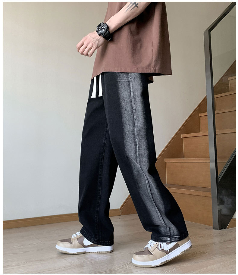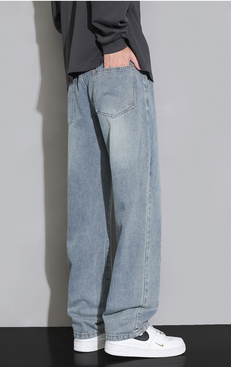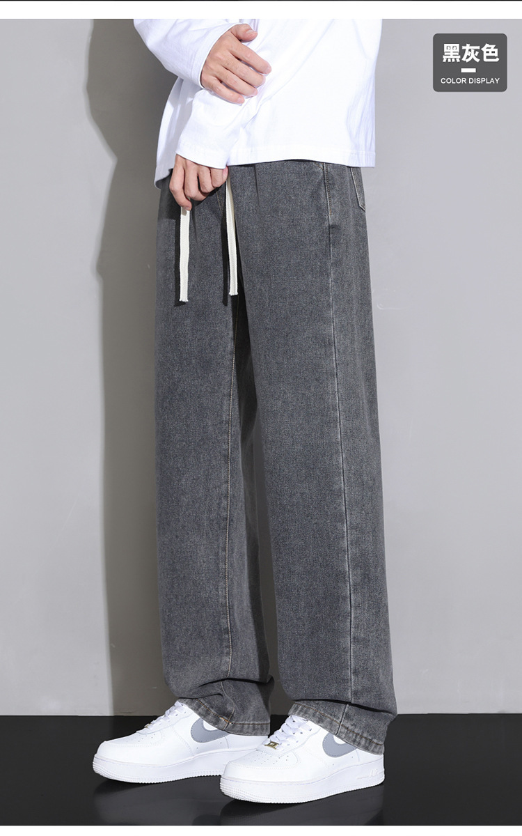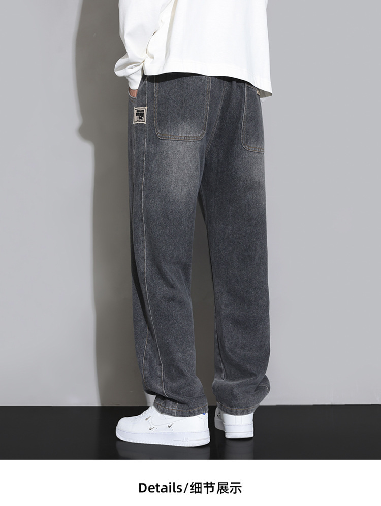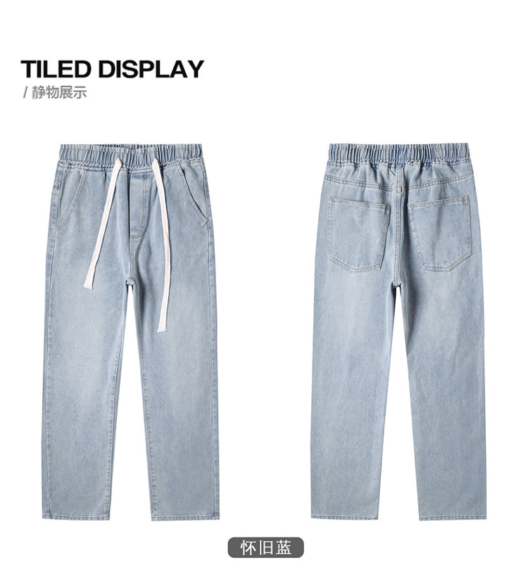 워싱 데님 팬츠 남성용 2025 봄 가을 루즈핏 탄력 허리밴드 아메리칸 하이스트리트 스트레이트 와이드 팬츠 캐주얼 롱 팬츠스토어 가기