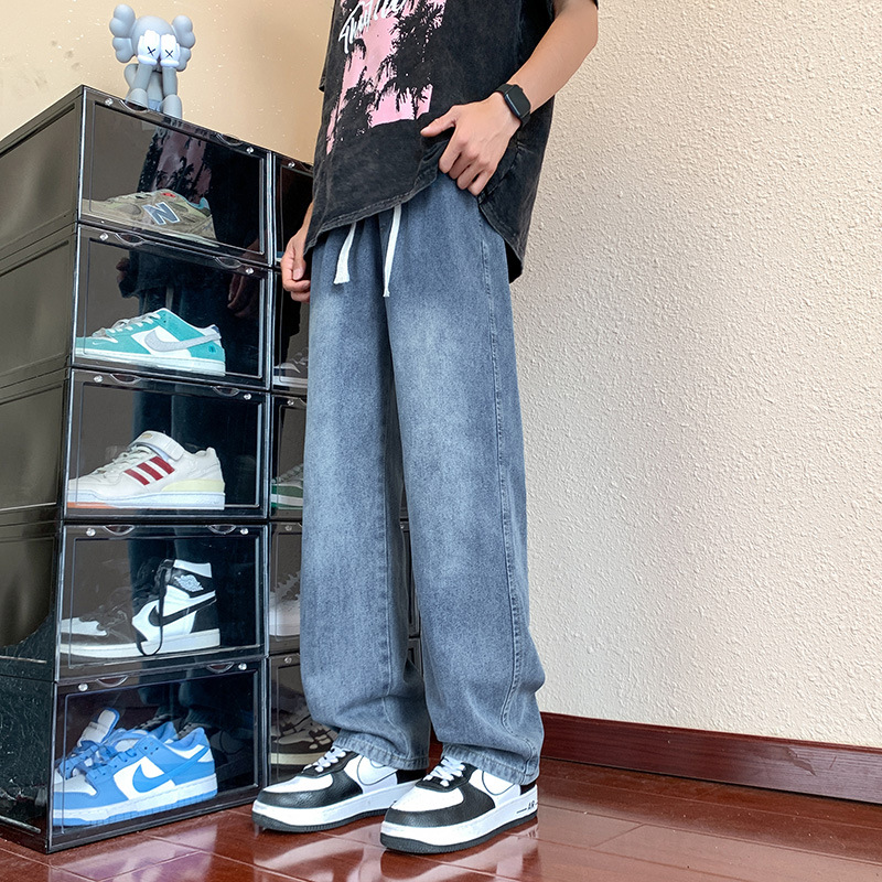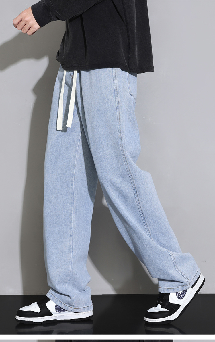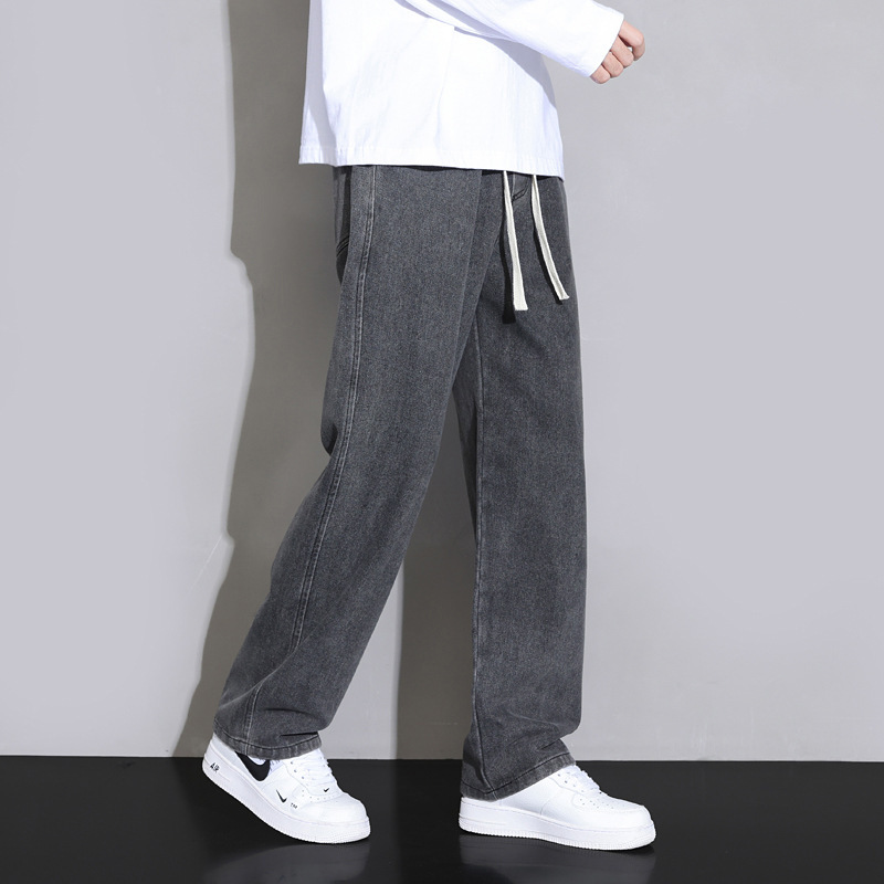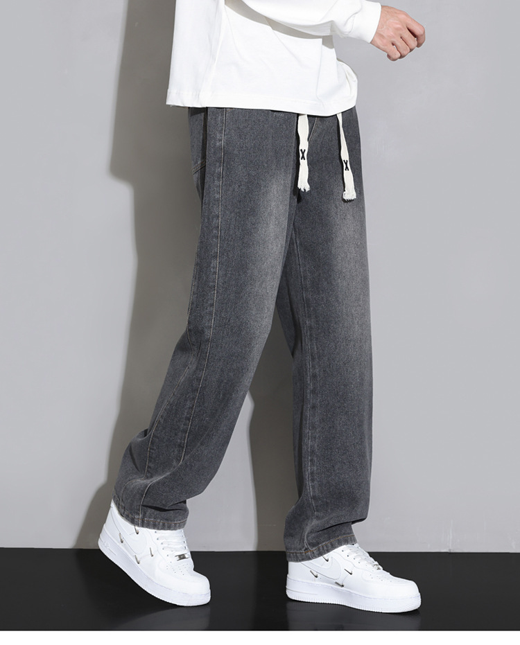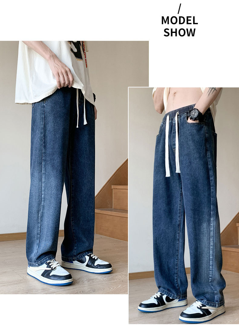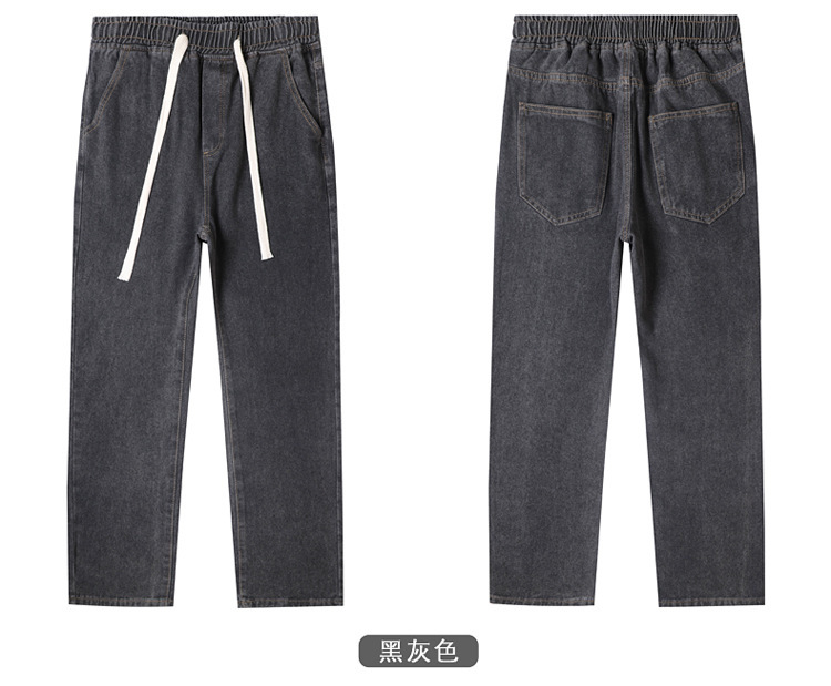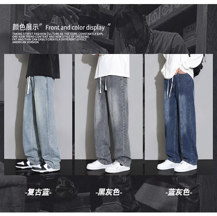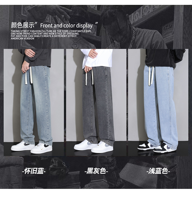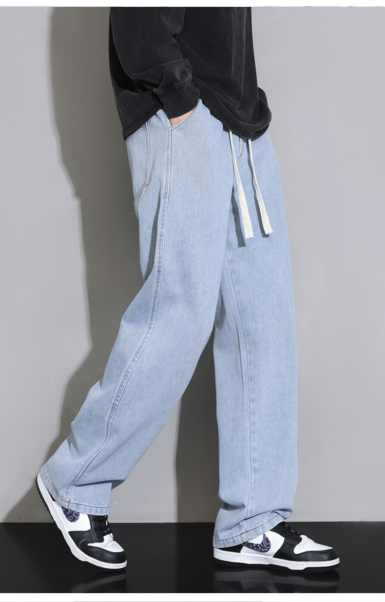 워싱 데님 팬츠 남성용 2025 봄 가을 루즈핏 탄력 허리밴드 아메리칸 하이스트리트 스트레이트 와이드 팬츠 캐주얼 롱 팬츠스토어 가기