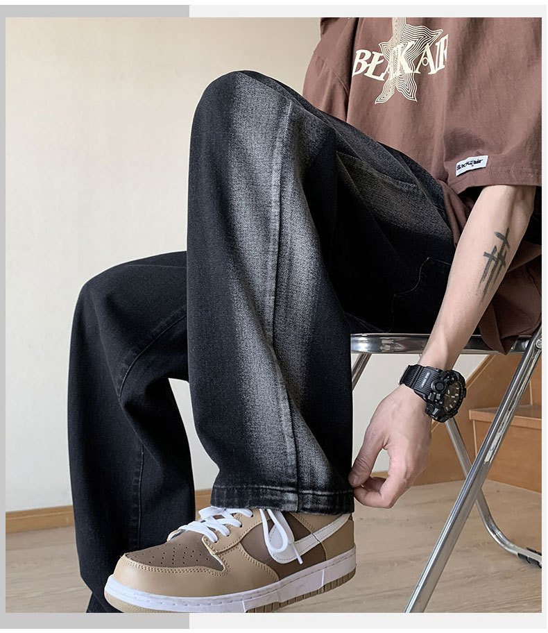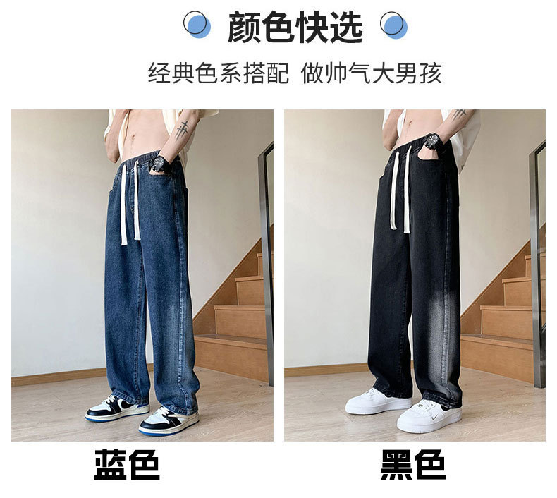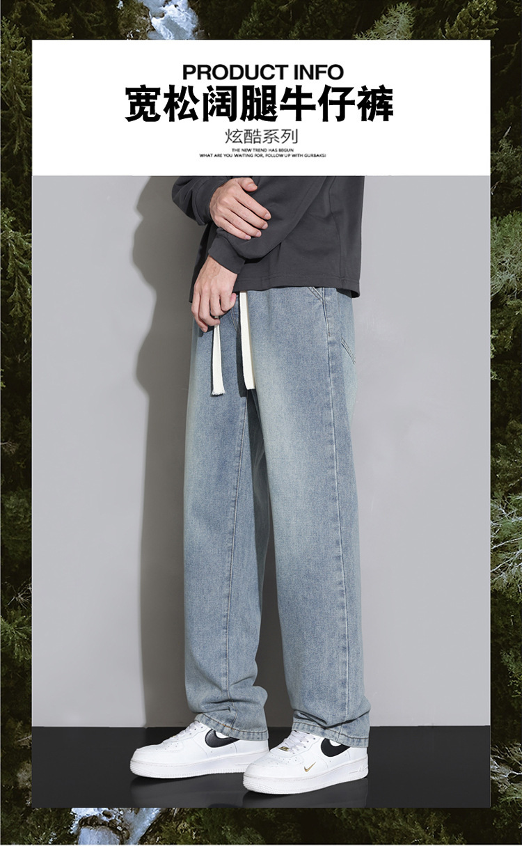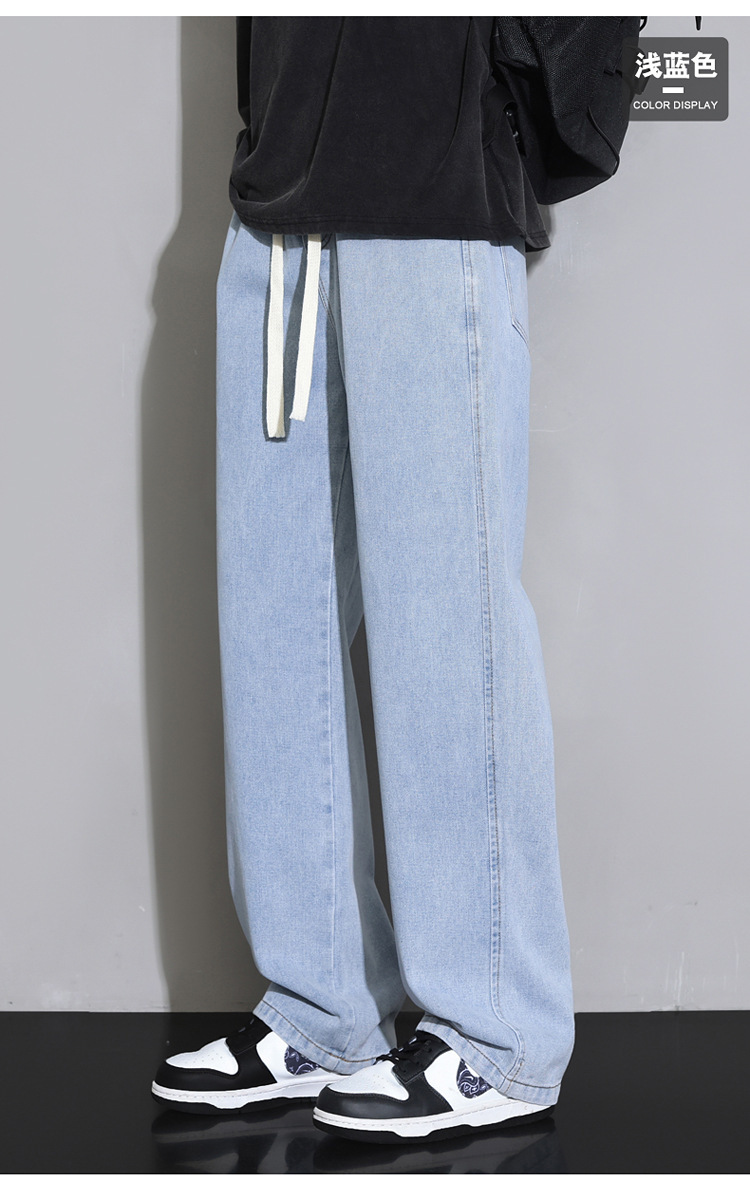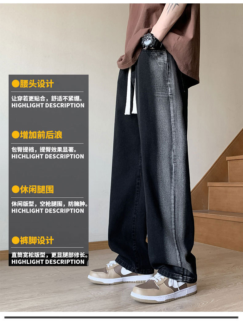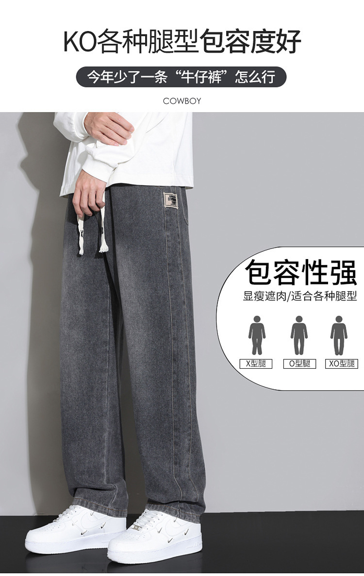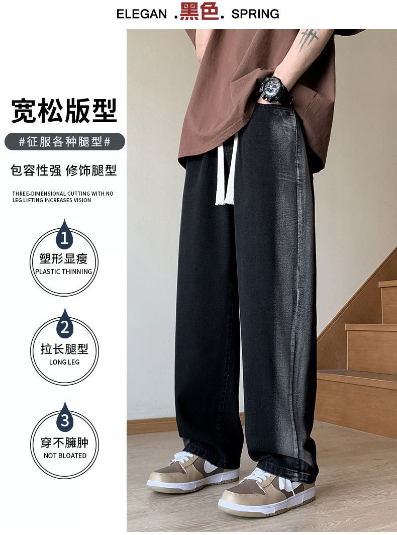워싱 데님 팬츠 남성용 2025 봄 가을 루즈핏 탄력 허리밴드 아메리칸 하이스트리트 스트레이트 와이드 팬츠 캐주얼 롱 팬츠스토어 가기