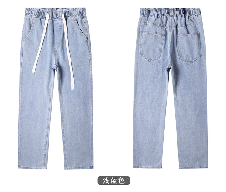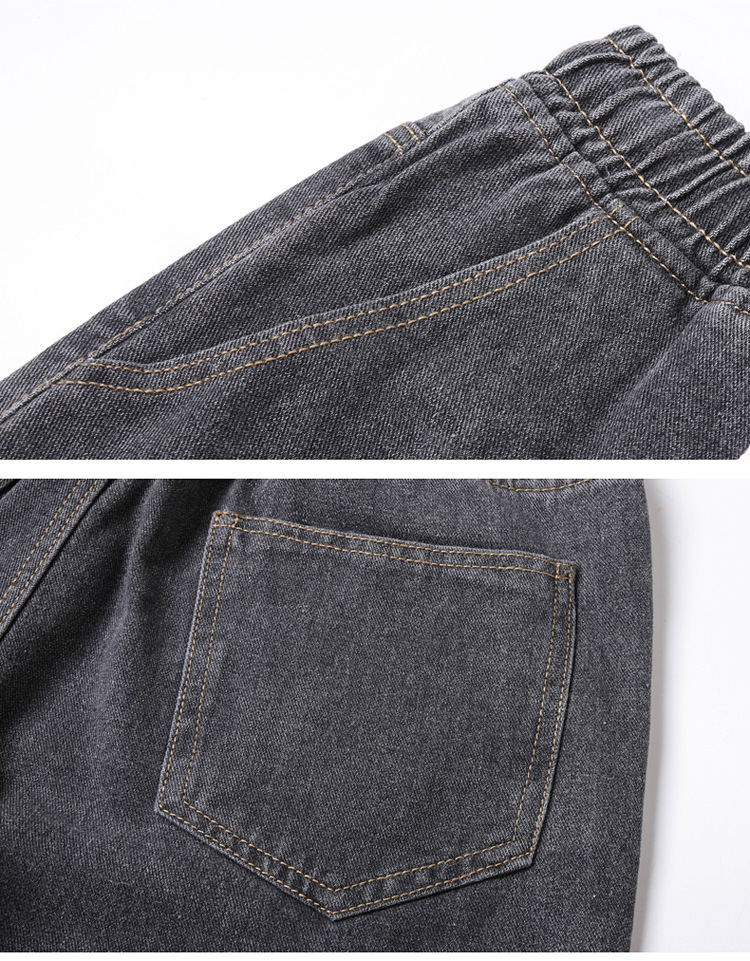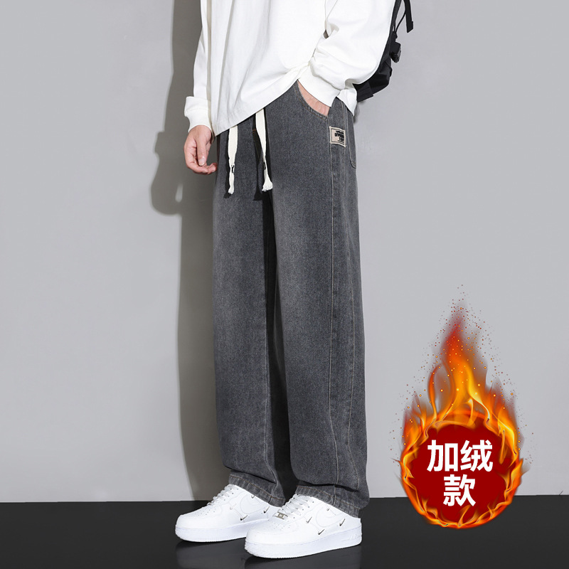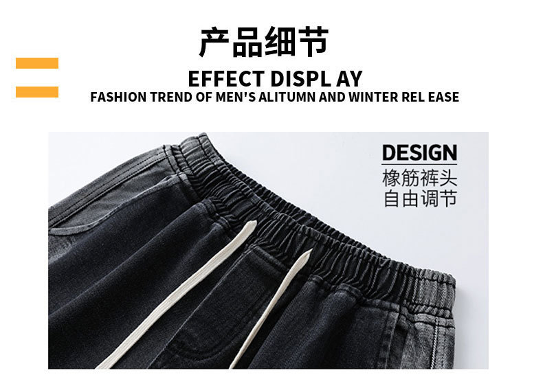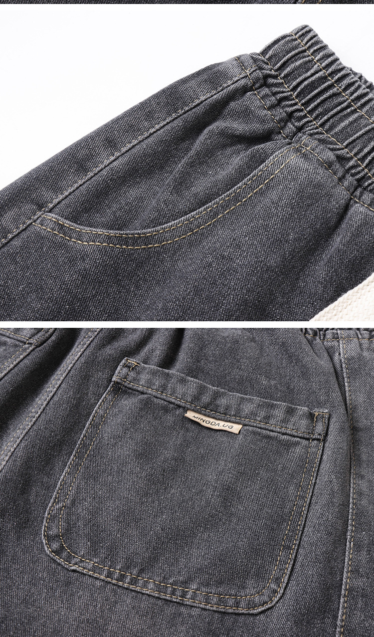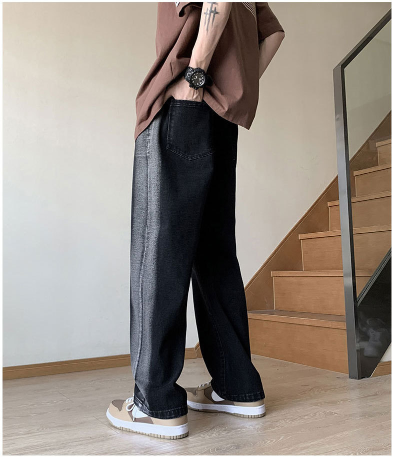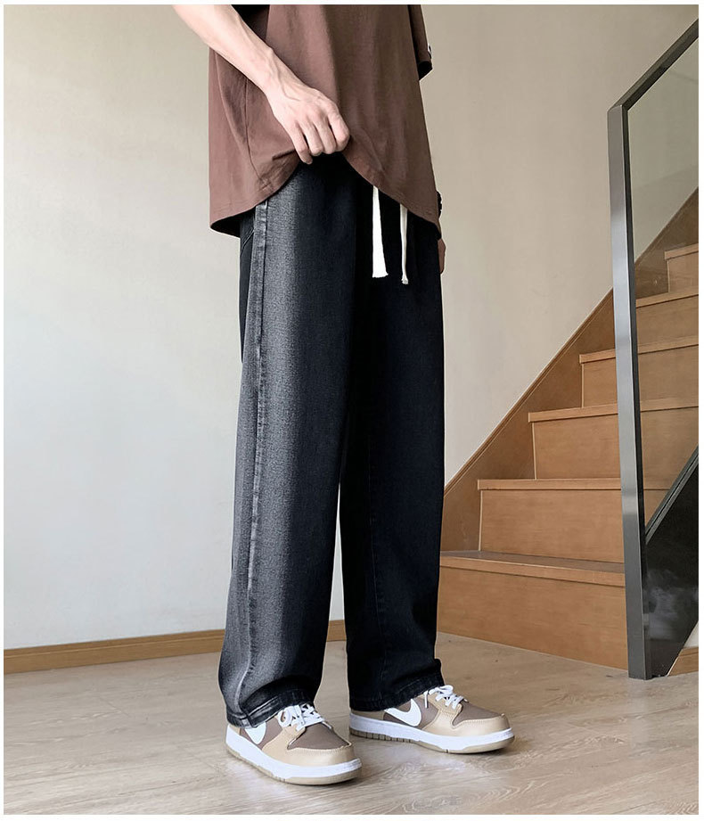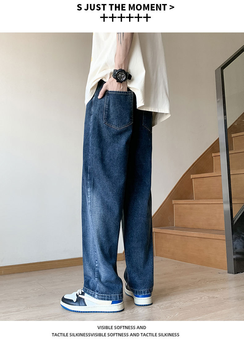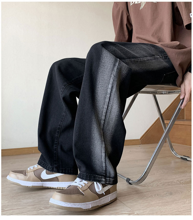 워싱 데님 팬츠 남성용 2025 봄 가을 루즈핏 탄력 허리밴드 아메리칸 하이스트리트 스트레이트 와이드 팬츠 캐주얼 롱 팬츠스토어 가기