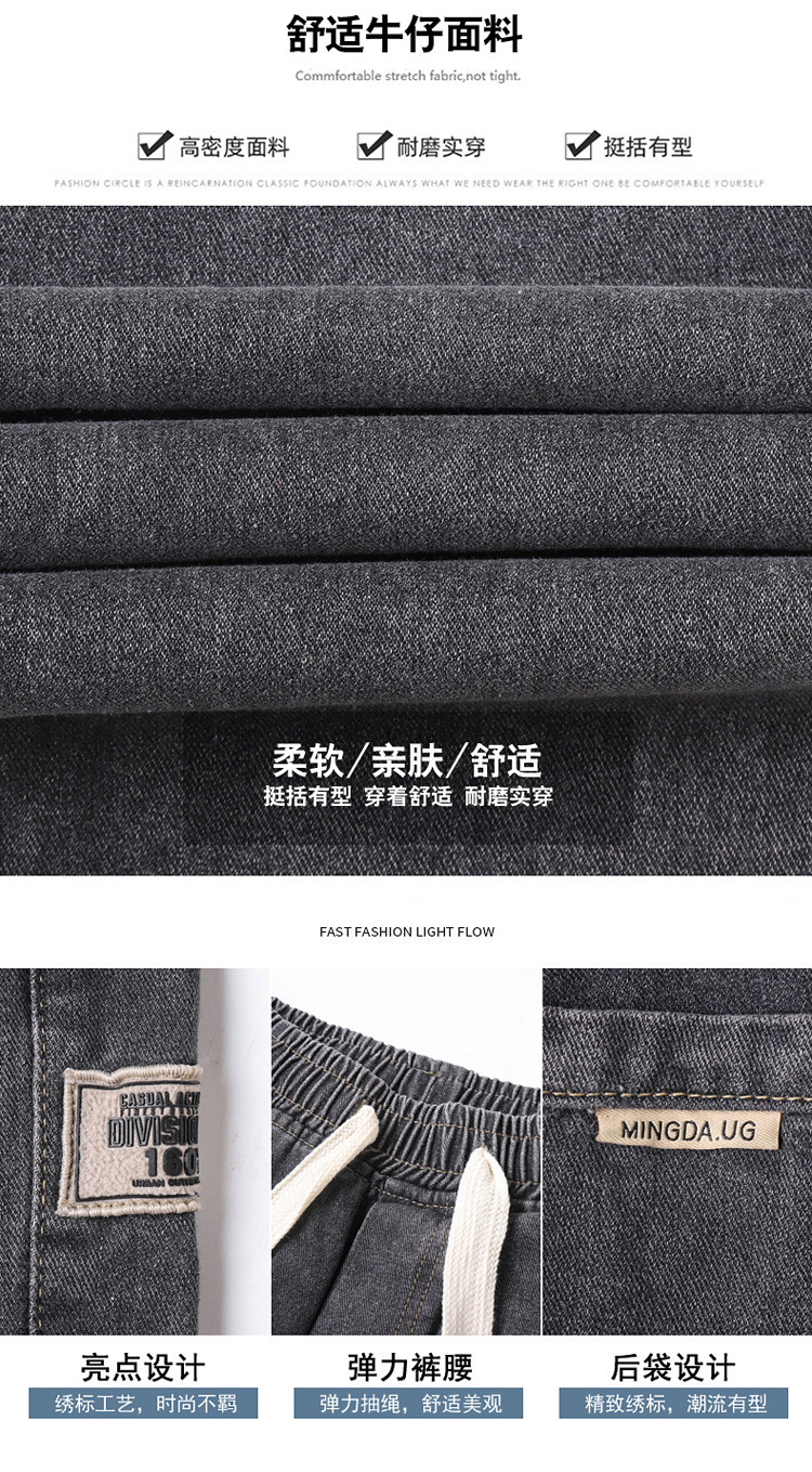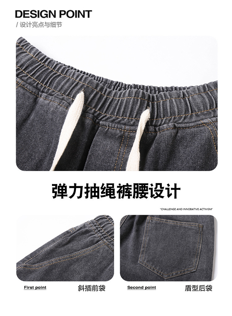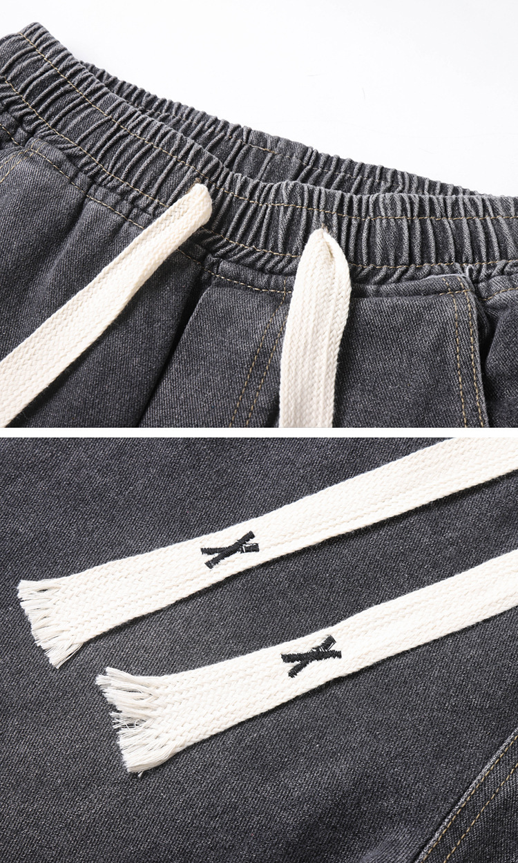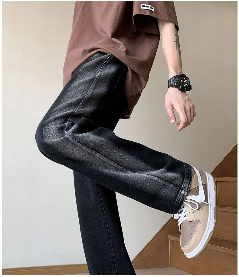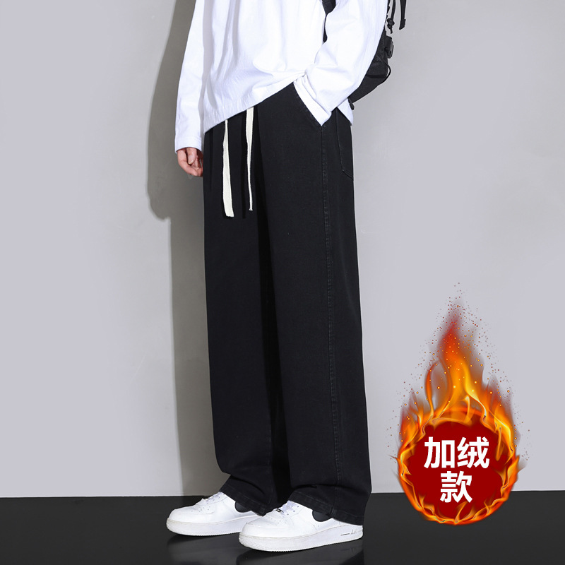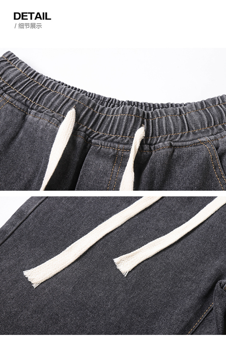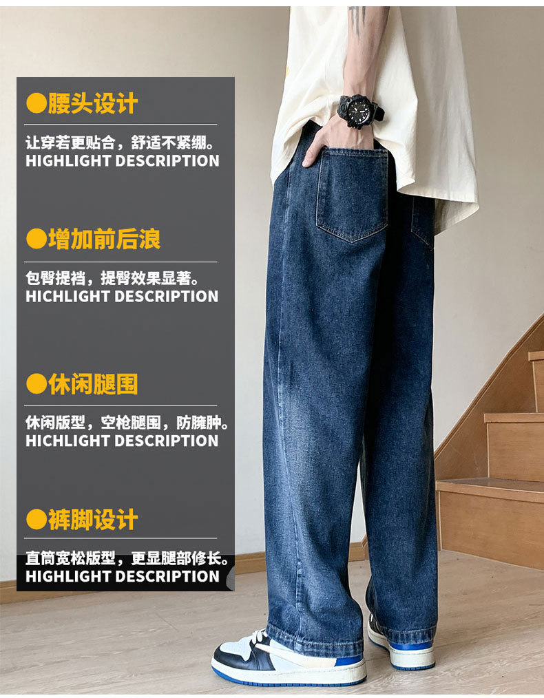 워싱 데님 팬츠 남성용 2025 봄 가을 루즈핏 탄력 허리밴드 아메리칸 하이스트리트 스트레이트 와이드 팬츠 캐주얼 롱 팬츠스토어 가기