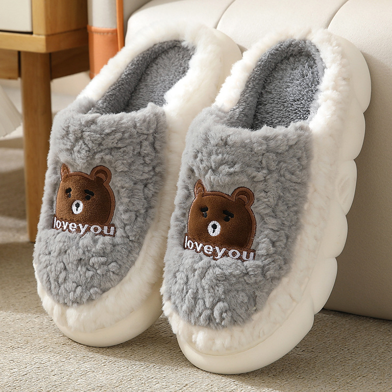 2023 가을과 겨울 귀여운 만화 커플 면 슬리퍼 여성 복장 가정용 두꺼운 슬리퍼 남성용 미끄럼 방지 도매스토어 가기
