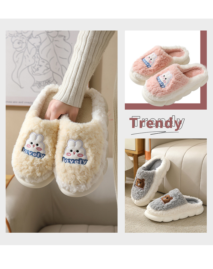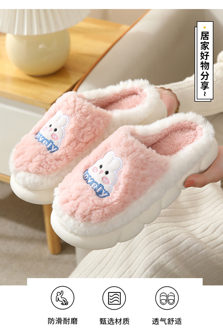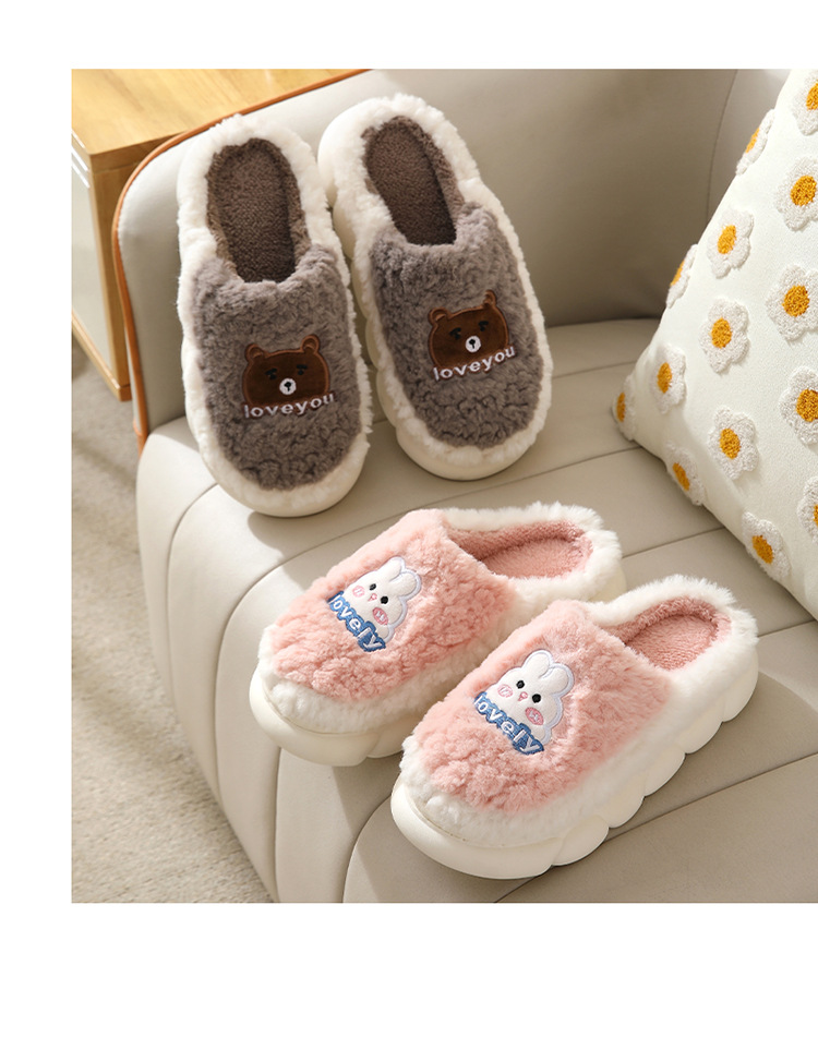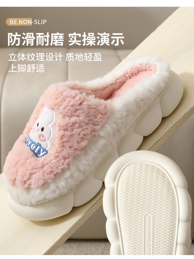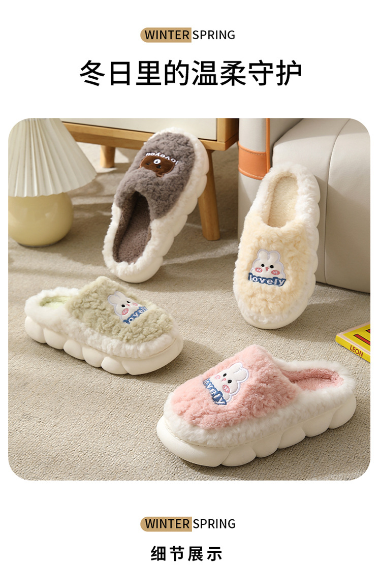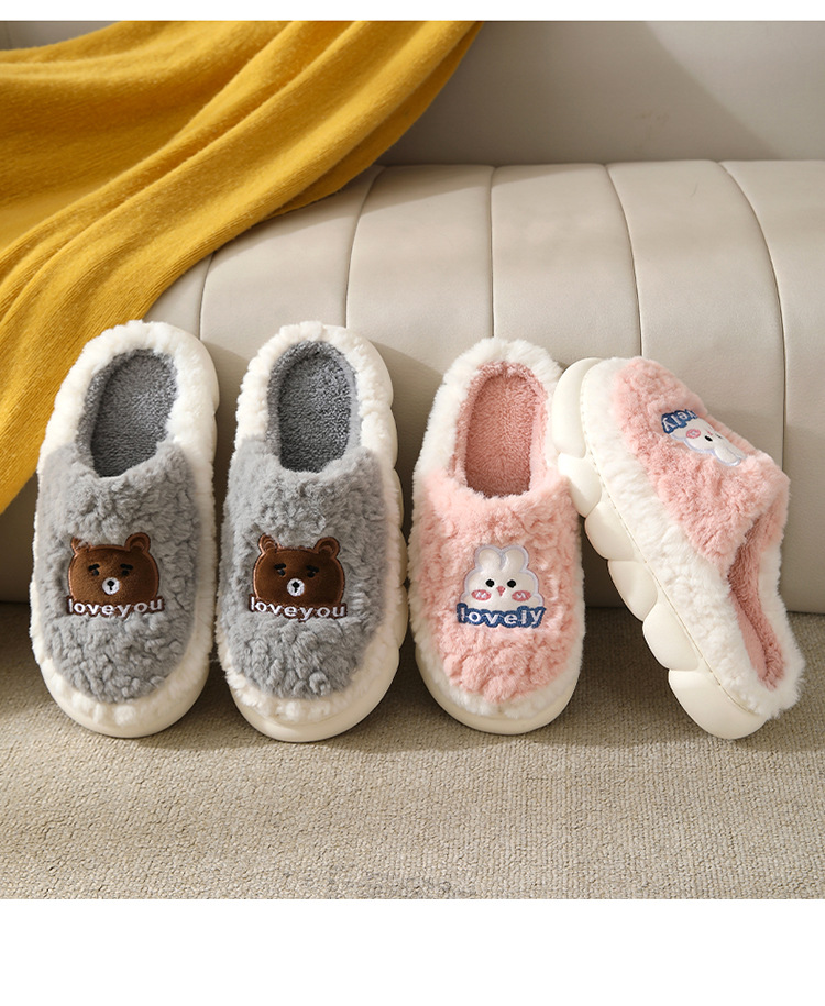 2023 가을과 겨울 귀여운 만화 커플 면 슬리퍼 여성 복장 가정용 두꺼운 슬리퍼 남성용 미끄럼 방지 도매