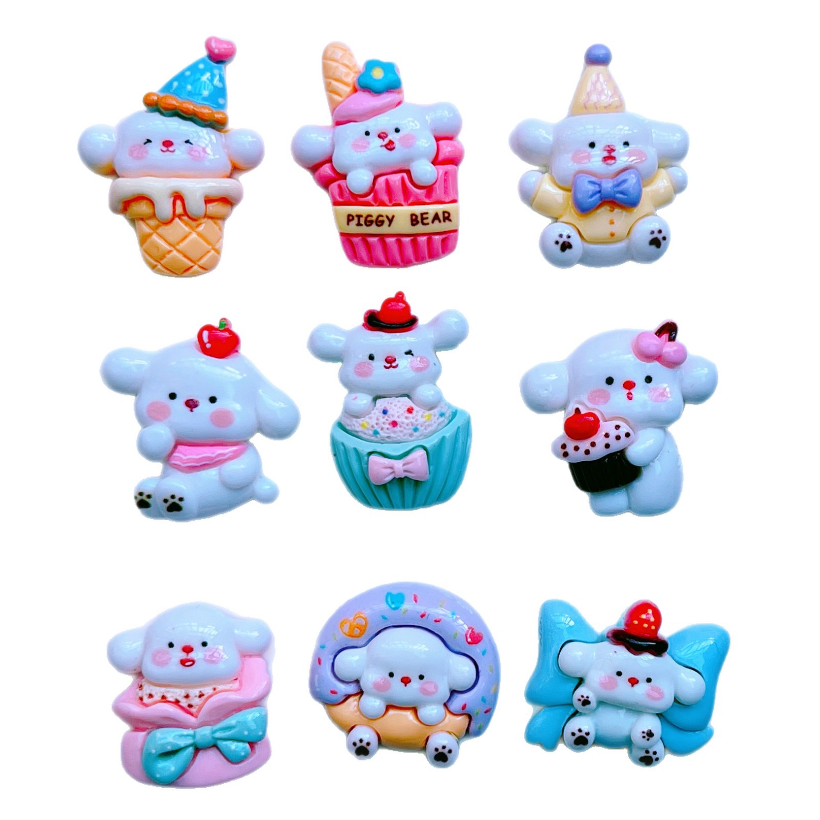 만화 광택 동물 귀여운 콘 케이크 강아지 크림 접착제 냉장고 스티커 헤어 액세서리 헤어핀 DIY 수지 액세서리