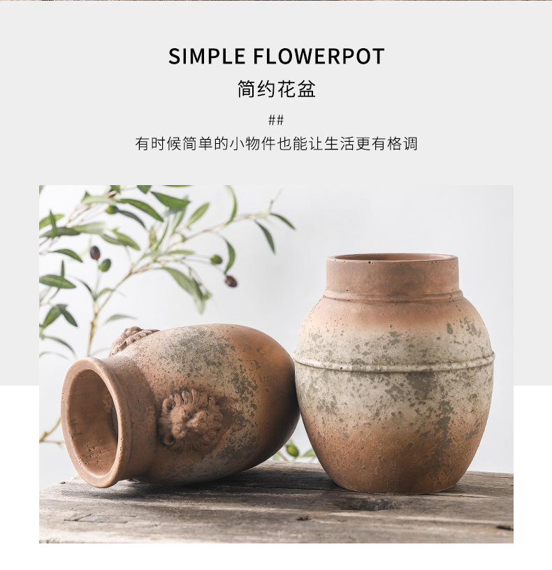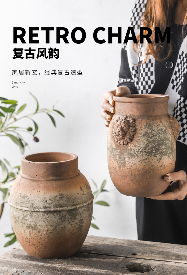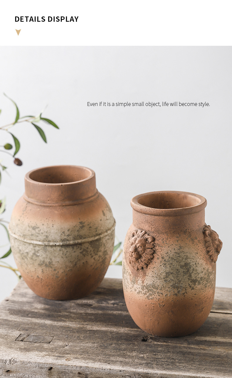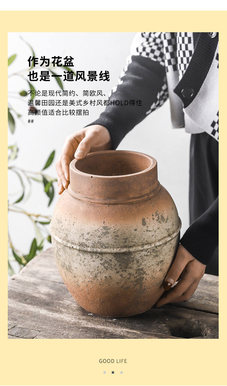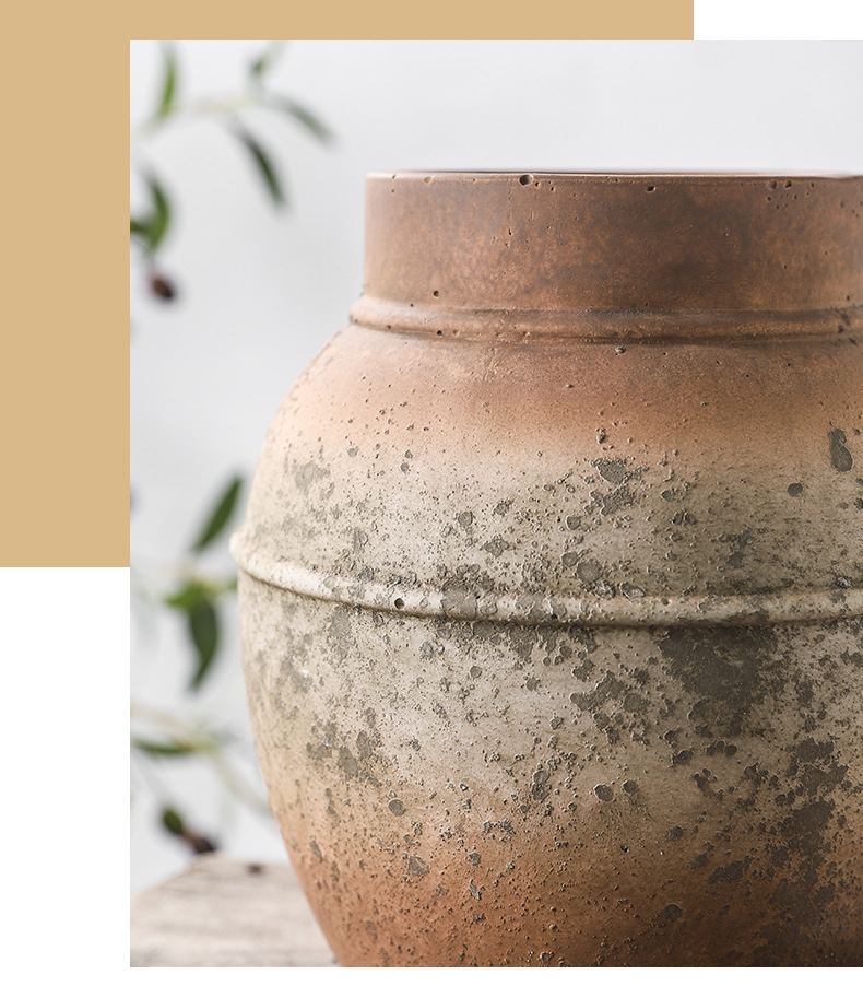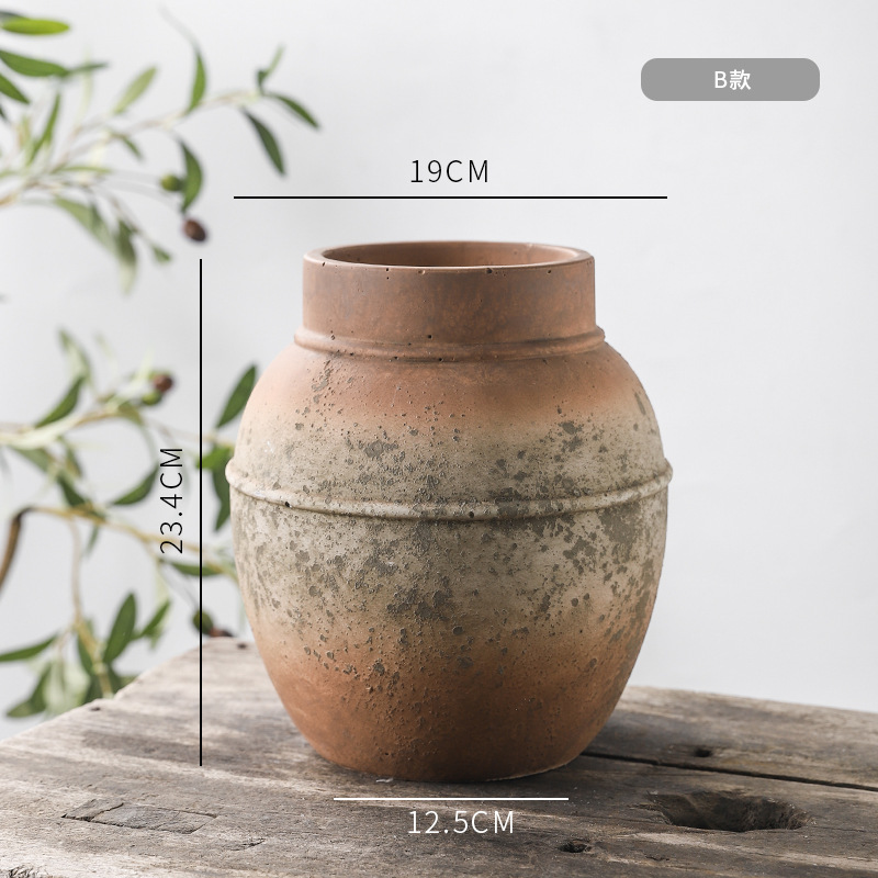 하이 엔드 아트 골동품 도자기 항아리 복고풍 빨간 도자기 수제 거친 도자기 녹색 시멘트 꽃병 창조적 인 장식품 스몰 사이즈 꽃 도자기스토어 가기
