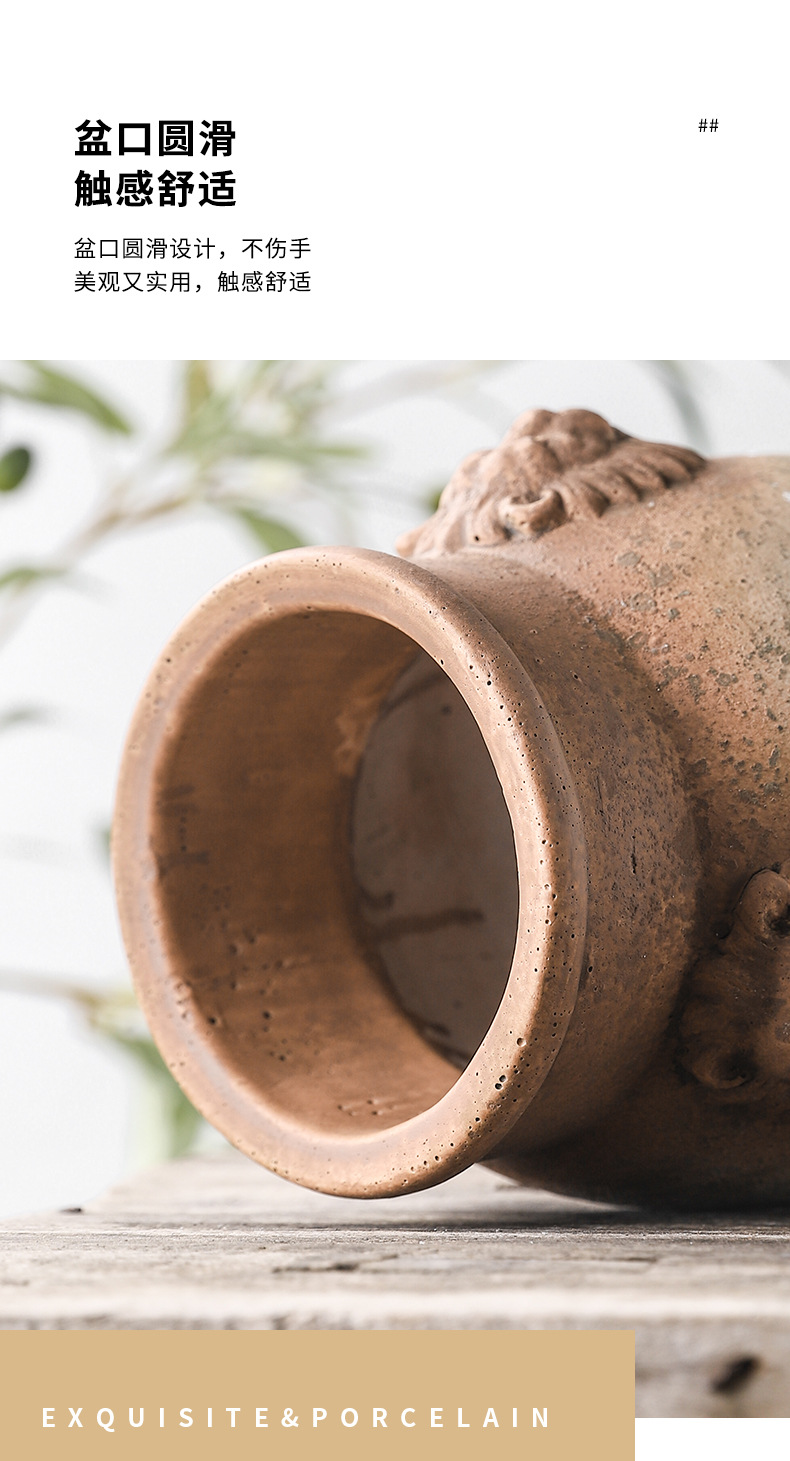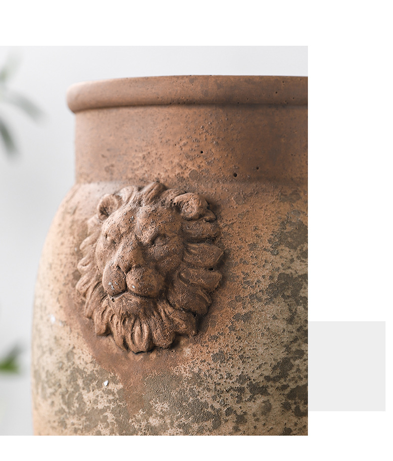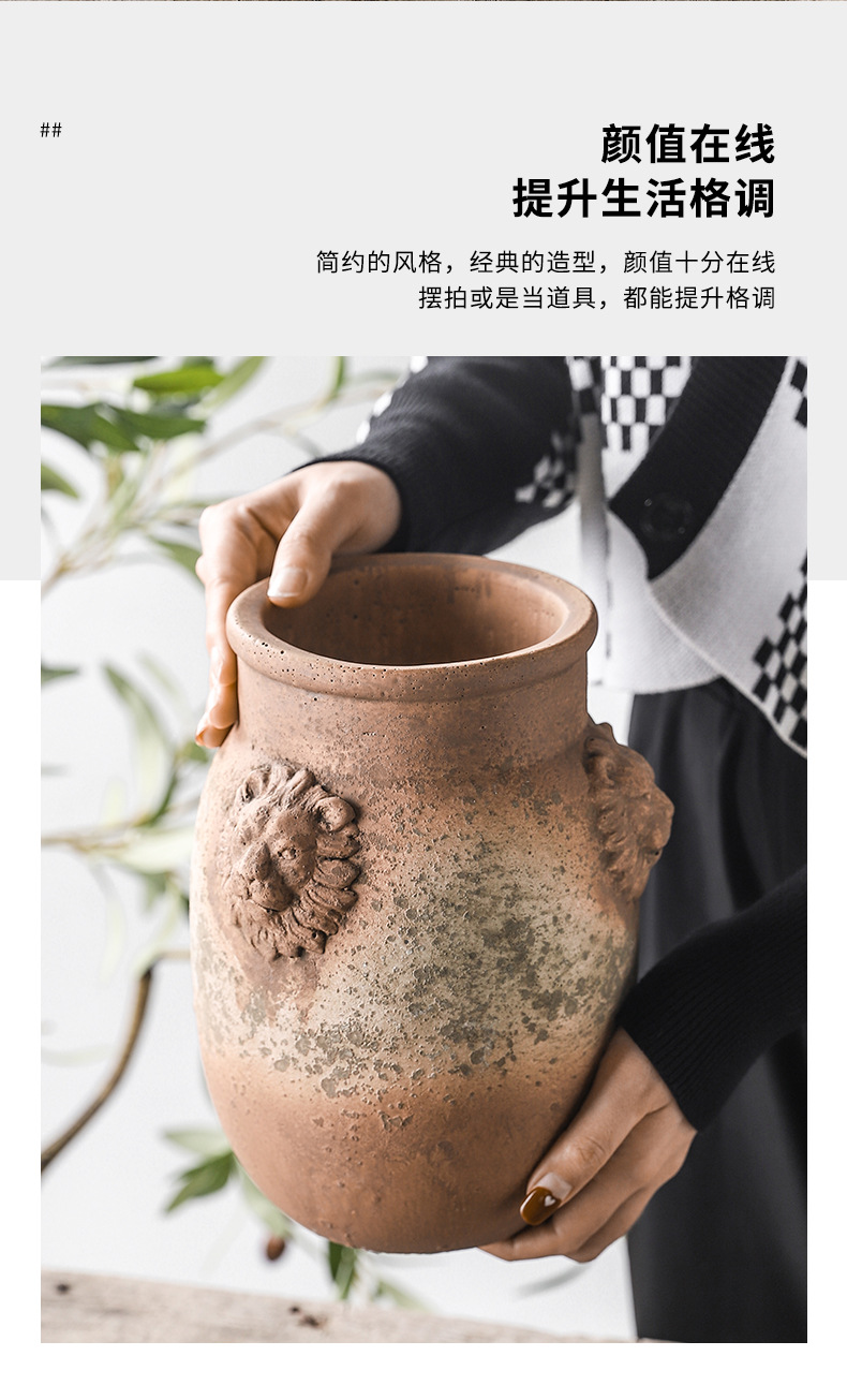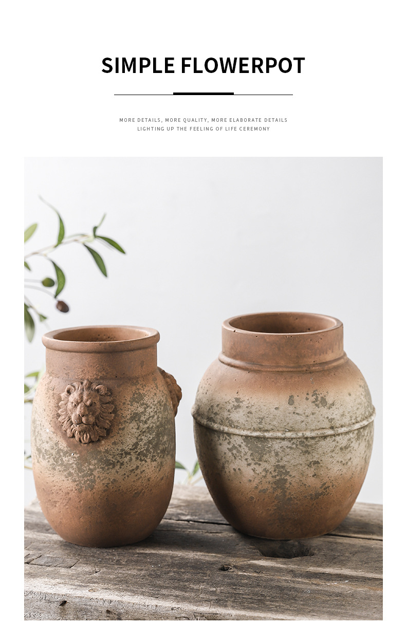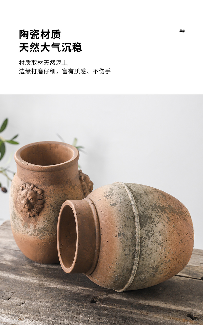 하이 엔드 아트 골동품 도자기 항아리 복고풍 빨간 도자기 수제 거친 도자기 녹색 시멘트 꽃병 창조적 인 장식품 스몰 사이즈 꽃 도자기스토어 가기