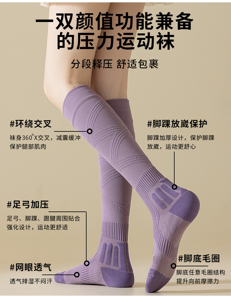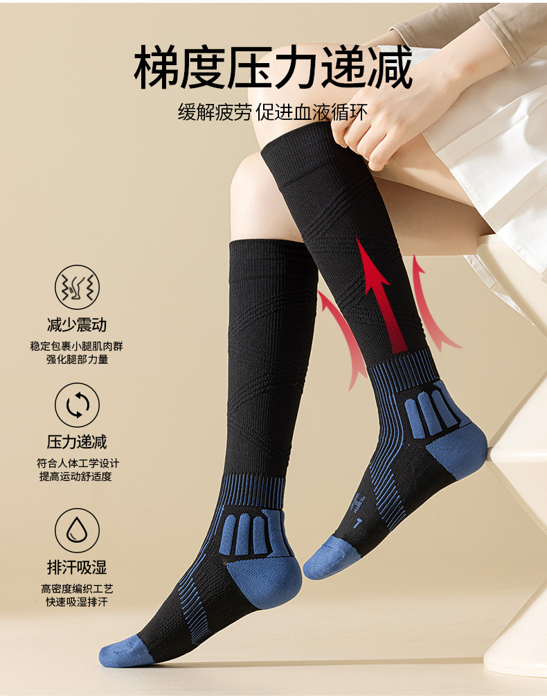 압력 양말 전문 스포츠 땀 흡수 테리 탄성 양말 가을, 겨울 여성 솔리드 컬러 탈취제 긴 튜브 압축 양말 종아리 양말