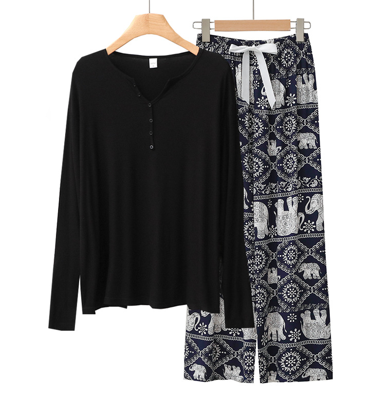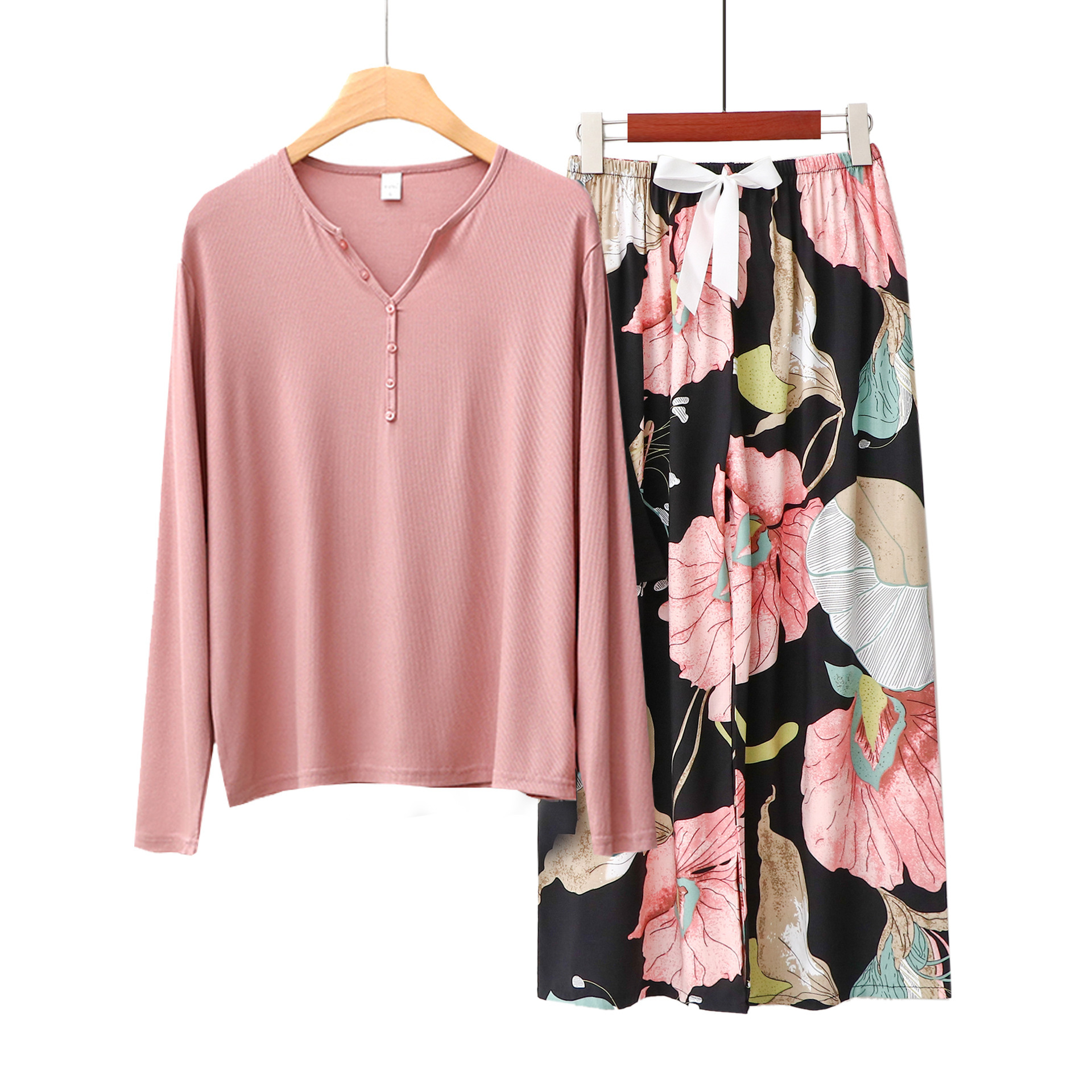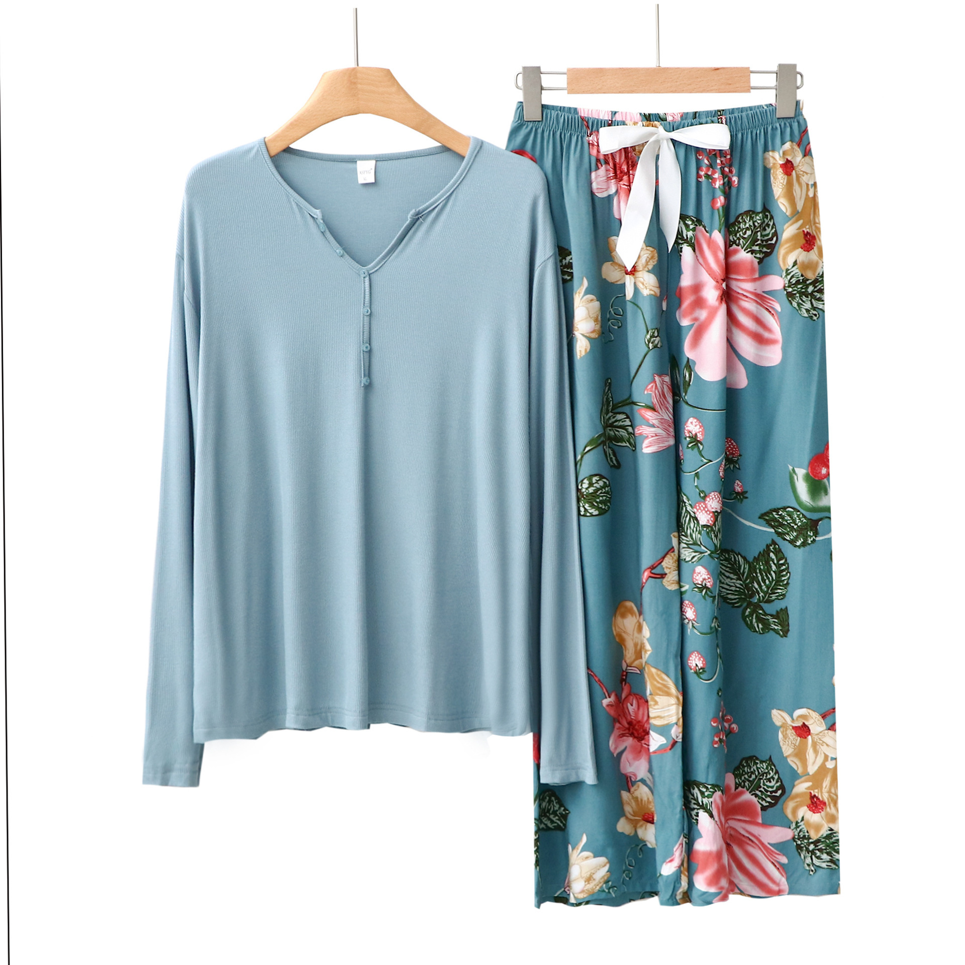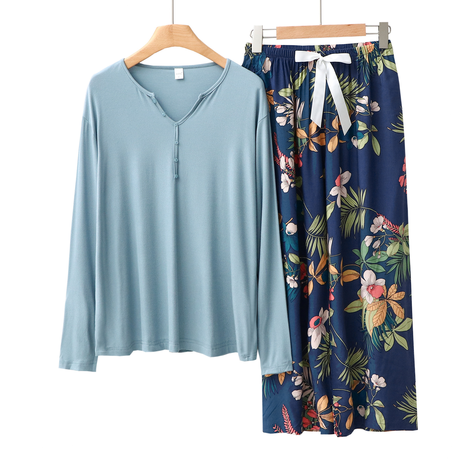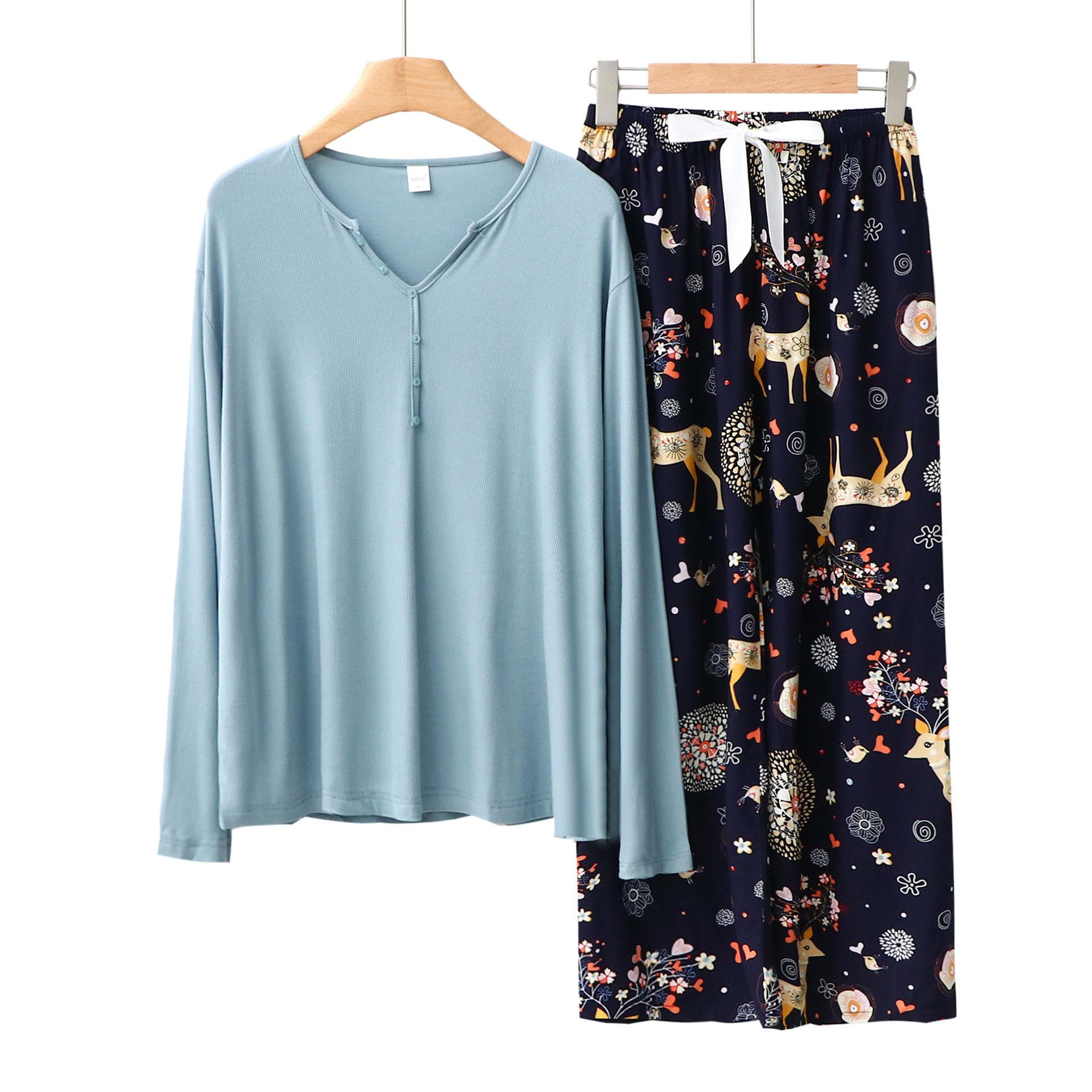 유럽과 미국 스타일의 여성 모달 잠옷, 긴팔 바지, 국경 간 무역 대형 섹시 잠옷, 여성 가을 정장스토어 가기