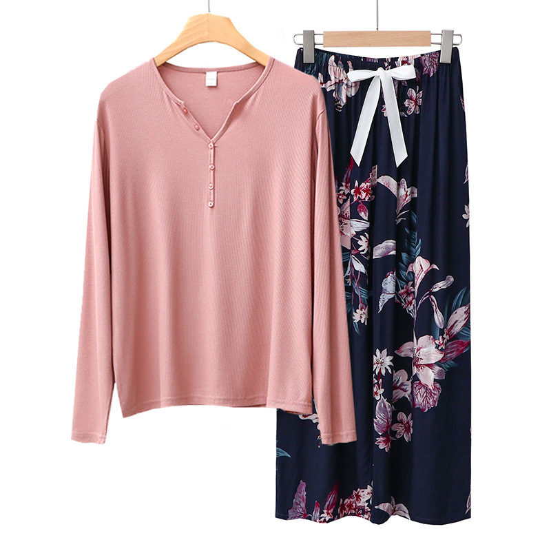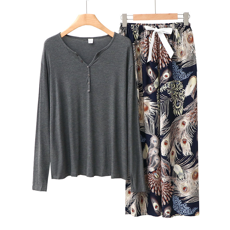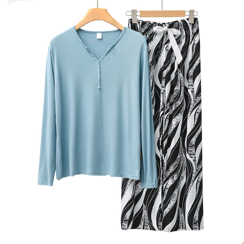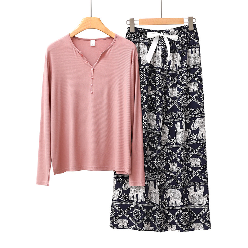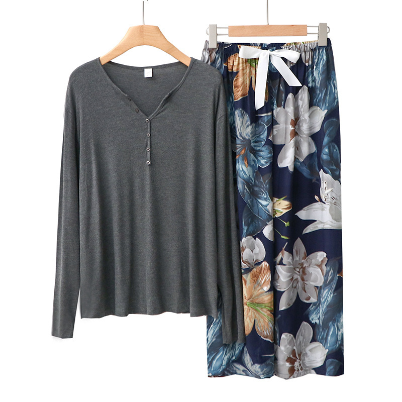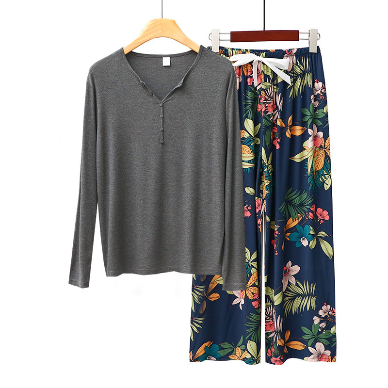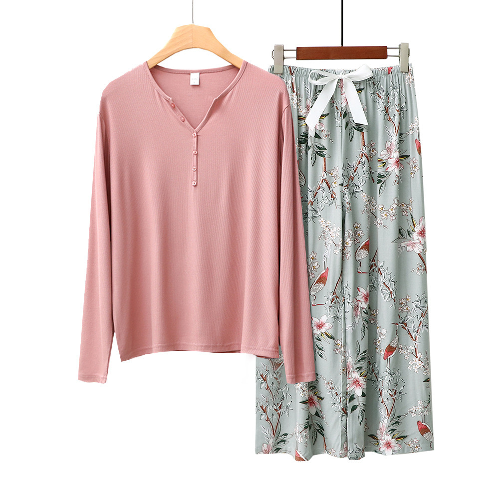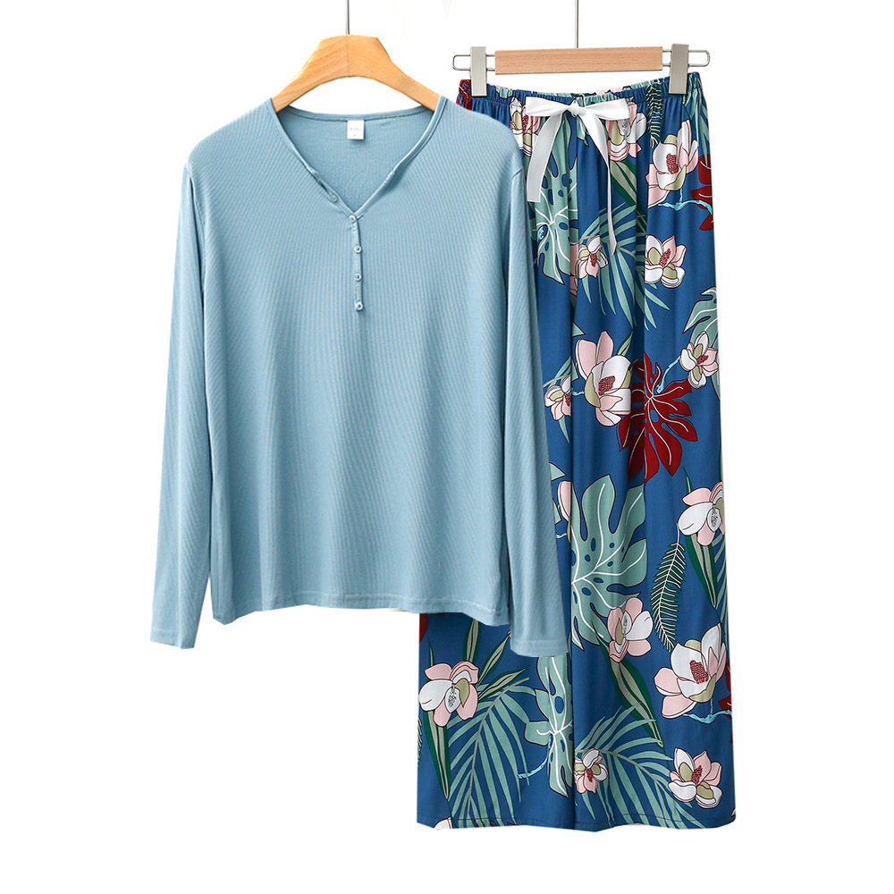 유럽과 미국 스타일의 여성 모달 잠옷, 긴팔 바지, 국경 간 무역 대형 섹시 잠옷, 여성 가을 정장스토어 가기