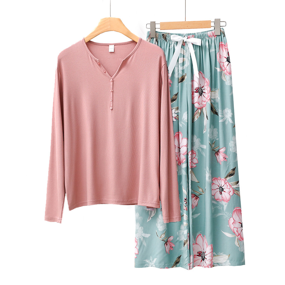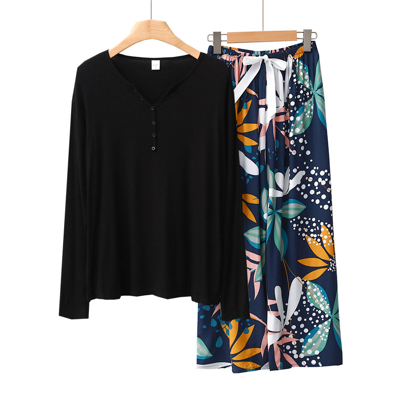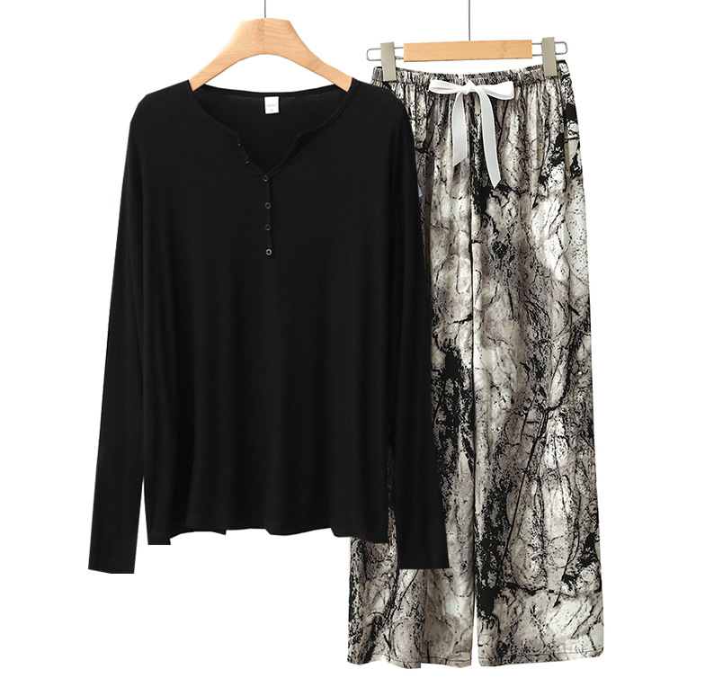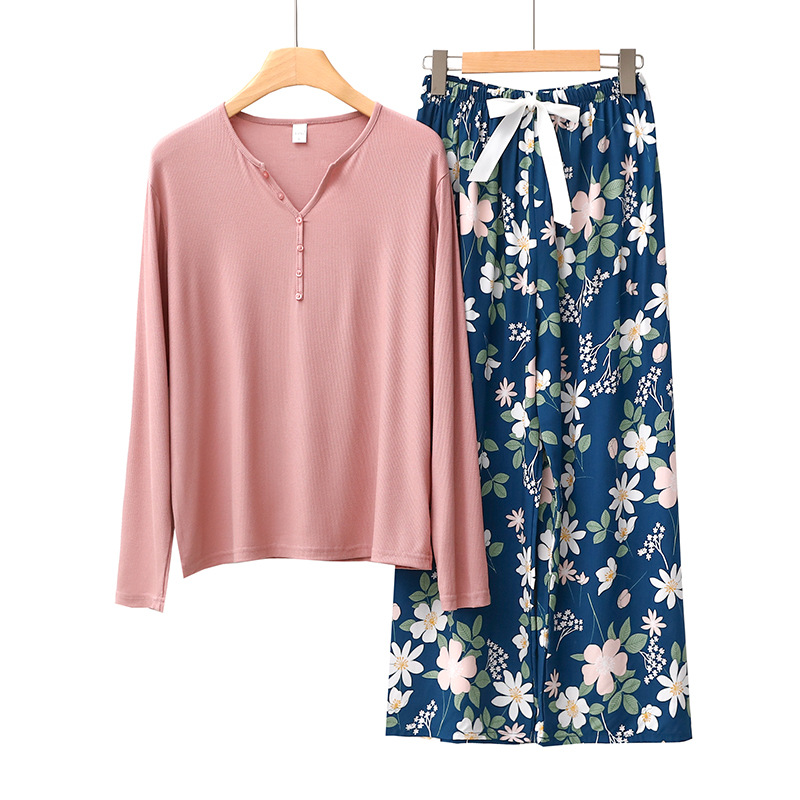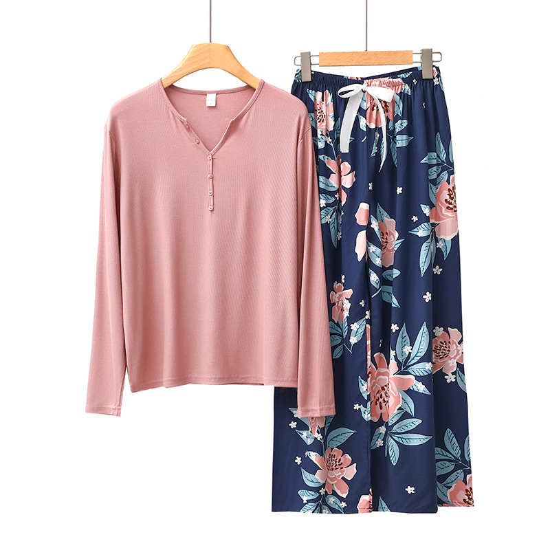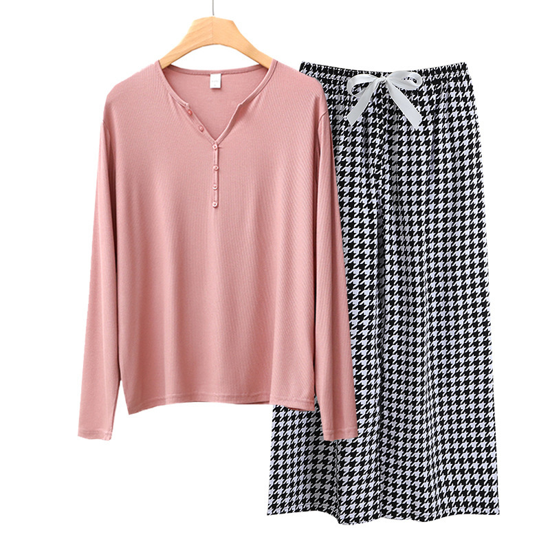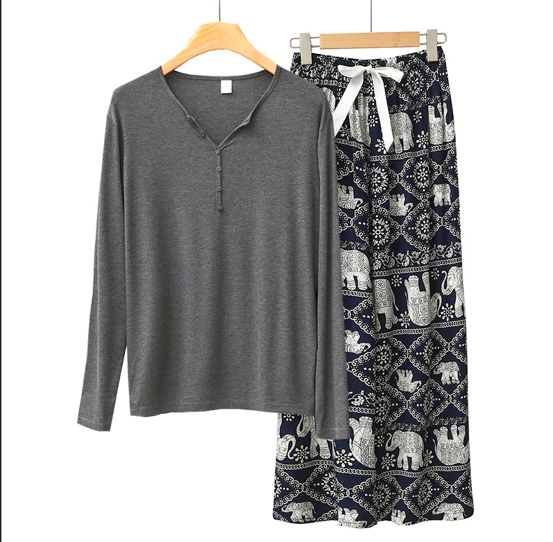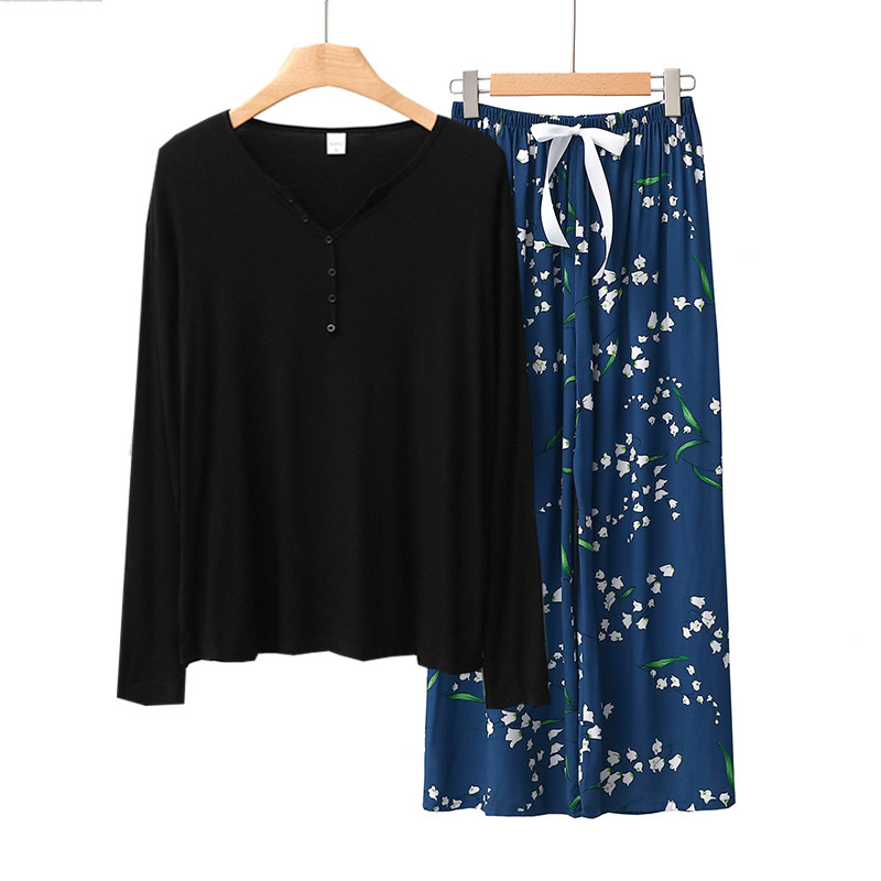 유럽과 미국 스타일의 여성 모달 잠옷, 긴팔 바지, 국경 간 무역 대형 섹시 잠옷, 여성 가을 정장스토어 가기