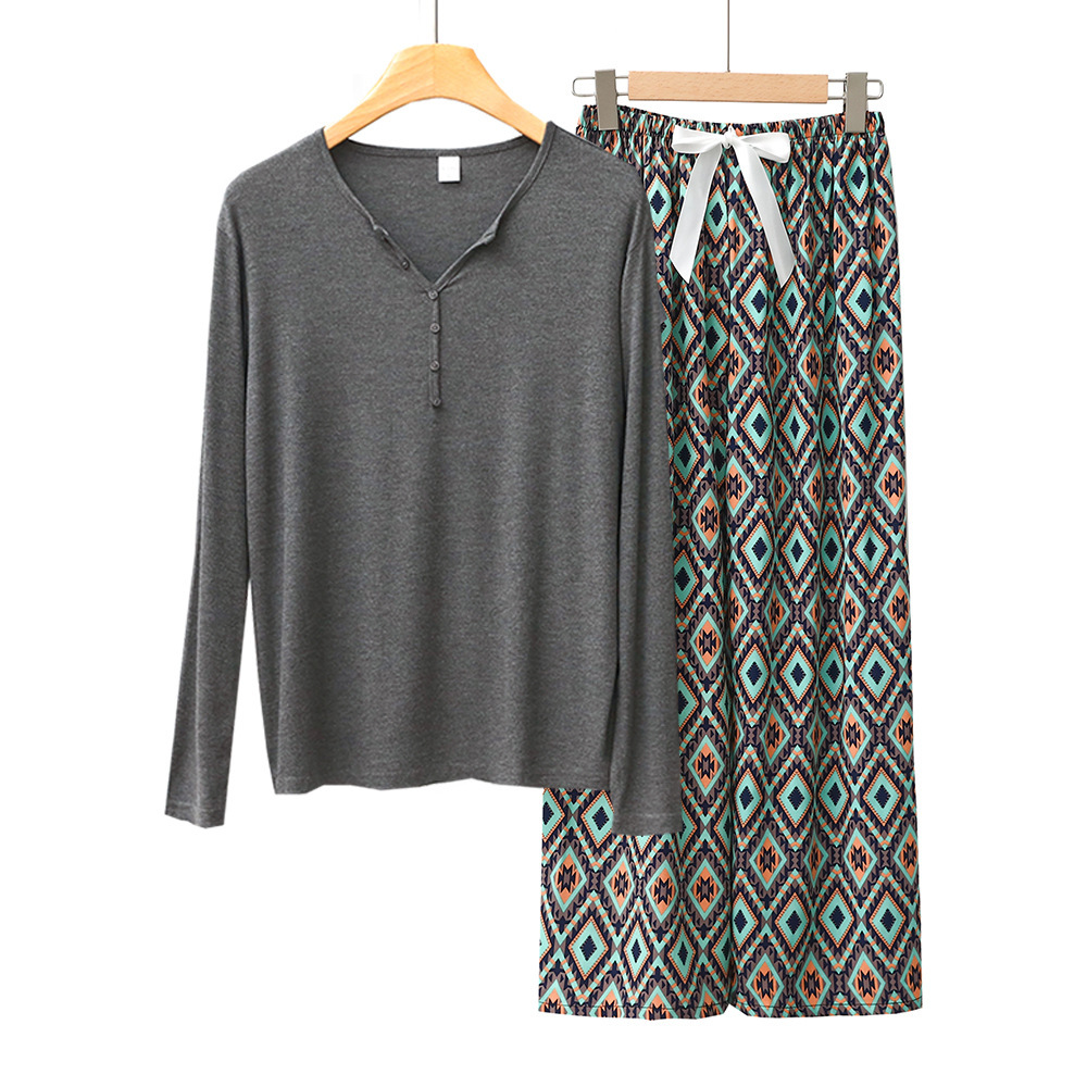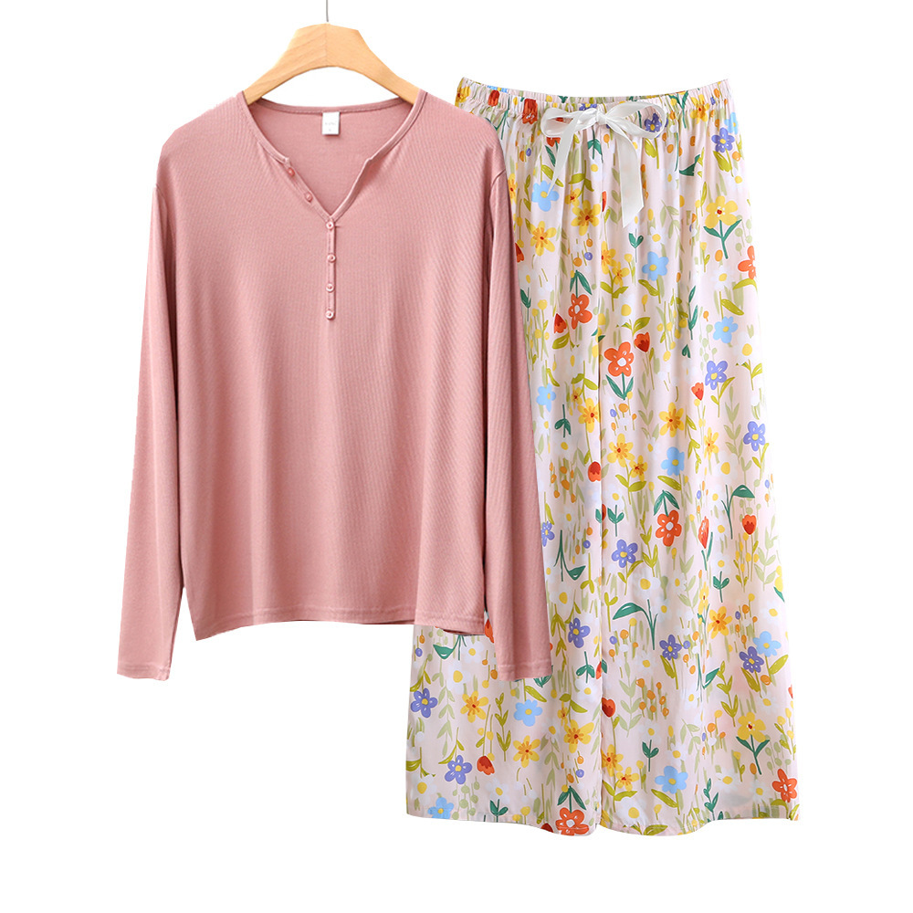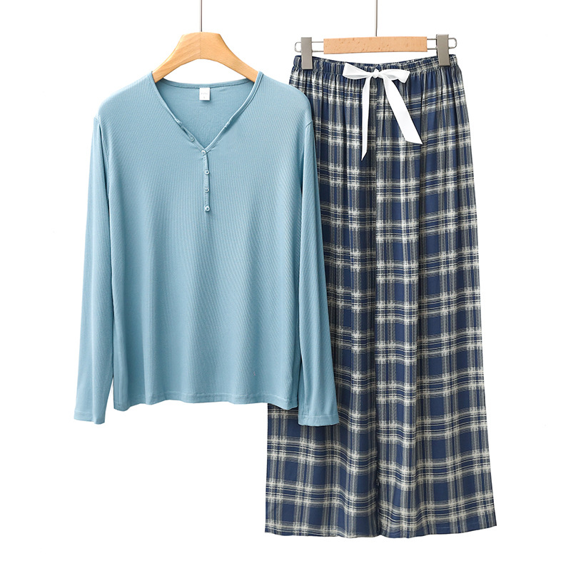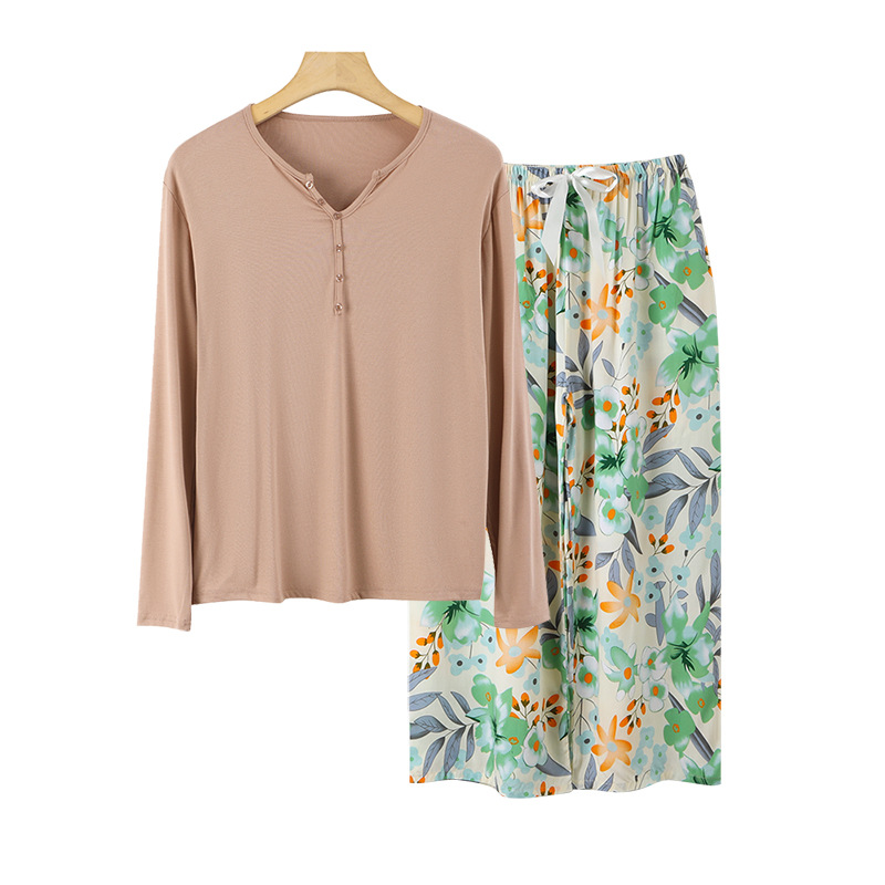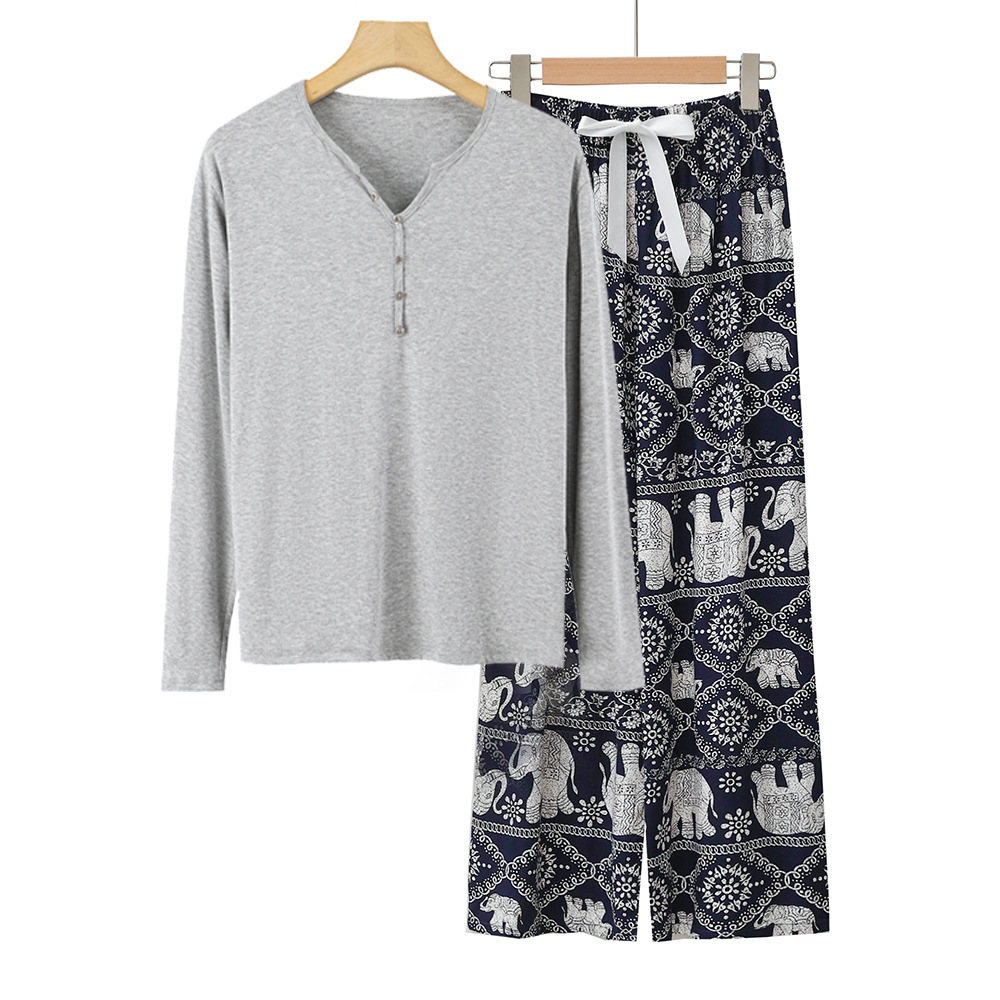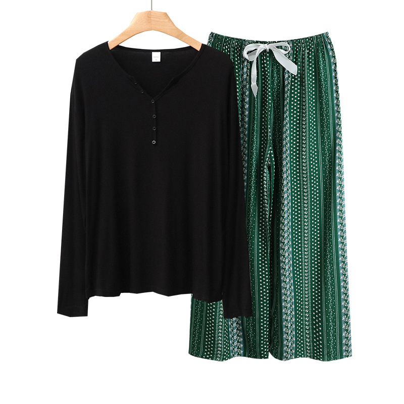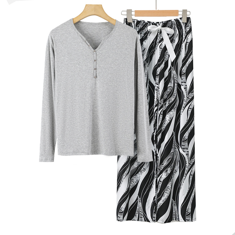 유럽과 미국 스타일의 여성 모달 잠옷, 긴팔 바지, 국경 간 무역 대형 섹시 잠옷, 여성 가을 정장스토어 가기
