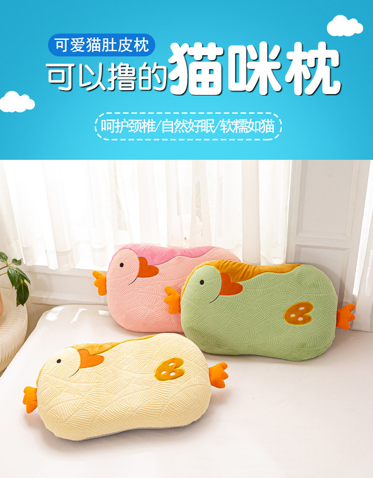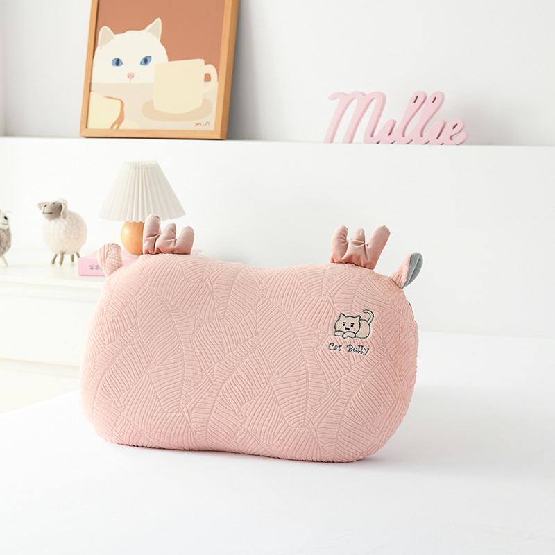 고양이 배꼽 베개 가을과 겨울 어린이 만화 느린 반동 메모리 베개 성인 싱글 가정용 목 베개 사계절 유니버설스토어 가기
