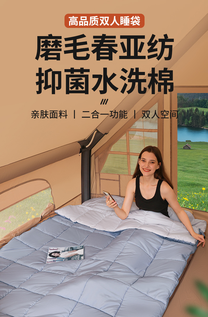 Kailuud 더블 침낭 겨울 방한 따뜻한 야외 캠핑 성인 캠핑 휴대용 봉투 두꺼운 침낭