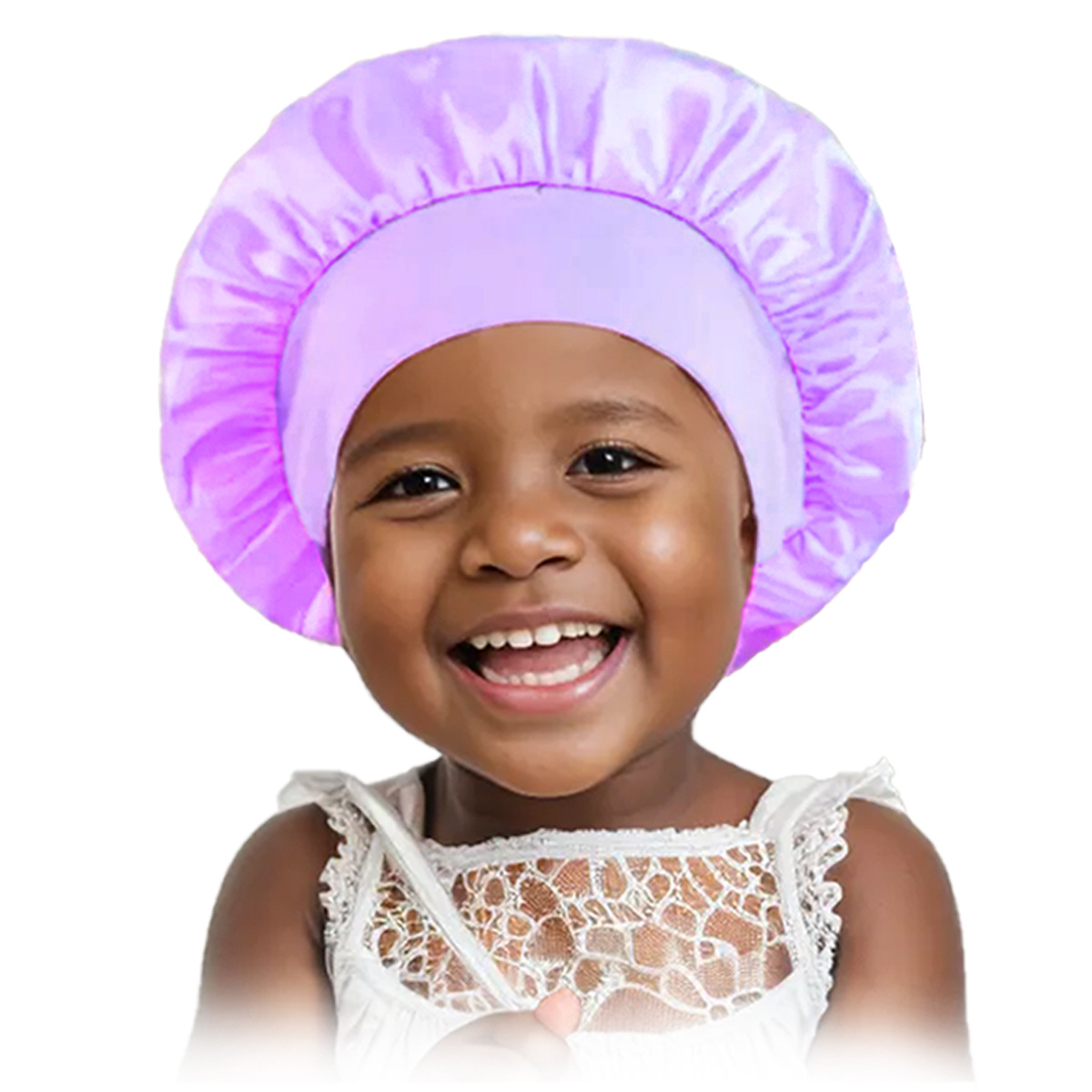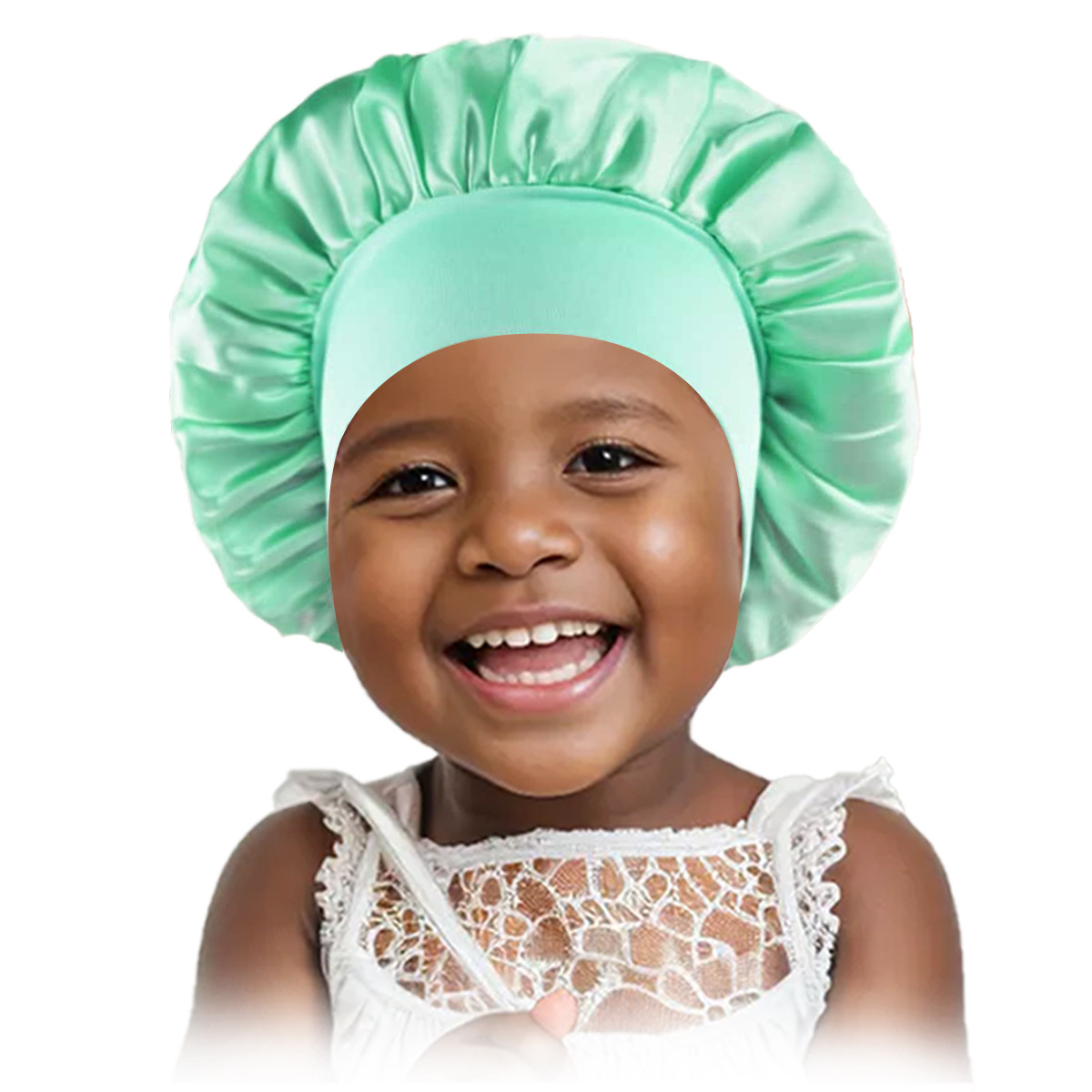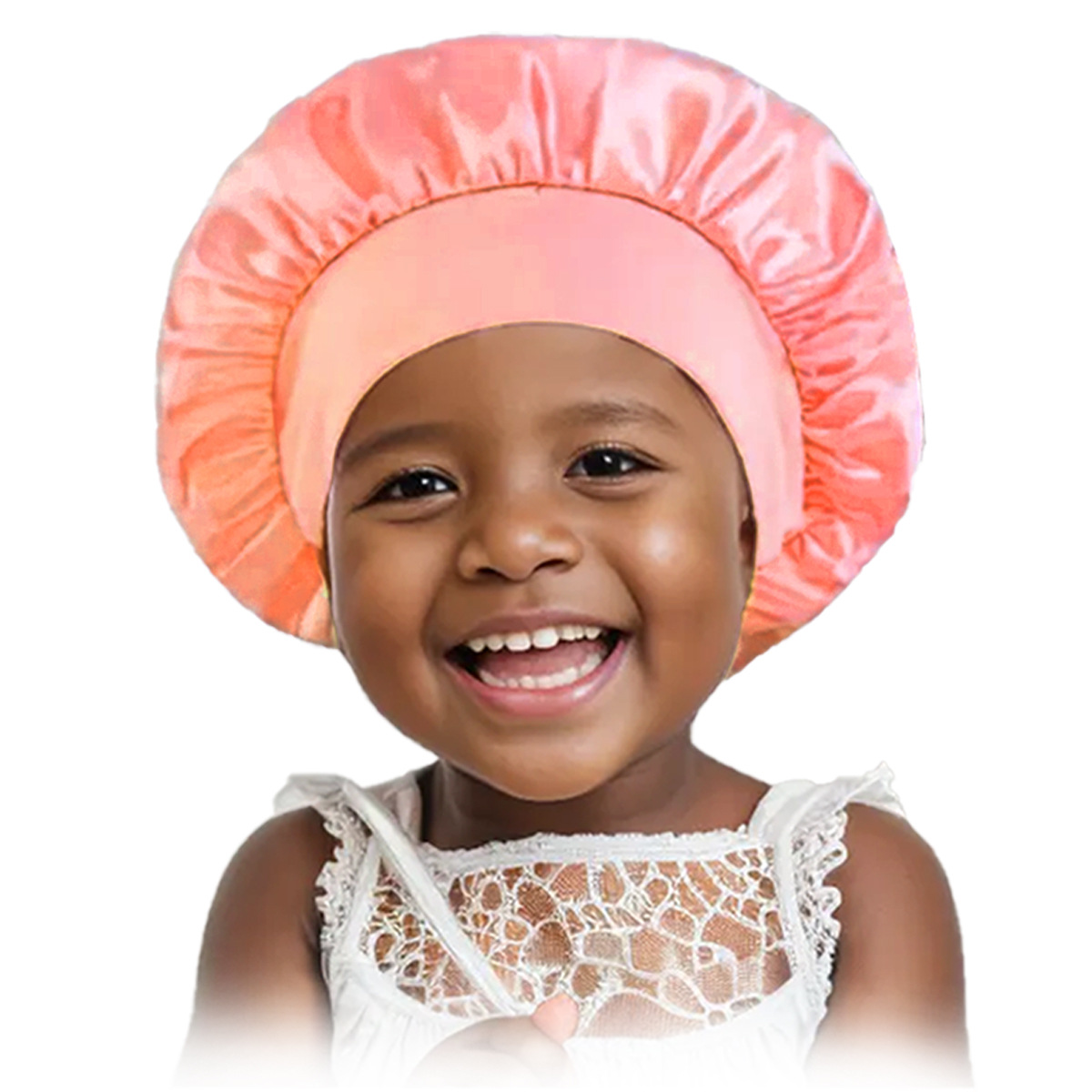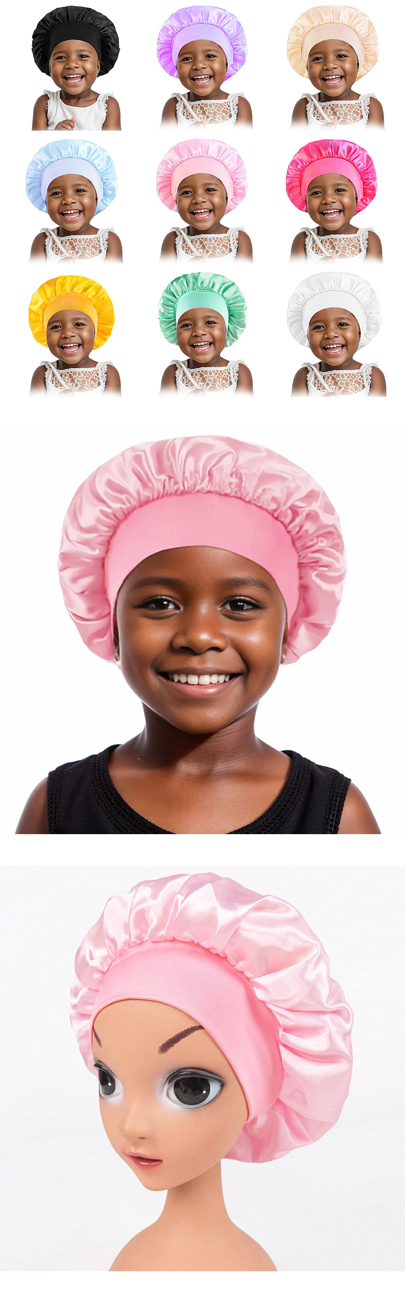 크로스 보더 핫 세일 솔리드 컬러 와이드 챙 스트레치 어린이 새틴 나이트 캡 패션 헤어 케어 샤워 캡 화학 요법 캡 보닛
