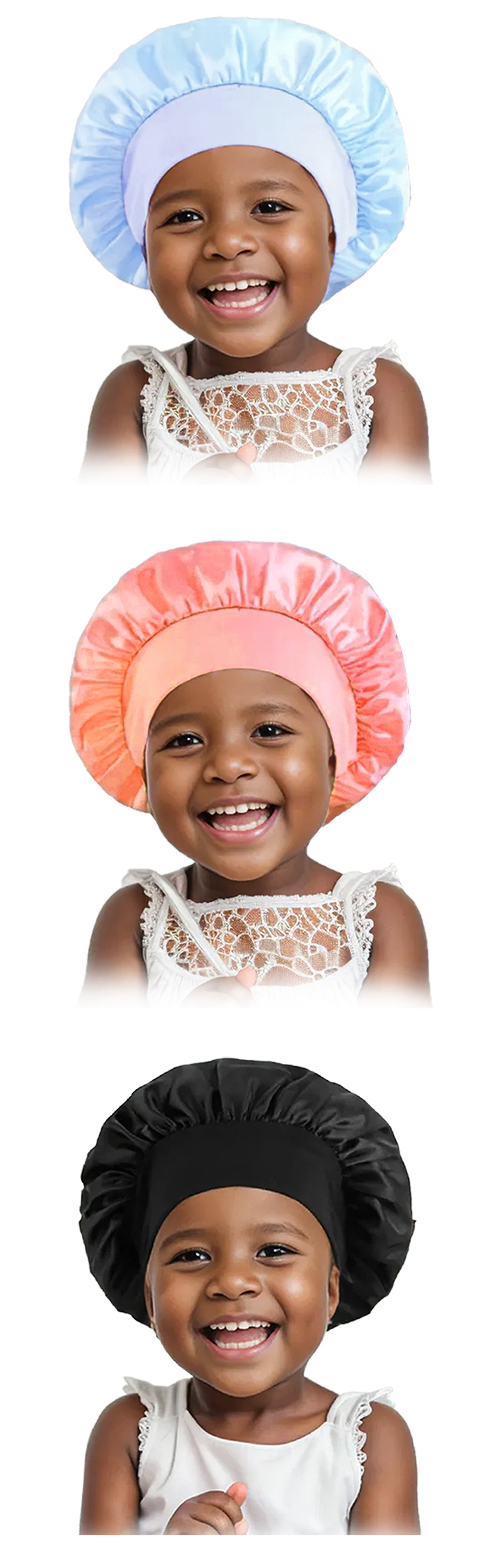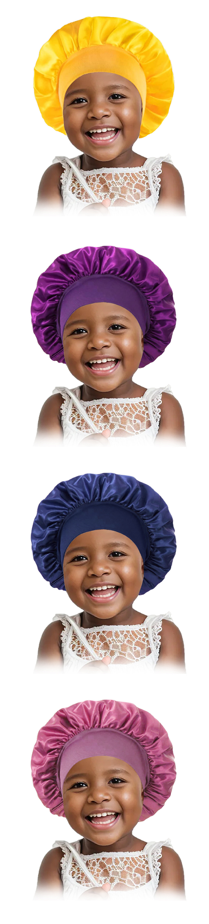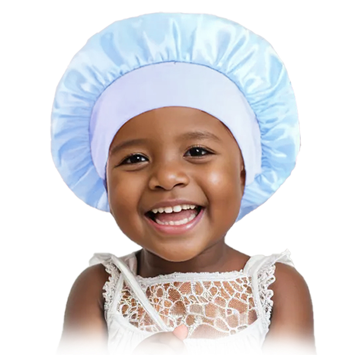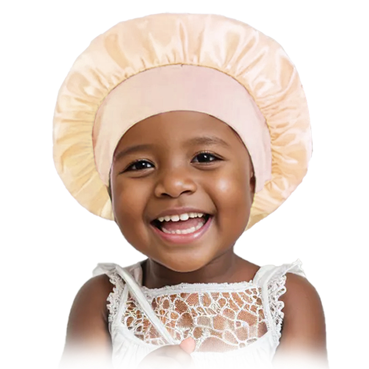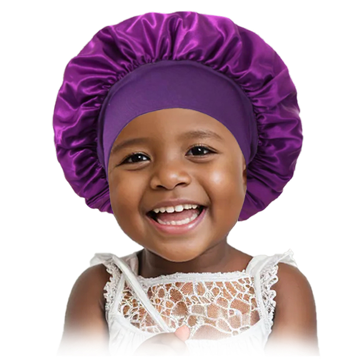 크로스 보더 핫 세일 솔리드 컬러 와이드 챙 스트레치 어린이 새틴 나이트 캡 패션 헤어 케어 샤워 캡 화학 요법 캡 보닛