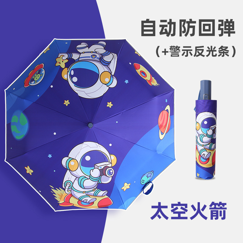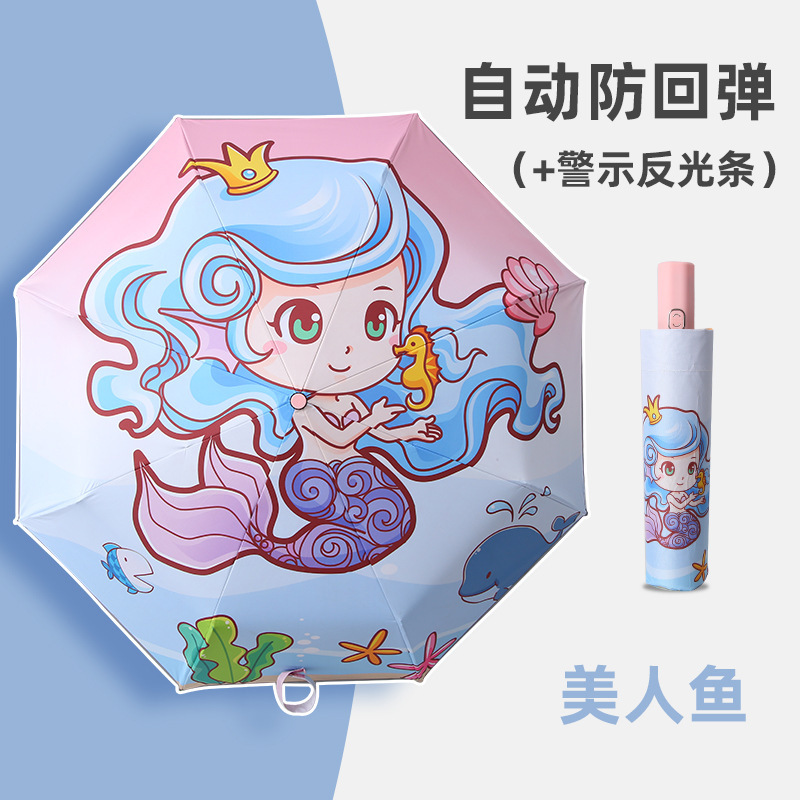 만화 자동 반동 방지 어린이 맑은 우산 접는 검은 접착제 반사 스트립 초등학생을위한 맞춤형 3 중 우산스토어 가기
