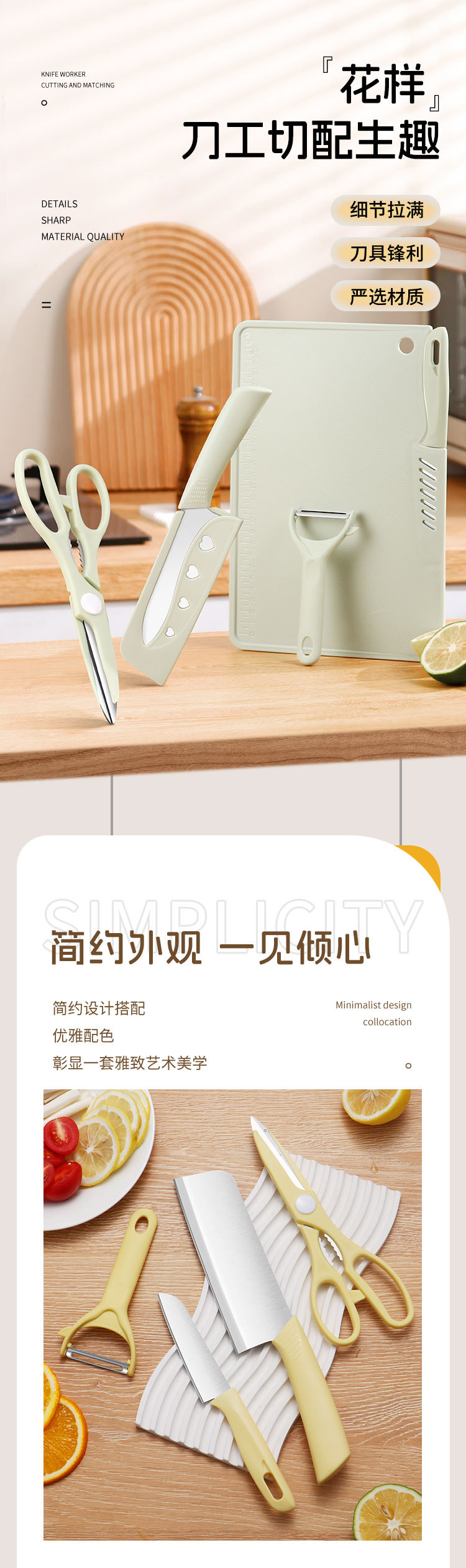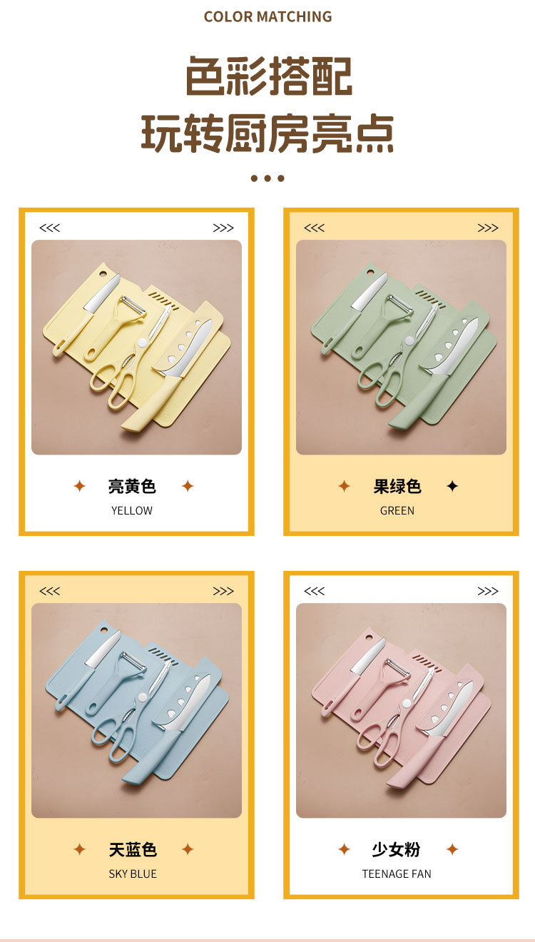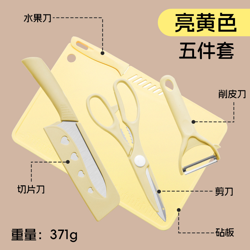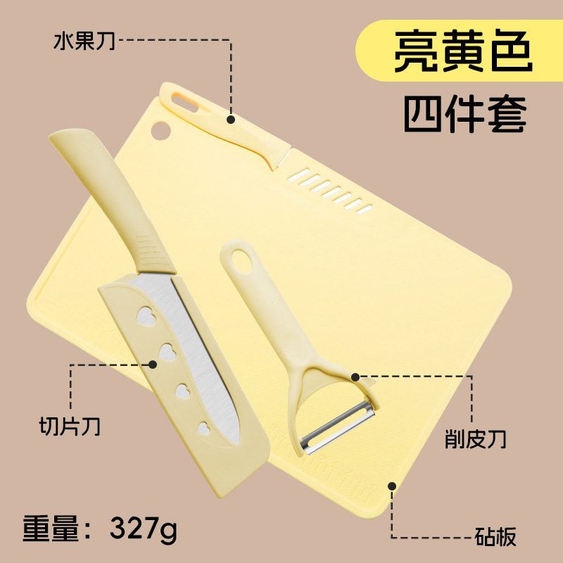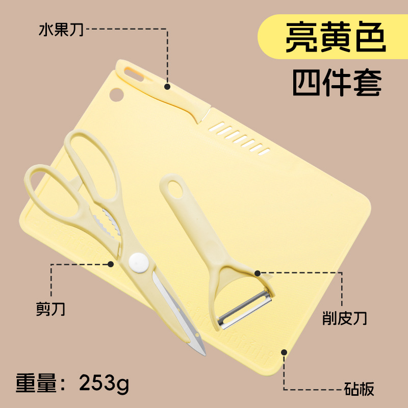 • 도마 4 개 세트/슬라이스 나이프 [밝은 황색]]