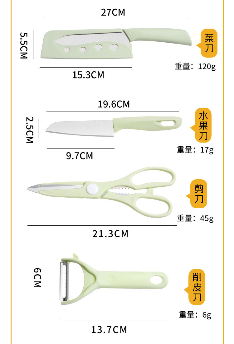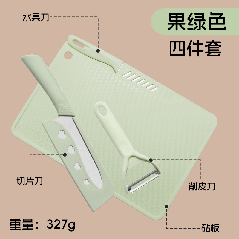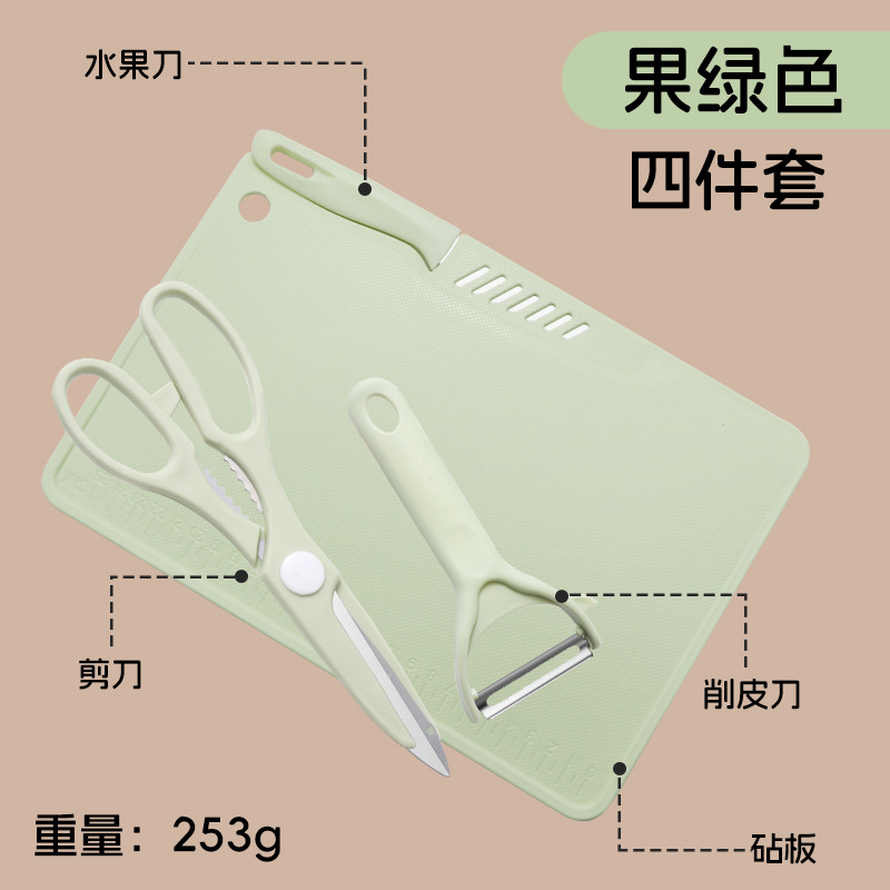 • 도마 4 개 세트/슬라이스 나이프 [과일 그린]]