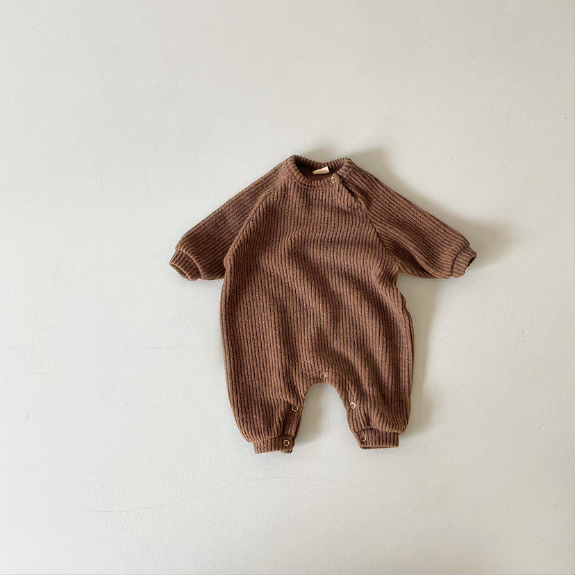 2024 봄과 가을 아기 모조 울 라글란 소매 긴 가방 의류 아기 소년과 소년 아기 곰 모자 바디 수트스토어 가기