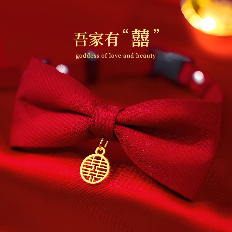 애완 동물 나비 넥타이 웨딩 단어 고양이 개 목 보석 사진 활 레드 축제 패브릭 목 반지