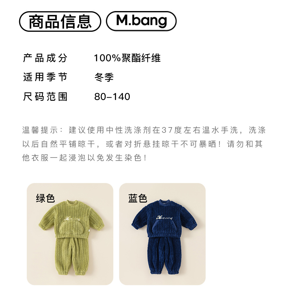 유바오 아동복 어린이용 따뜻한 잠옷 가을 겨울 두꺼운 여아용 캐주얼 홈웨어 남아용 세트 투피스스토어 가기
