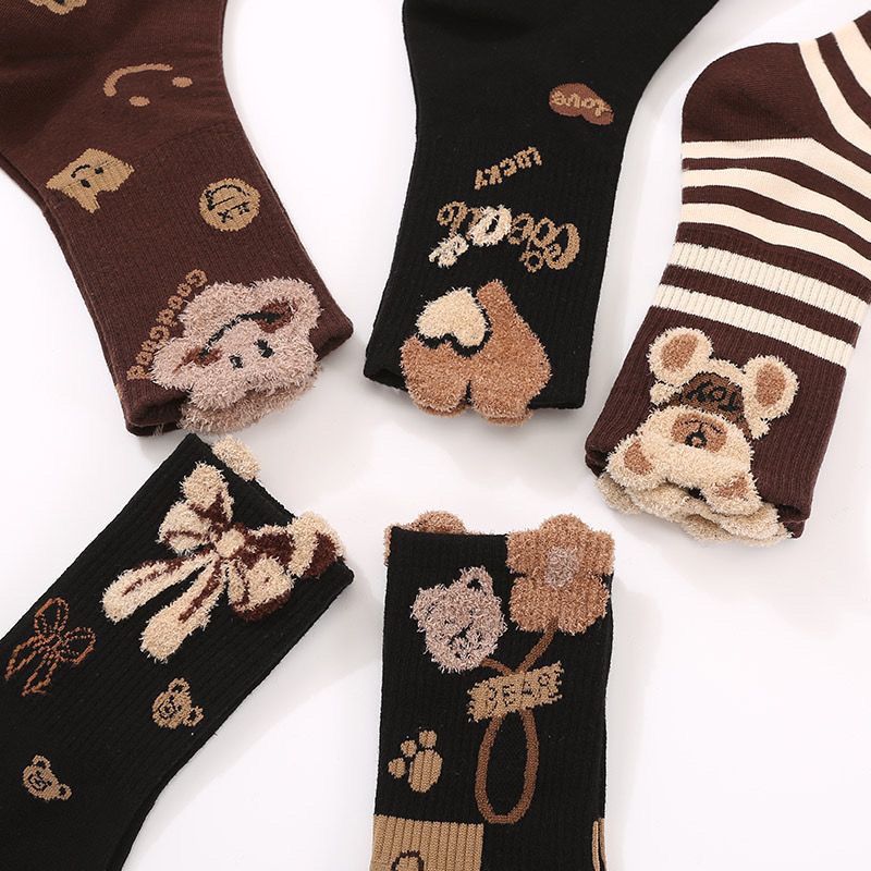 양말 여성용 겨울 롱 배럴 하이 컬러 값 사이버 인기 인스 타 그램 트렌디 모든 경기 새로운 입체 무리 귀여운 곰 두꺼운
