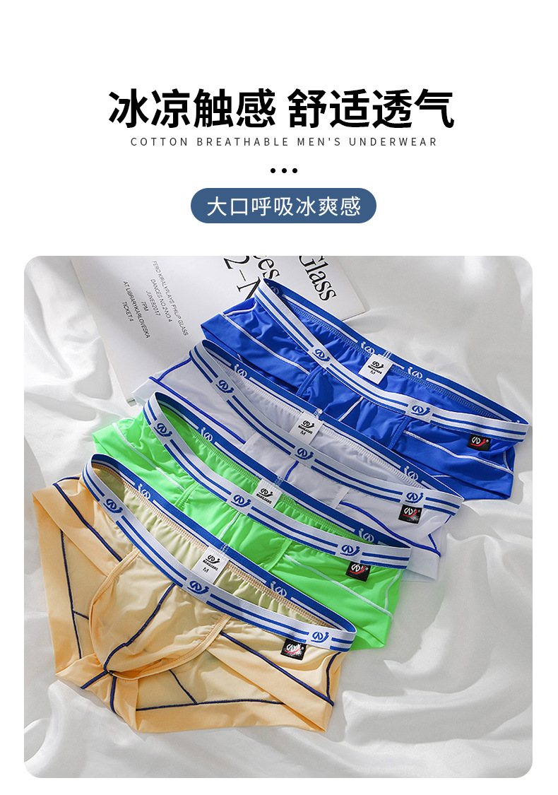 남자 속옷 아이스 실크 단색 피부 친화적 통기성 팬티 알몸 실크 단색 소년 반바지 헤드 중산 도매스토어 가기