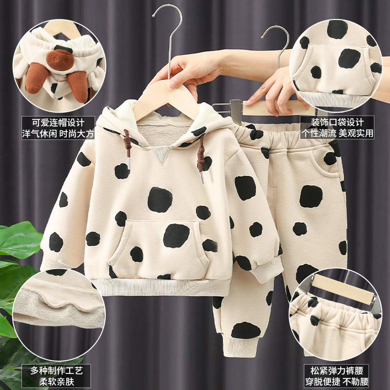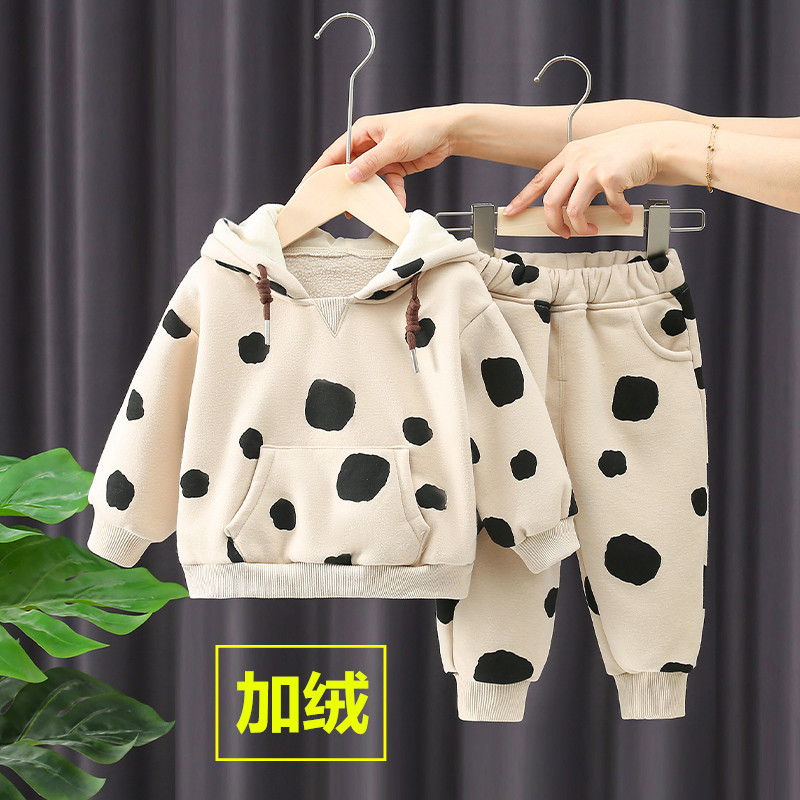여아용 플리스 스웨트셔츠 세트 2024년 신상 가을 겨울 남녀 아기 귀여운 얇은 플리스 스포츠 캐주얼 투피스 세트 한국 스타일스토어 가기