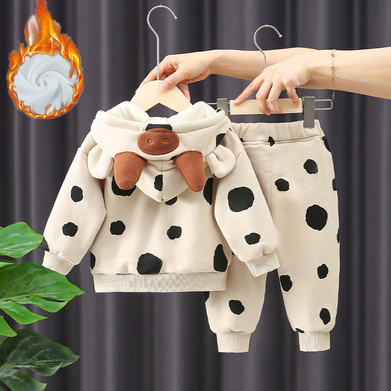 여아용 플리스 스웨트셔츠 세트 2024년 신상 가을 겨울 남녀 아기 귀여운 얇은 플리스 스포츠 캐주얼 투피스 세트 한국 스타일