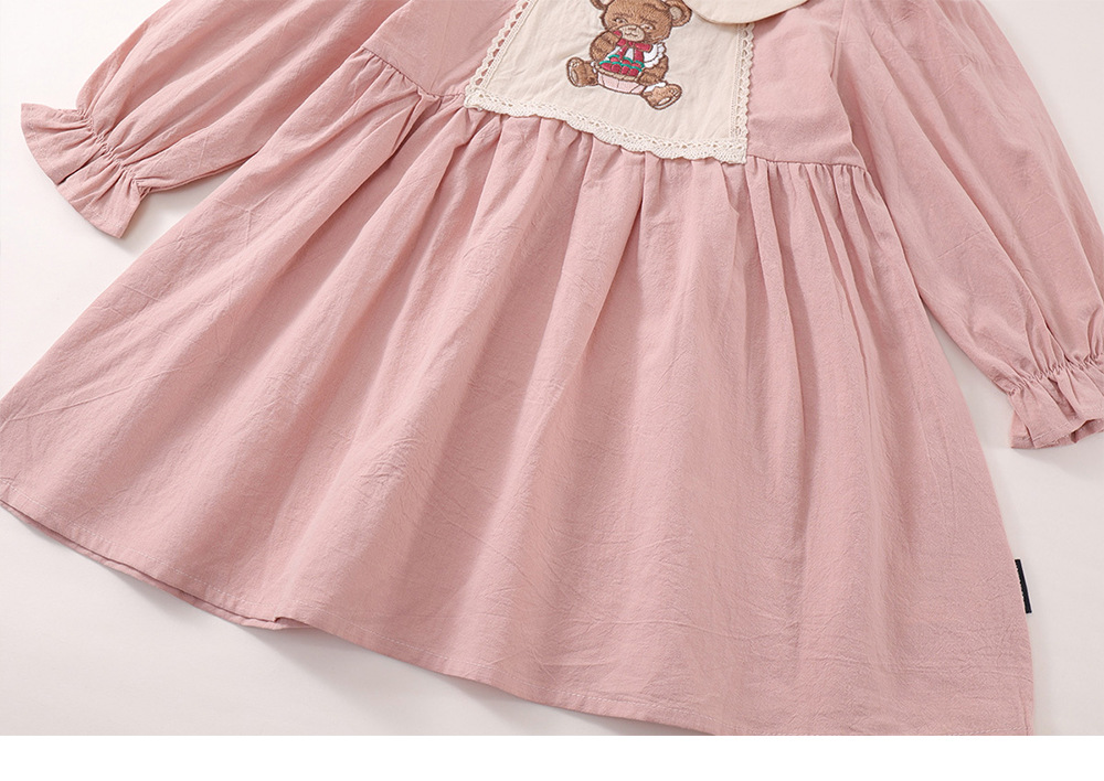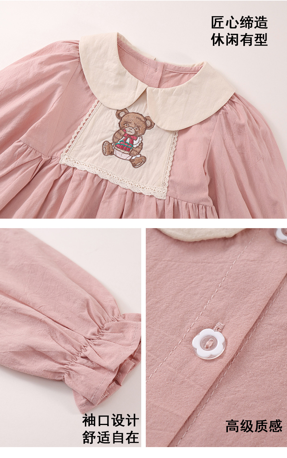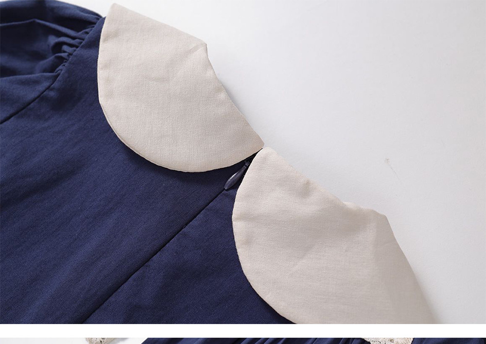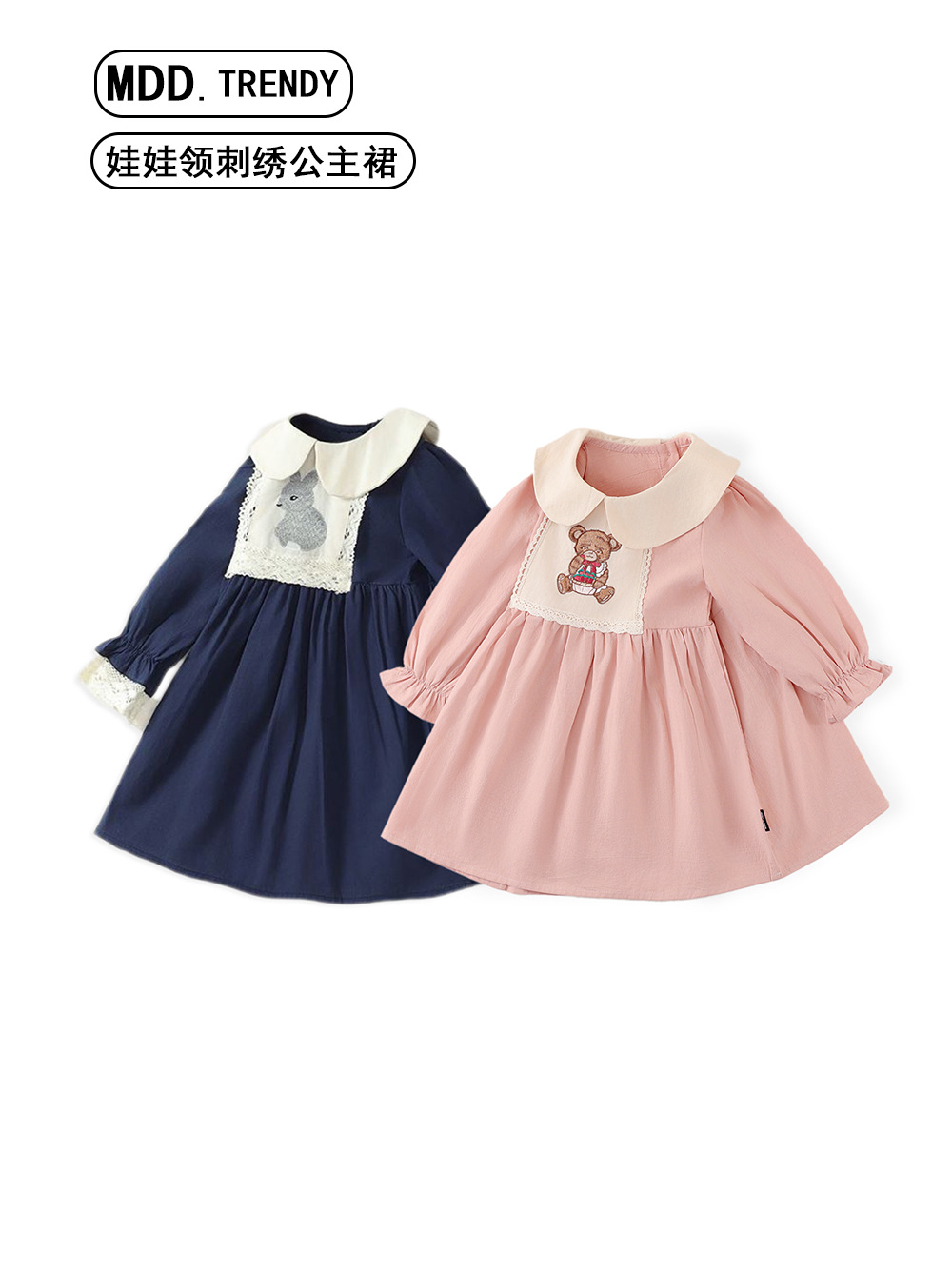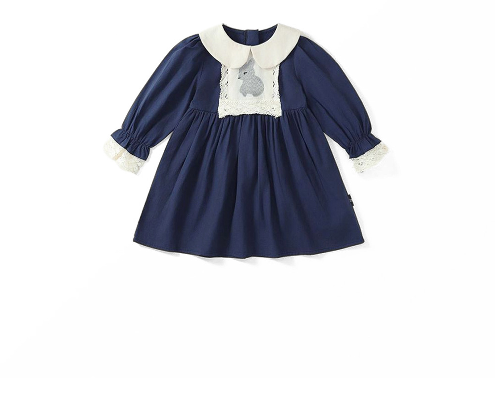 MDD 아기 소녀 프랑스 인형 목걸이 토끼 수 놓은 2024 가을 긴 소매 네이비 대학 스타일 원피스 공주스토어 가기