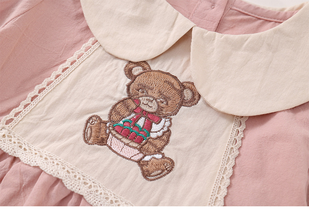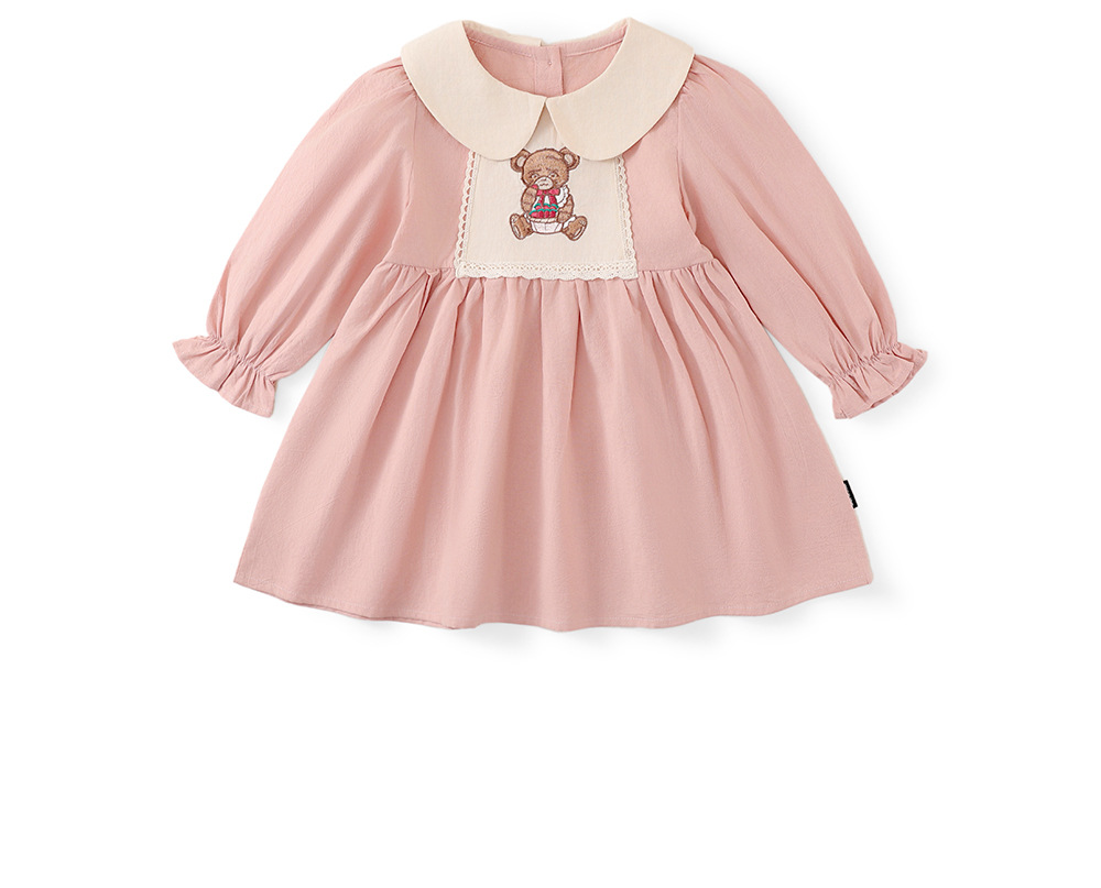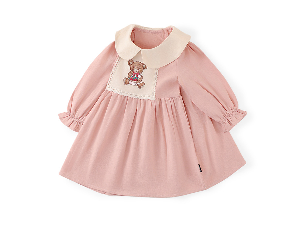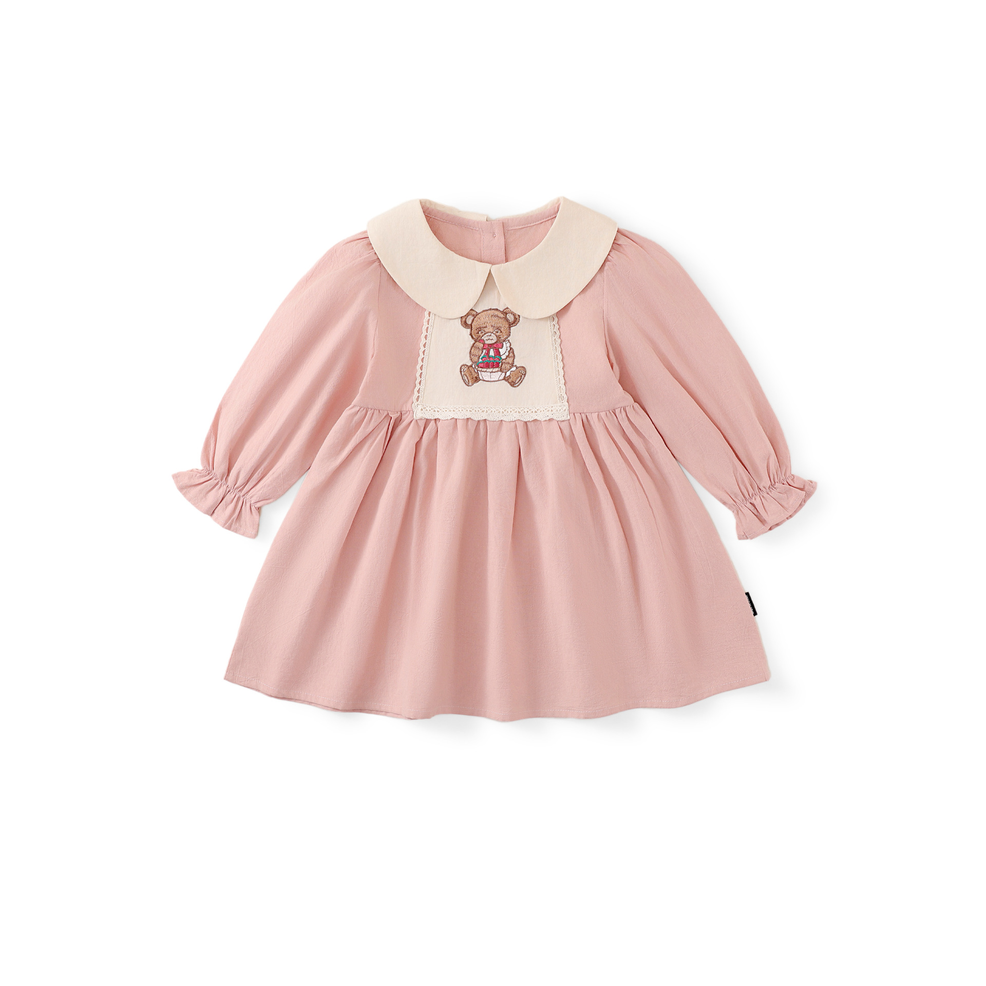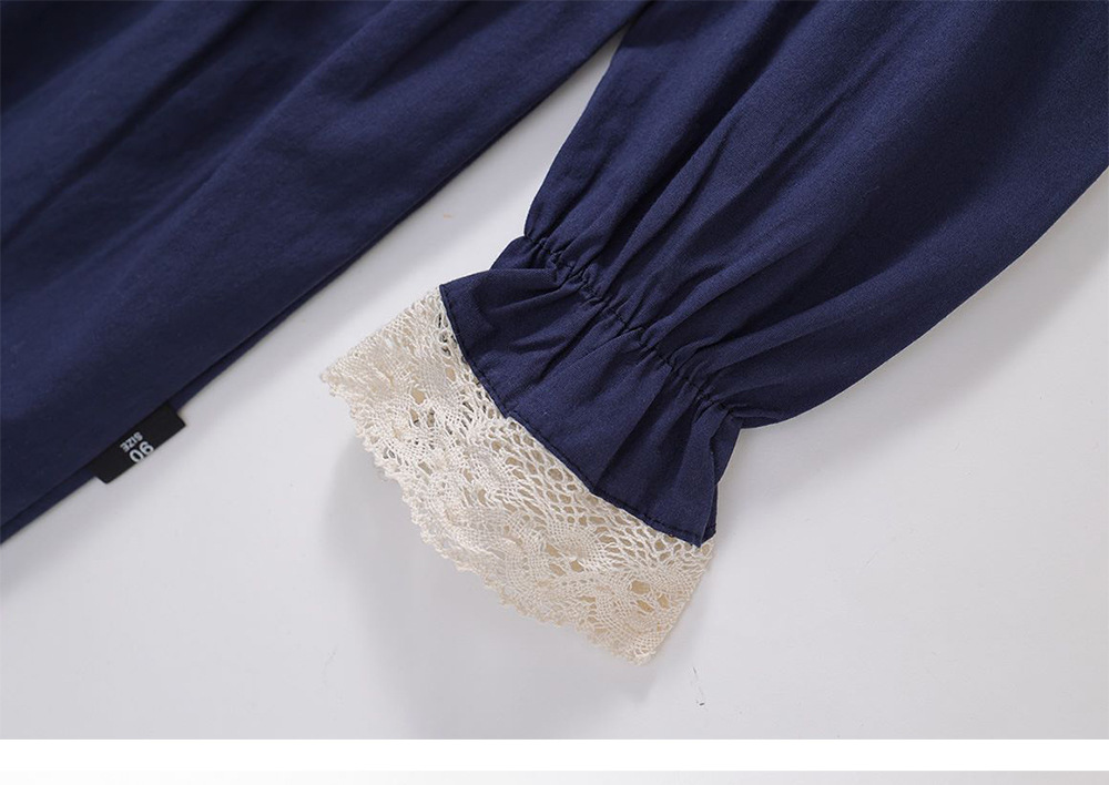 MDD 아기 소녀 프랑스 인형 목걸이 토끼 수 놓은 2024 가을 긴 소매 네이비 대학 스타일 원피스 공주스토어 가기