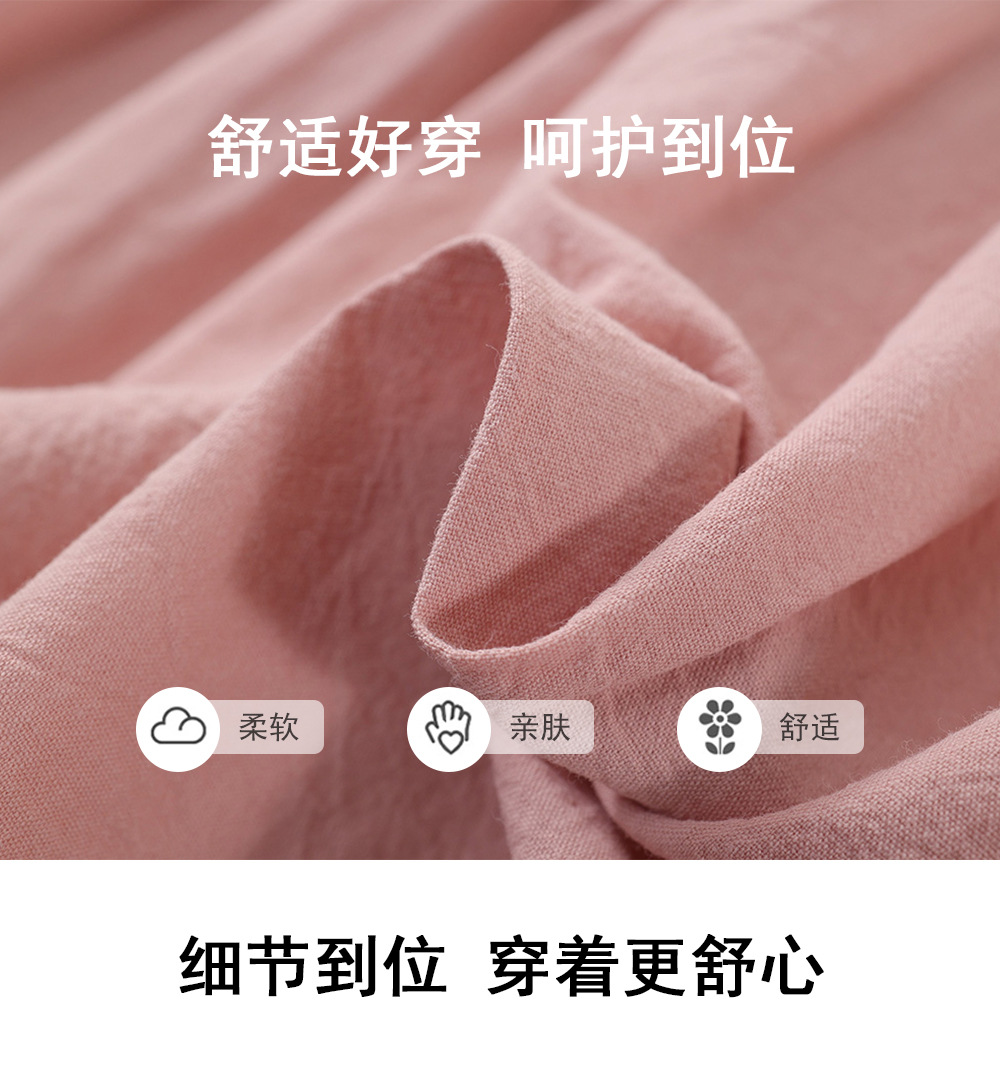 水洗棉面料亲肤舒适,但需注意,深色款在前一两次清洗时会稍有褪色现象。经阳光晾晒、清洗干净后,后续穿着再清洗便不再褪色。介意褪色问题而可能退货退款者,请谨慎下单哦!