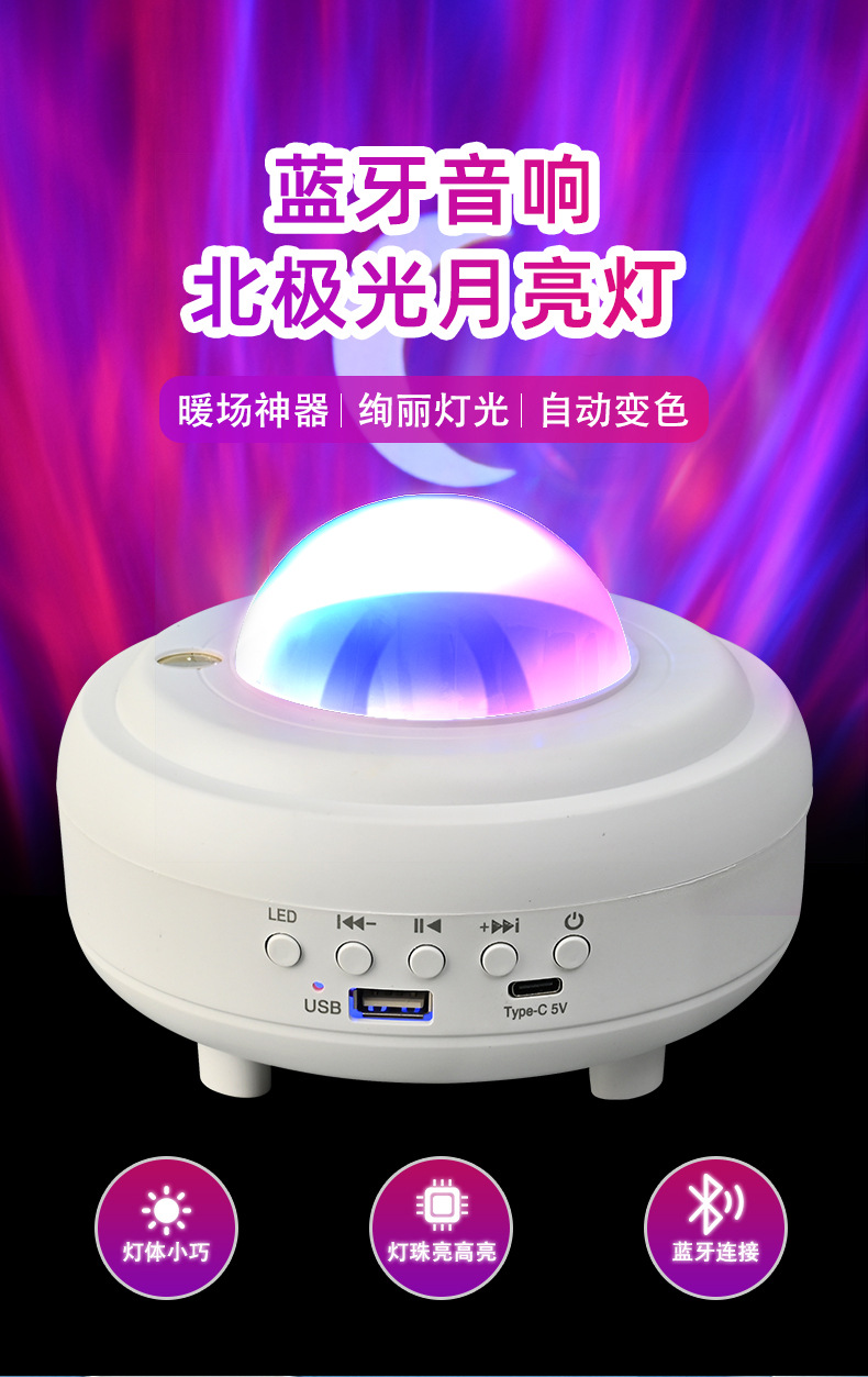 폭발적인 국경 충전 블루투스 스타 문 램프 프로젝션 램프 분위기 램프 서브 우퍼 다채로운 블루투스 야간 조명