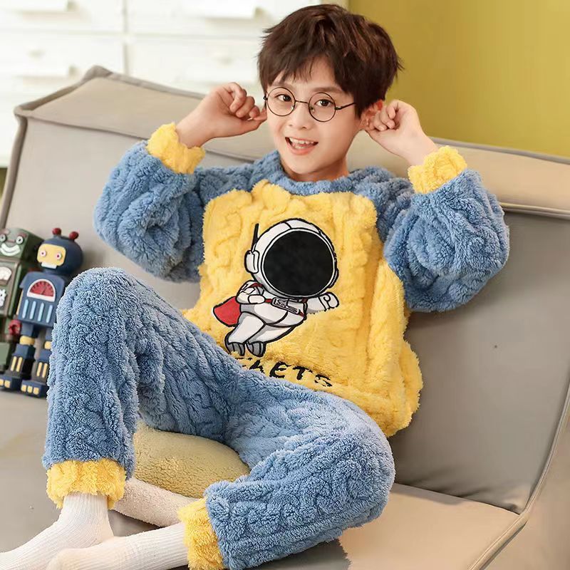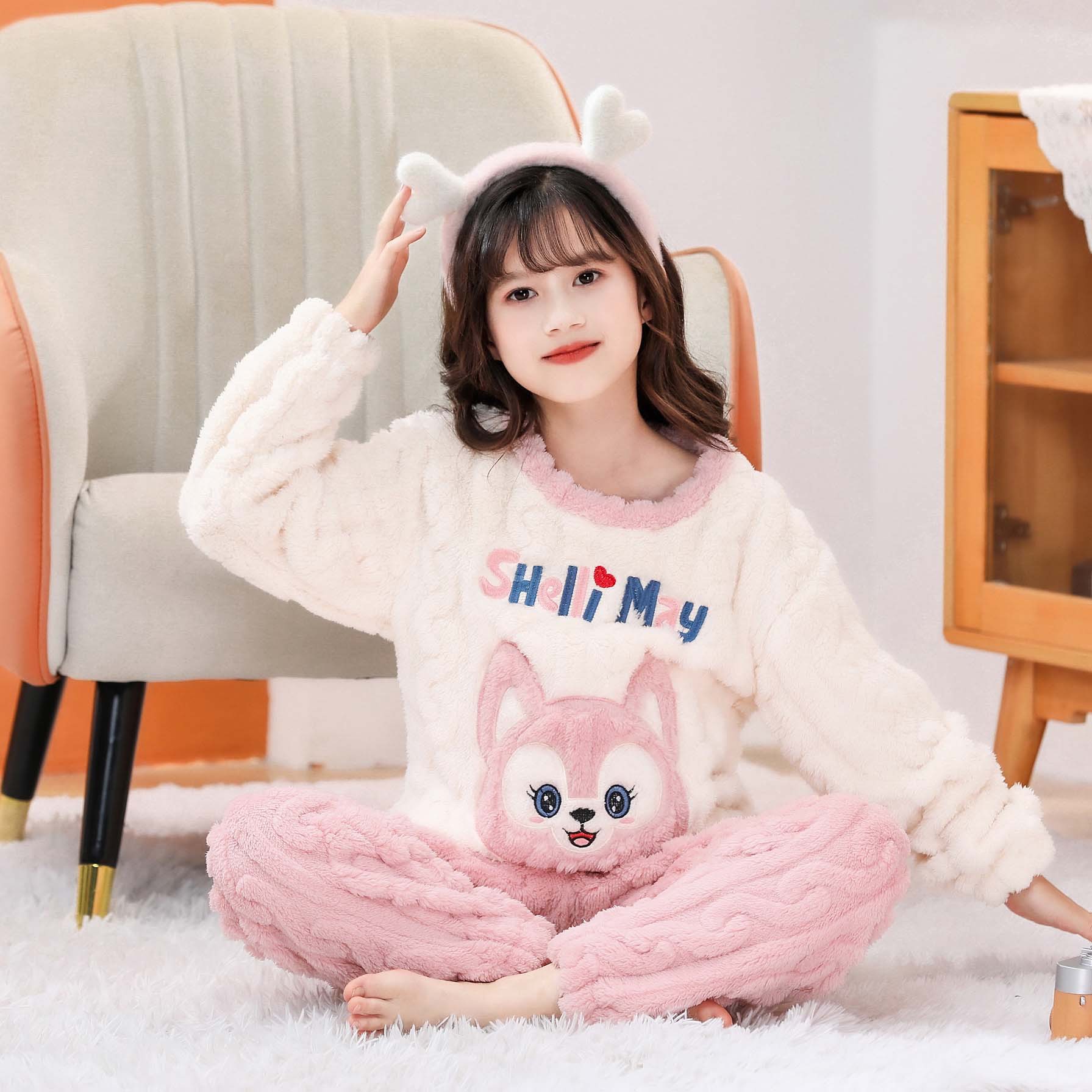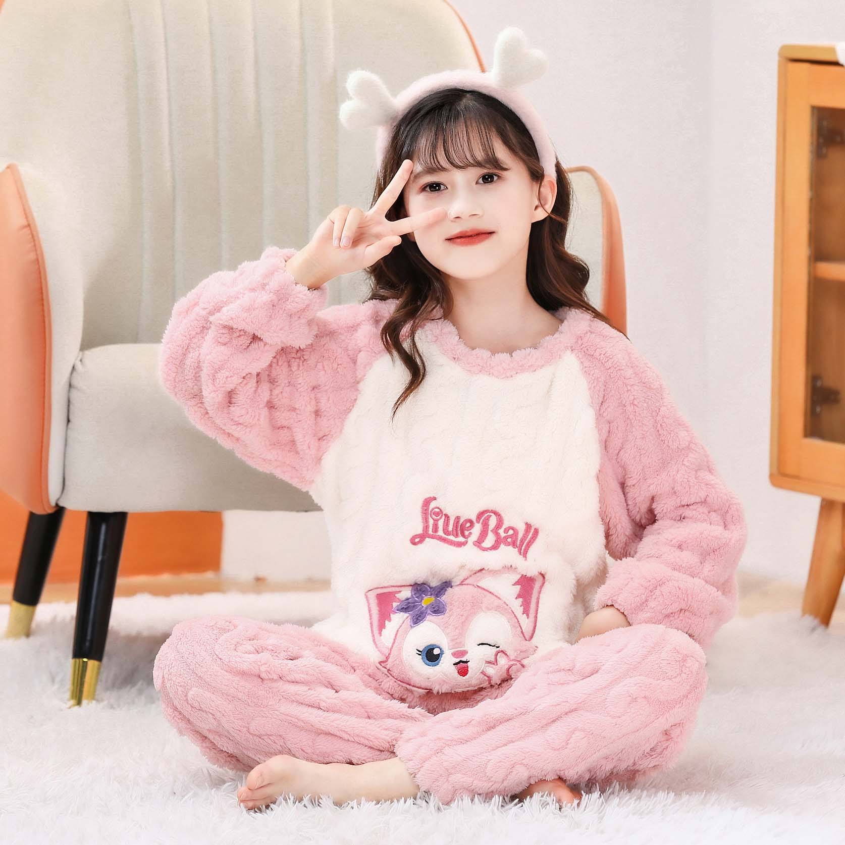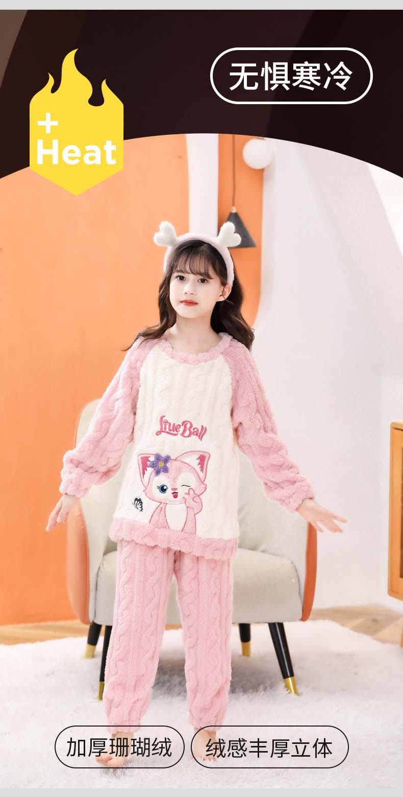 어린이 잠옷 소년 산호 양털 가을과 겨울 자카드 양털 소녀 만화 대형 어린이 플란넬 가정 옷 세트스토어 가기