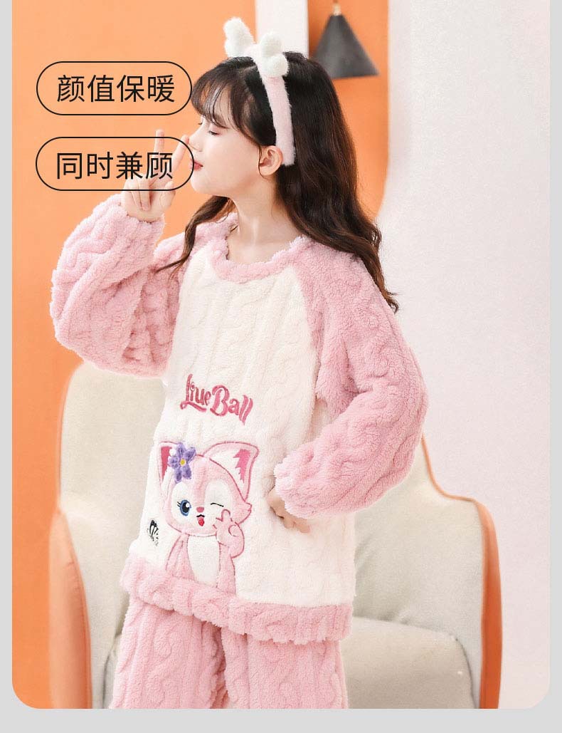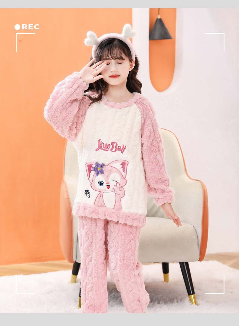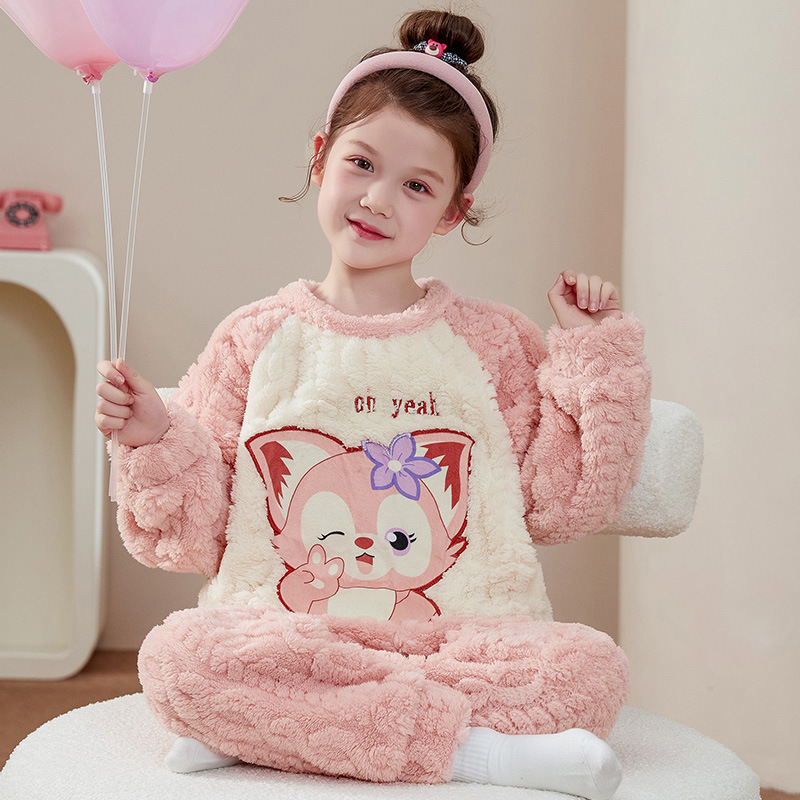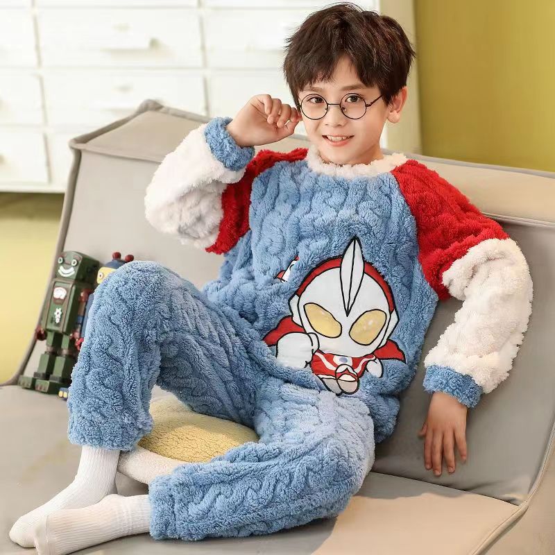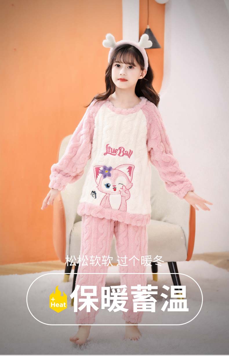 어린이 잠옷 소년 산호 양털 가을과 겨울 자카드 양털 소녀 만화 대형 어린이 플란넬 가정 옷 세트스토어 가기