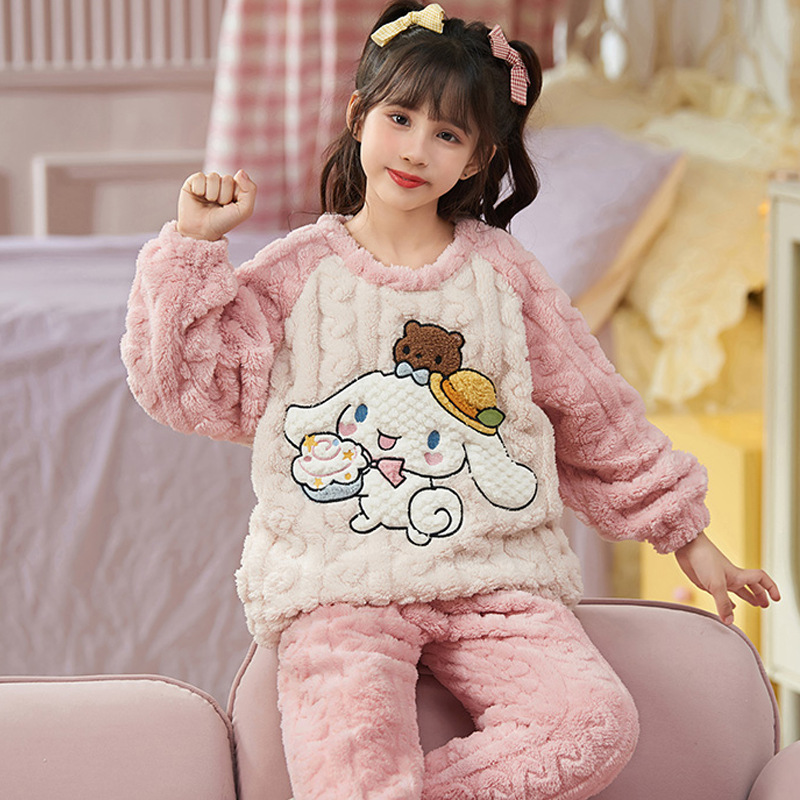어린이 잠옷 소년 산호 양털 가을과 겨울 자카드 양털 소녀 만화 대형 어린이 플란넬 가정 옷 세트