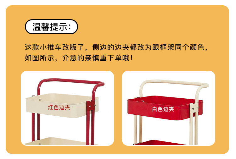 • 3 층 카본 스틸 베이지 바스켓 + 레드 폴 트롤리
