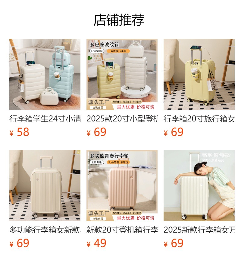 수하물 케이스 학생 24 인치 신선한 캔디 컬러 가방 여성용 컵 홀더와 다기능 트롤리 케이스스토어 가기