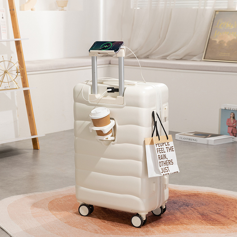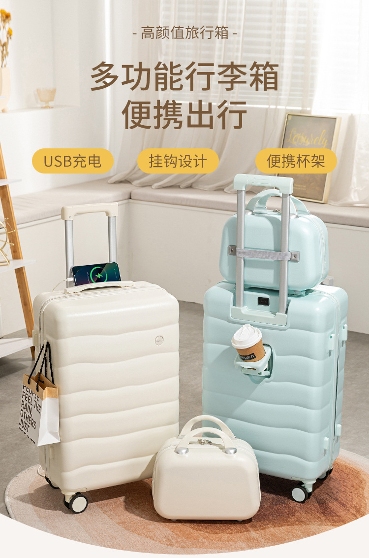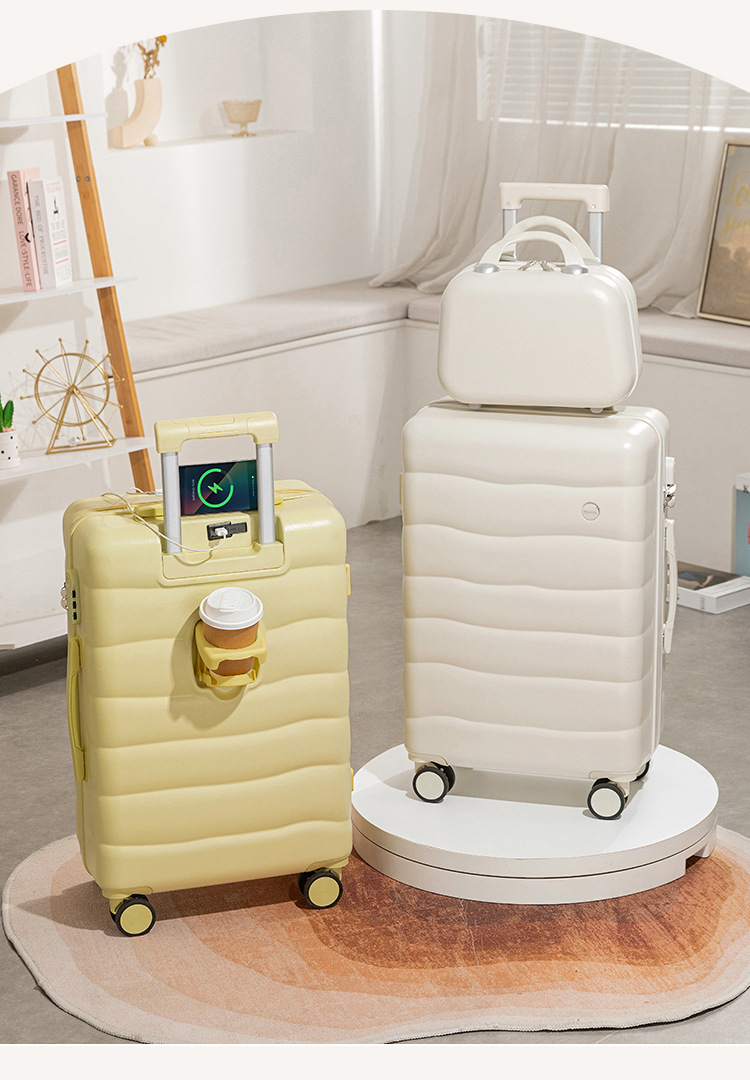 수하물 케이스 학생 24 인치 신선한 캔디 컬러 가방 여성용 컵 홀더와 다기능 트롤리 케이스