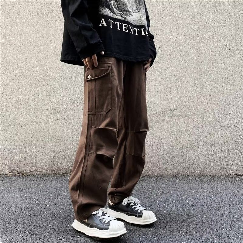 일본 스타일 멀티 포켓 카고 바지 남자의 가을 패션 브랜드 느슨한 스트레이트 캐주얼 바지 힙합 레트로 디자인 센스 바지스토어 가기