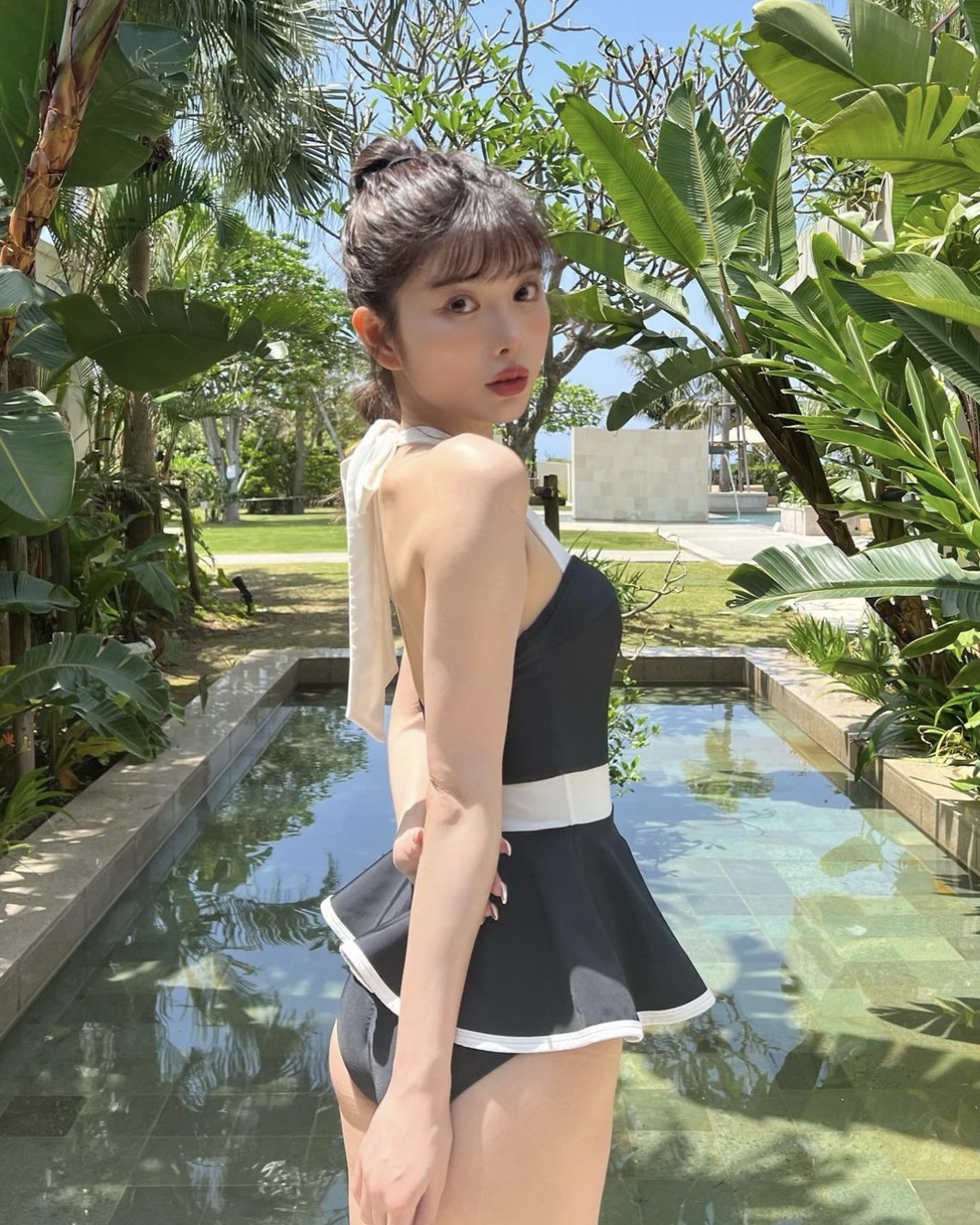 한국 동대문 인스타그램 스타일 섹시 사이즈 가슴 슬림핏 슬림핏 보수 스커트 넥 수영복 여성