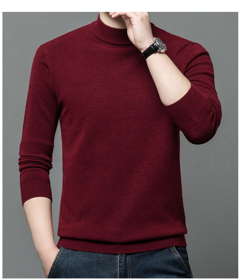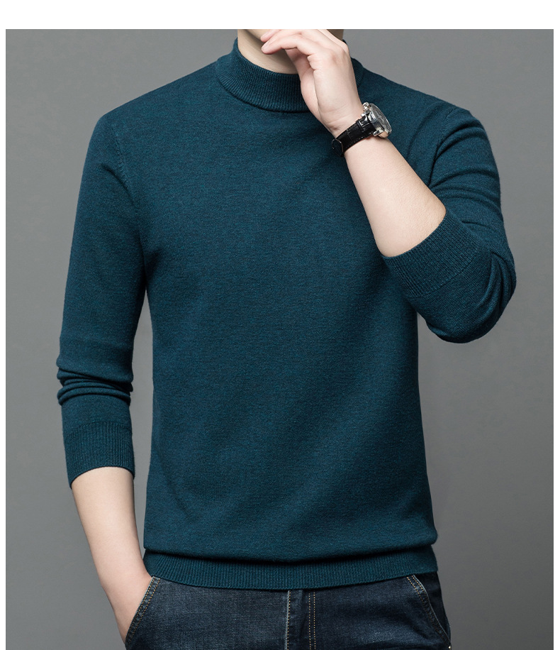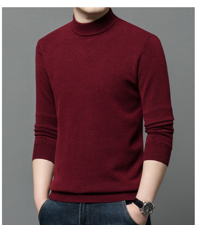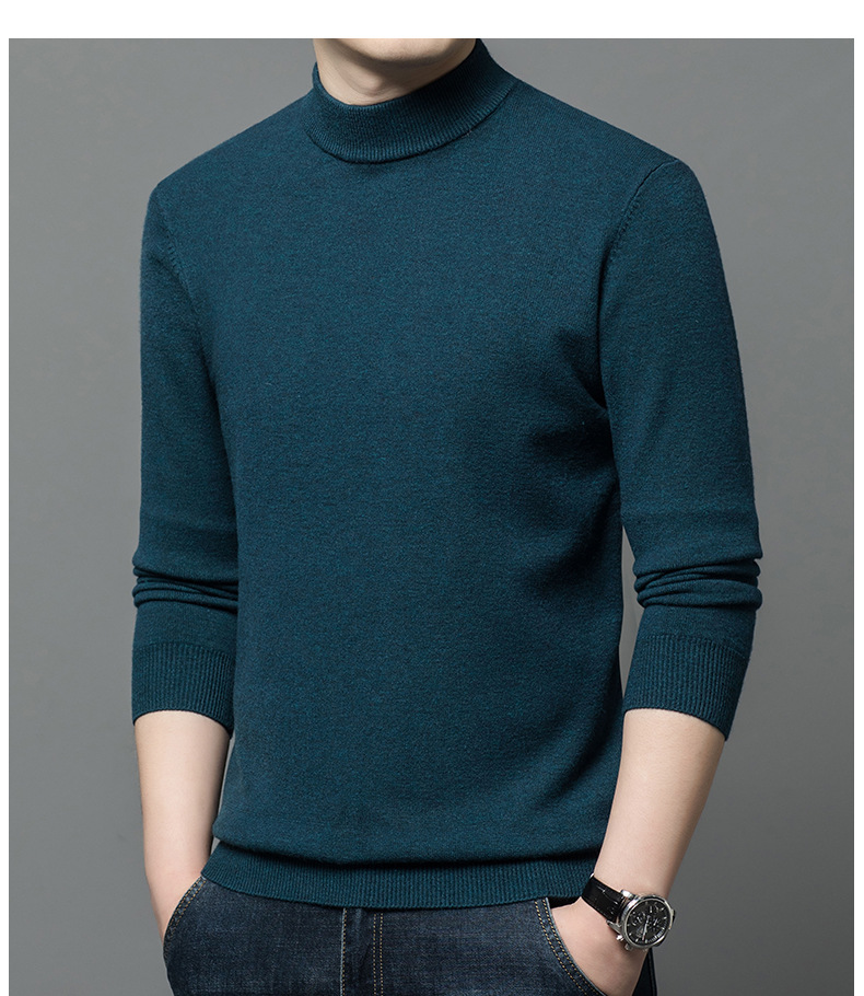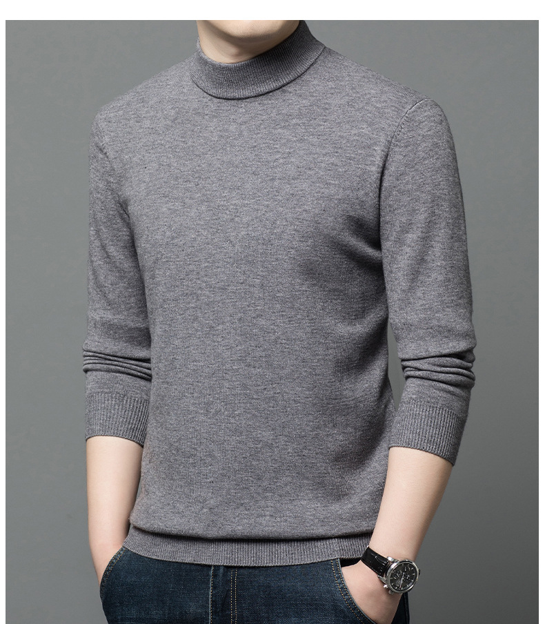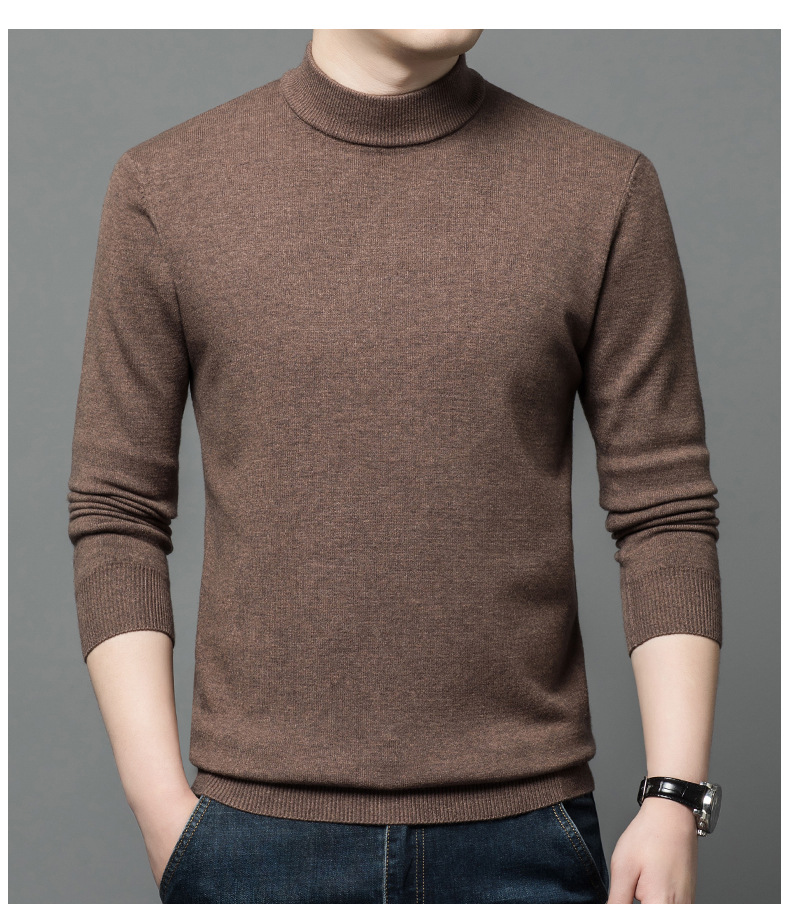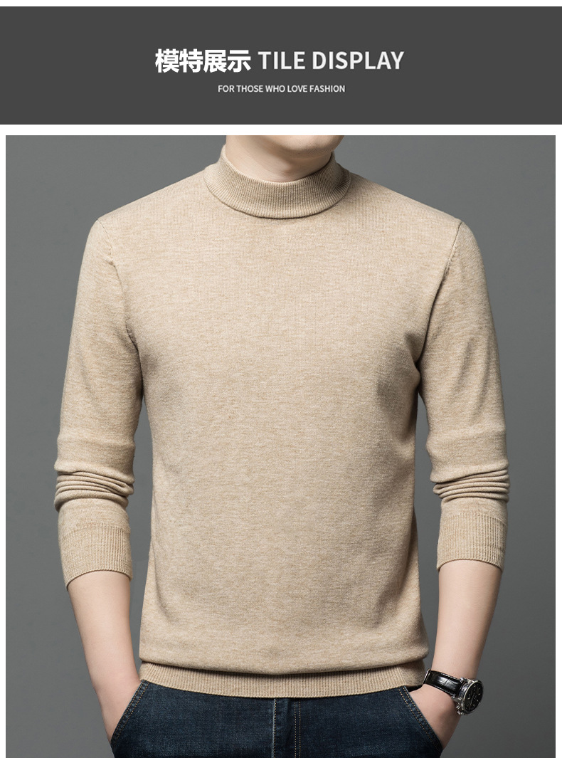 2023년 겨울 신상 남성용 양털 스웨터, 젊은 및 중년층을 위한 하프 터틀넥 솔리드 컬러 두꺼운 따뜻한 니트 스웨터