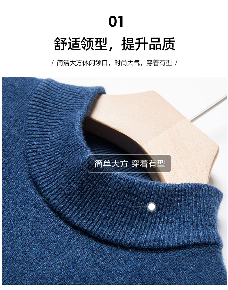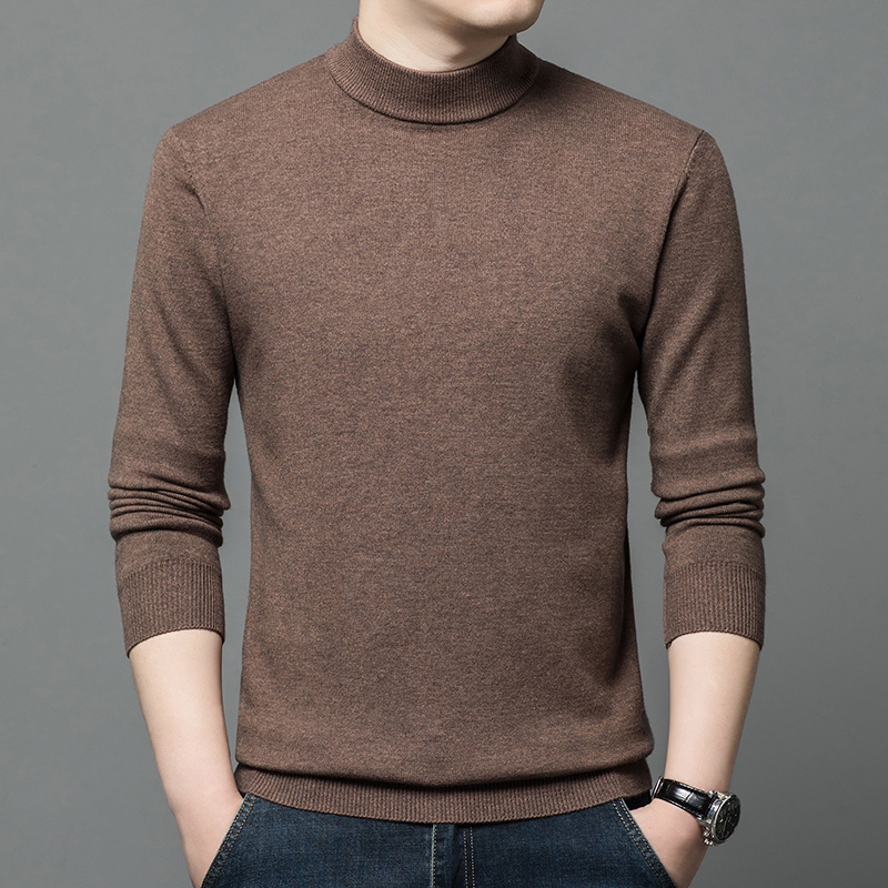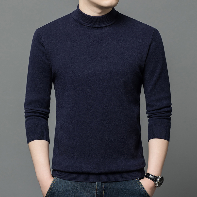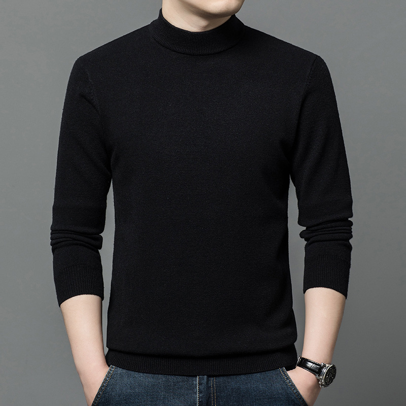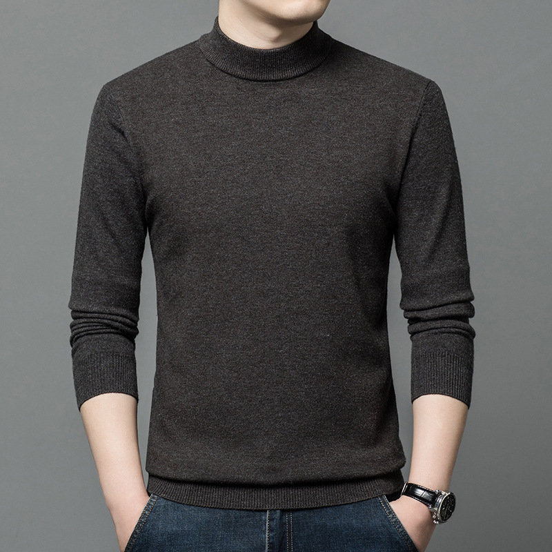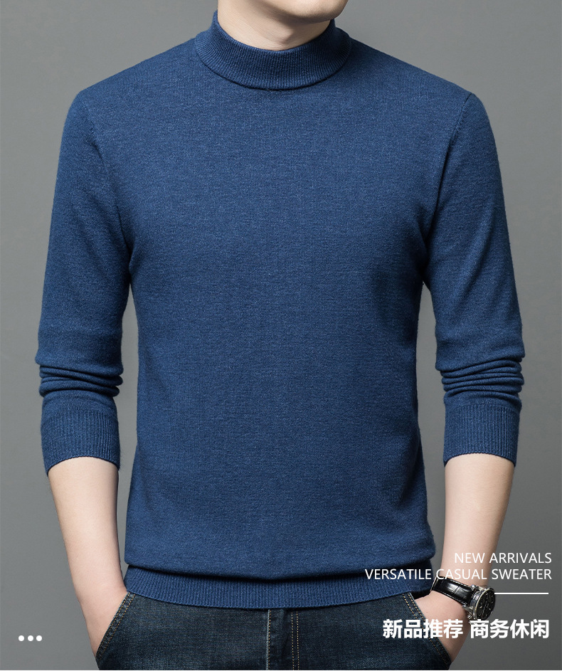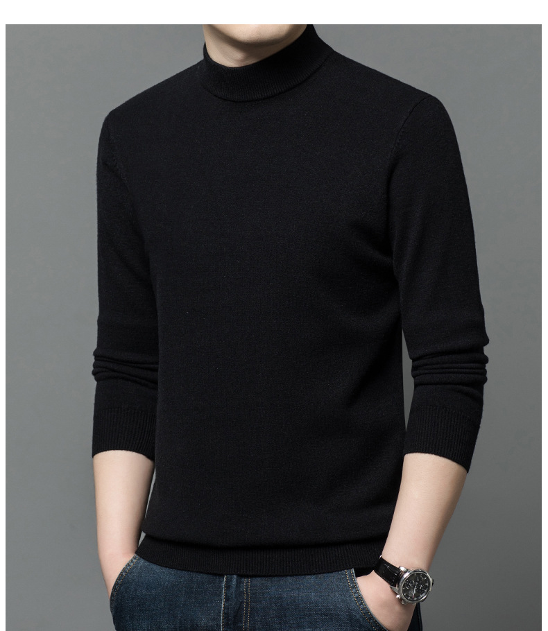 2023년 겨울 신상 남성용 양털 스웨터, 젊은 및 중년층을 위한 하프 터틀넥 솔리드 컬러 두꺼운 따뜻한 니트 스웨터